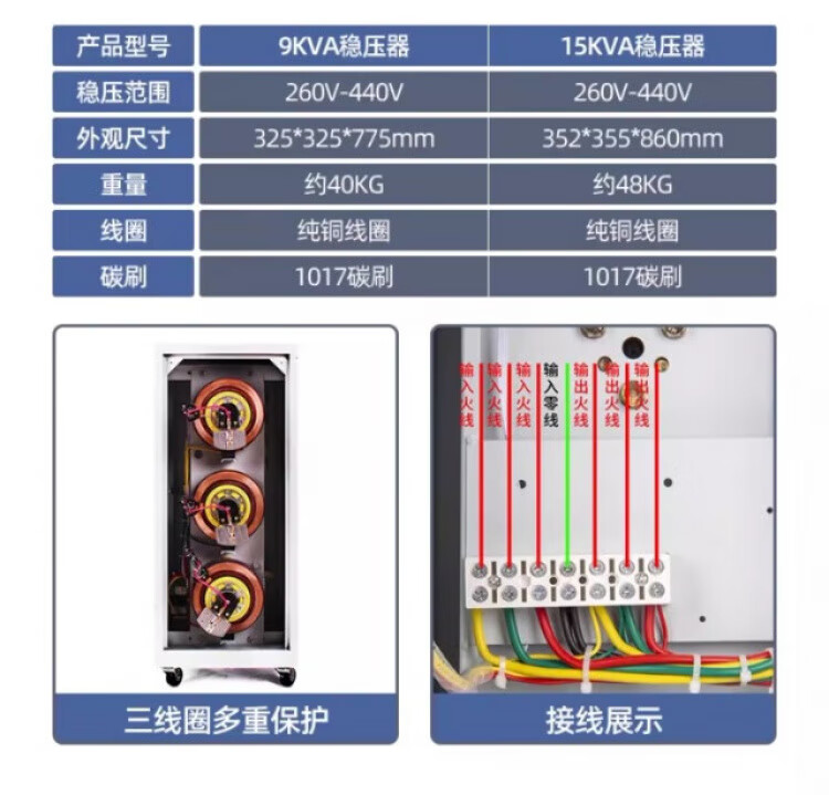 Lishi Shanghai People's fully automatic AC 380v three-phase voltage stabilizer 9 20kW 40 60 80 100kva power supply SJW-9KVA (free ticket)
