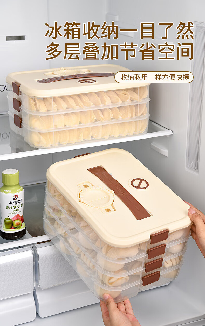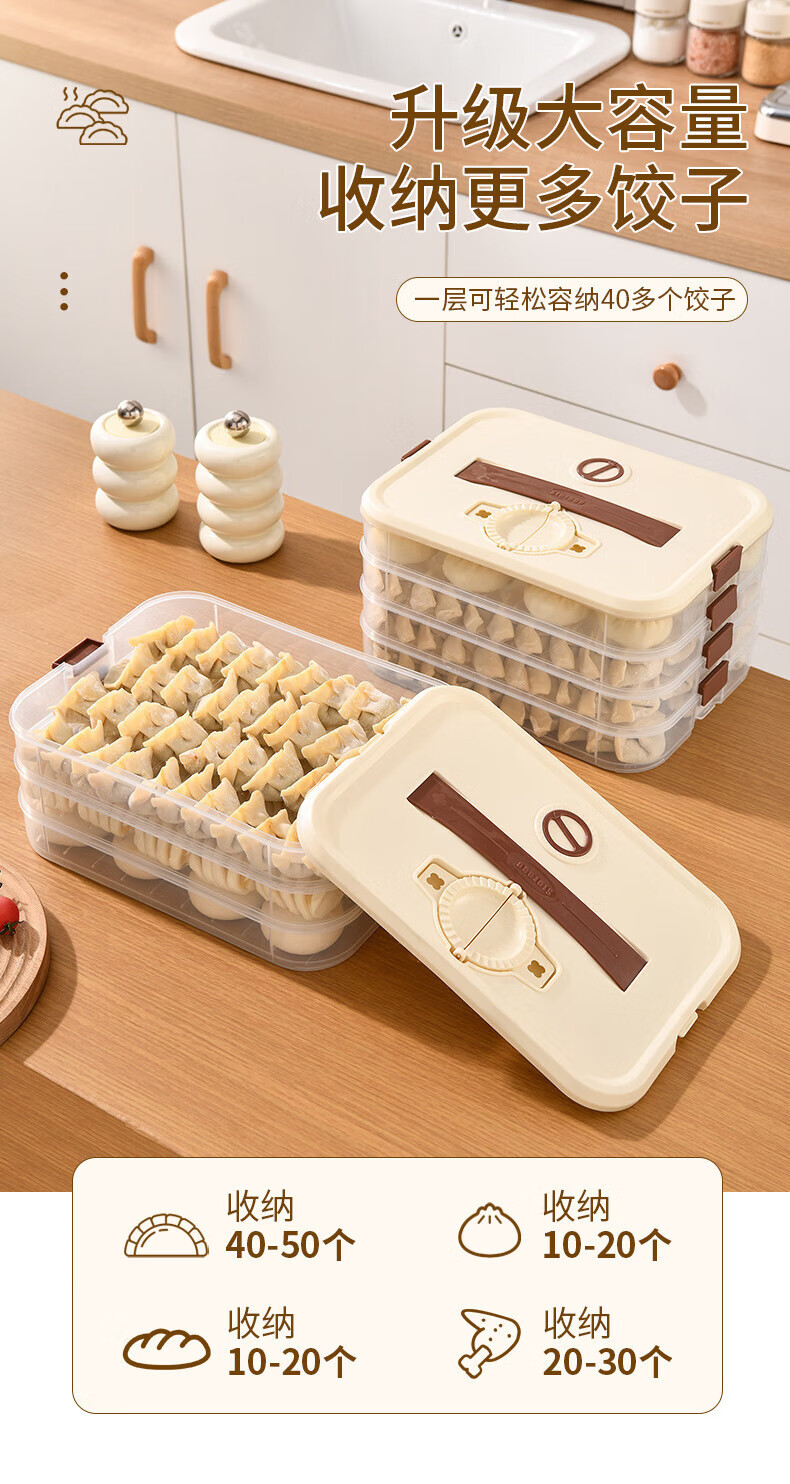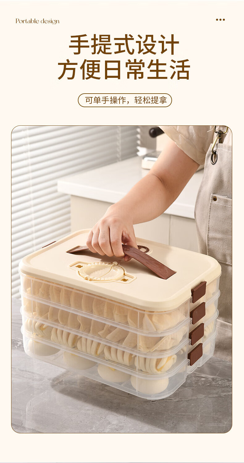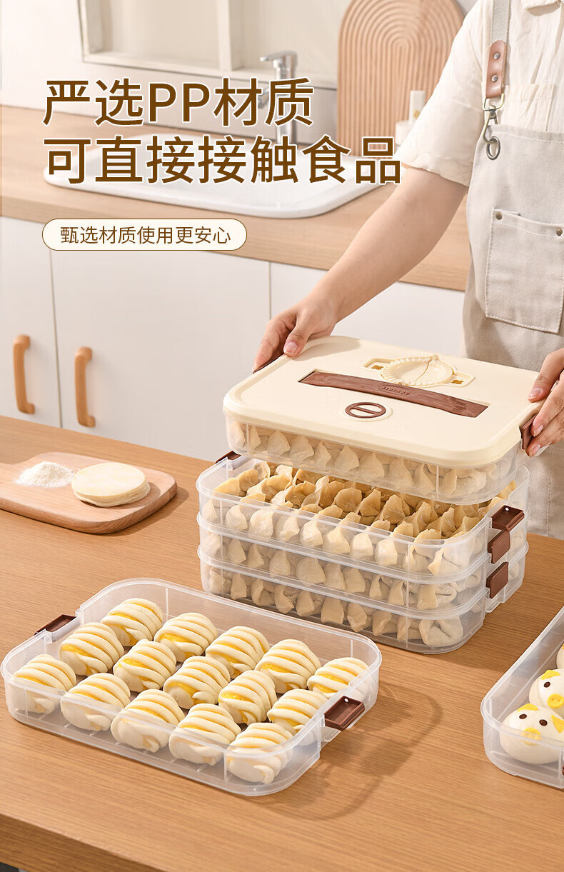 Lan Shengjia dumpling box food-grade stackable anti-stick bottom wonton sealed crisper multi-layer refrigerator dumpling storage box four layers and one cover can be portable