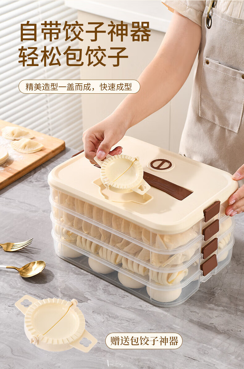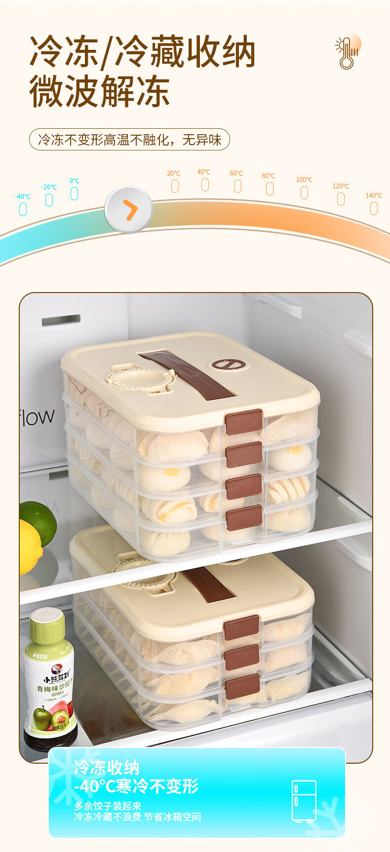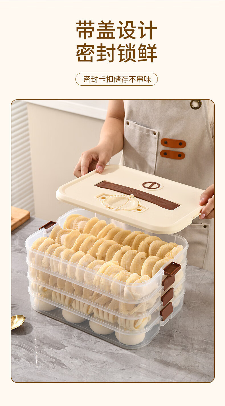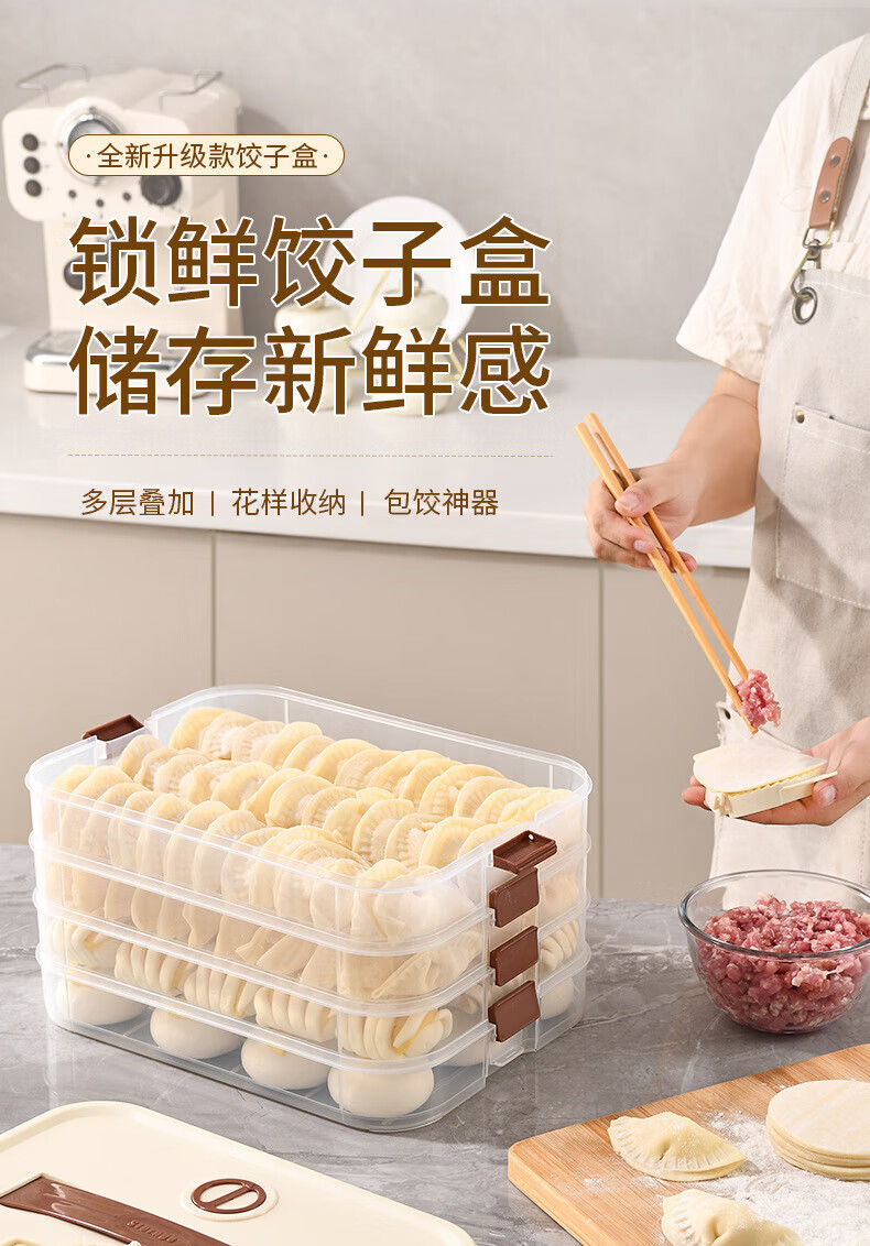 Lan Shengjia dumpling box food-grade stackable anti-stick bottom wonton sealed crisper multi-layer refrigerator dumpling storage box four layers and one cover can be portable
