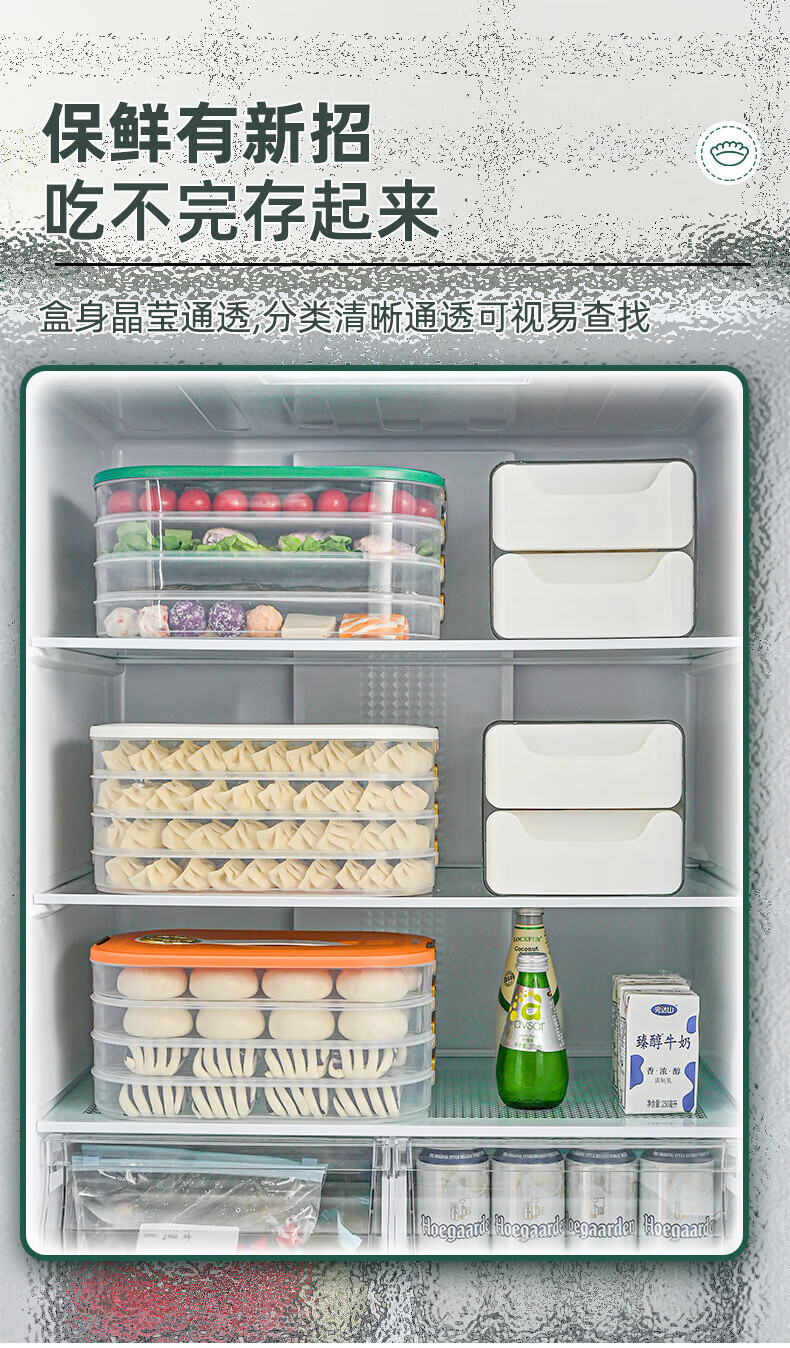 Chinuo household large-capacity rectangular portable crisper refrigerator special adult dumplings multi-layer classification rectangular one layer one cover green