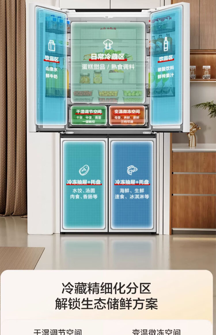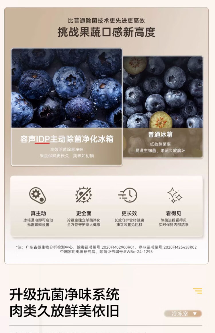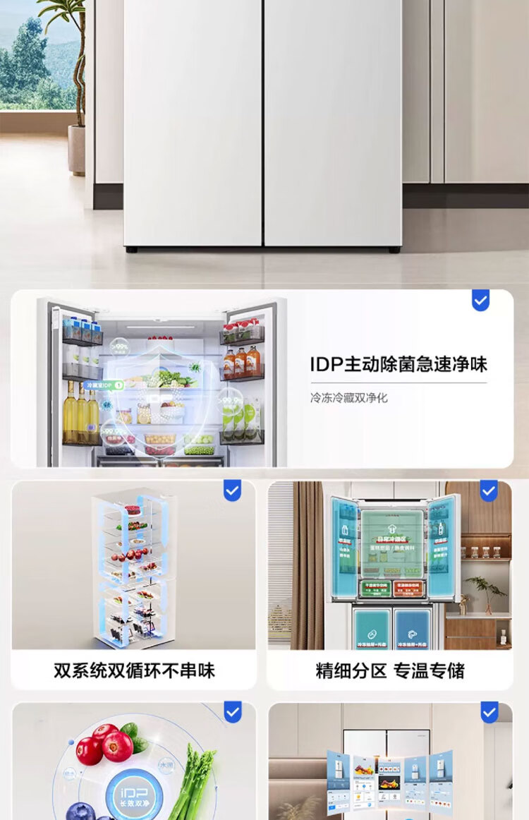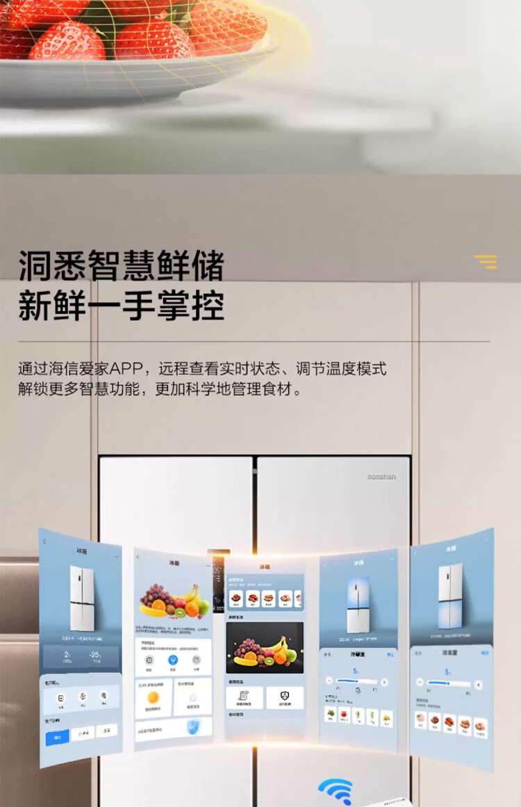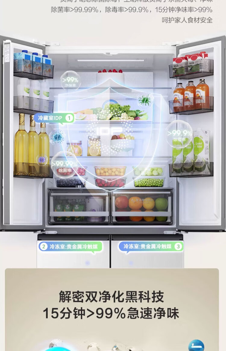 Rongsheng BCD-501WD8FPZ double clean cross-door four-door embedded first-class energy-efficiency frequency conversion ultra-thin active sterilization dual-cycle dual-system smart refrigerator (three-pack machine) official same model - tail cargo machine