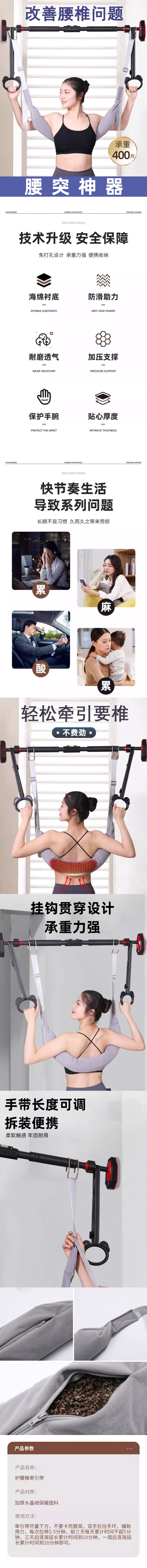 Mihui lumbar traction belt spine stretching waist suspension soothing hanging horizontal bar traction device lumbar disc traction belt U ring hook traction belt + suitable for 120--160CM