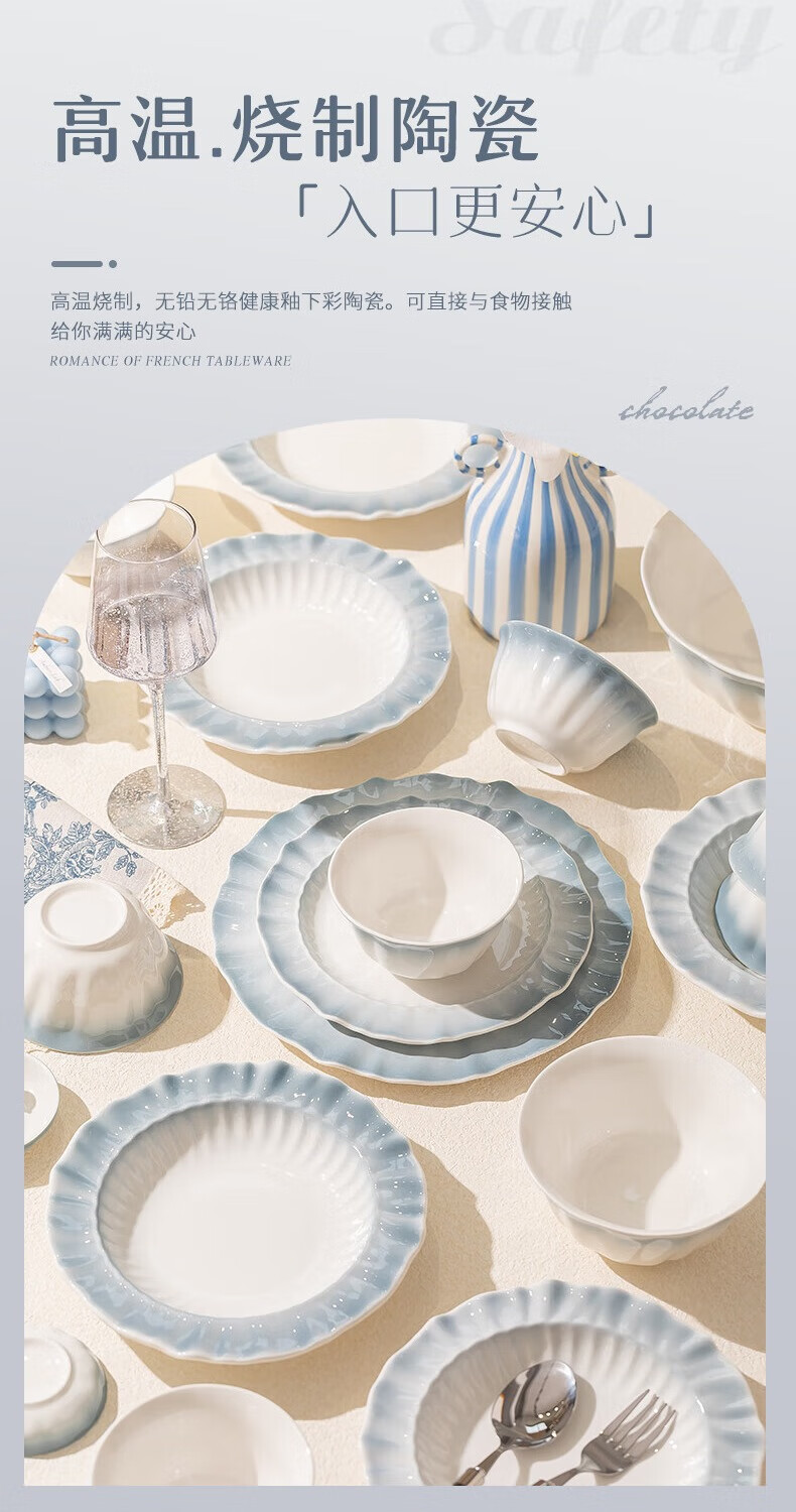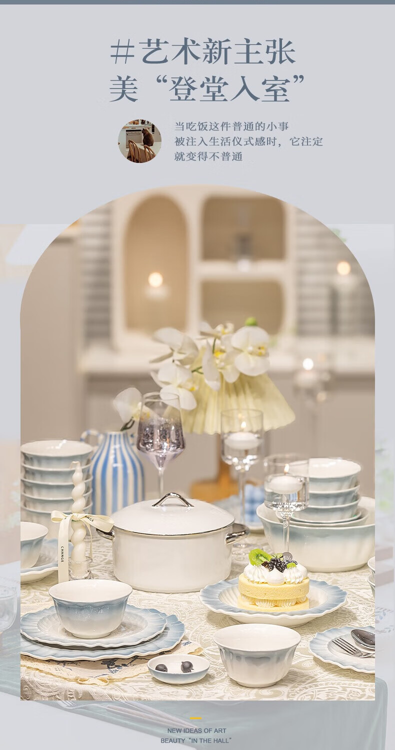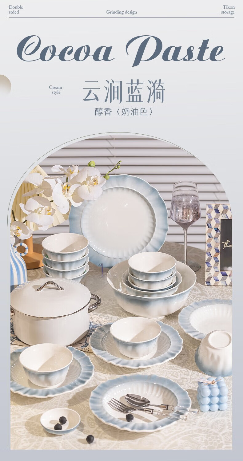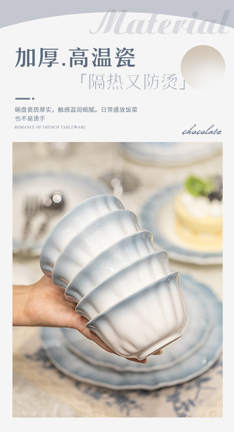 Qishu Bowl Set 2025 New Household Tableware High-Looking Housewarming Gift Ceramic Bowl Plate Tableware Set 4 People Food and Soup Bowl Gift Box 18-piece Set