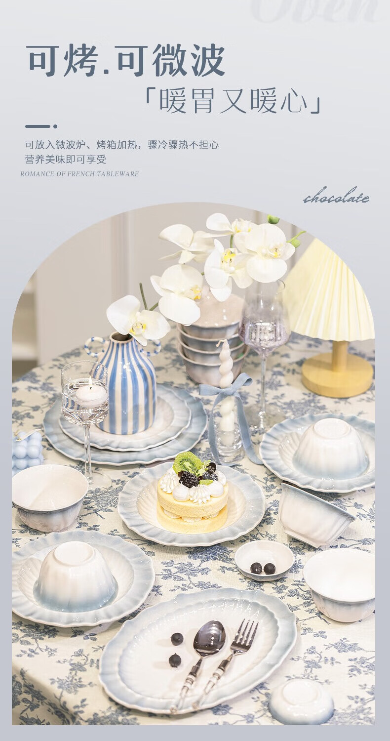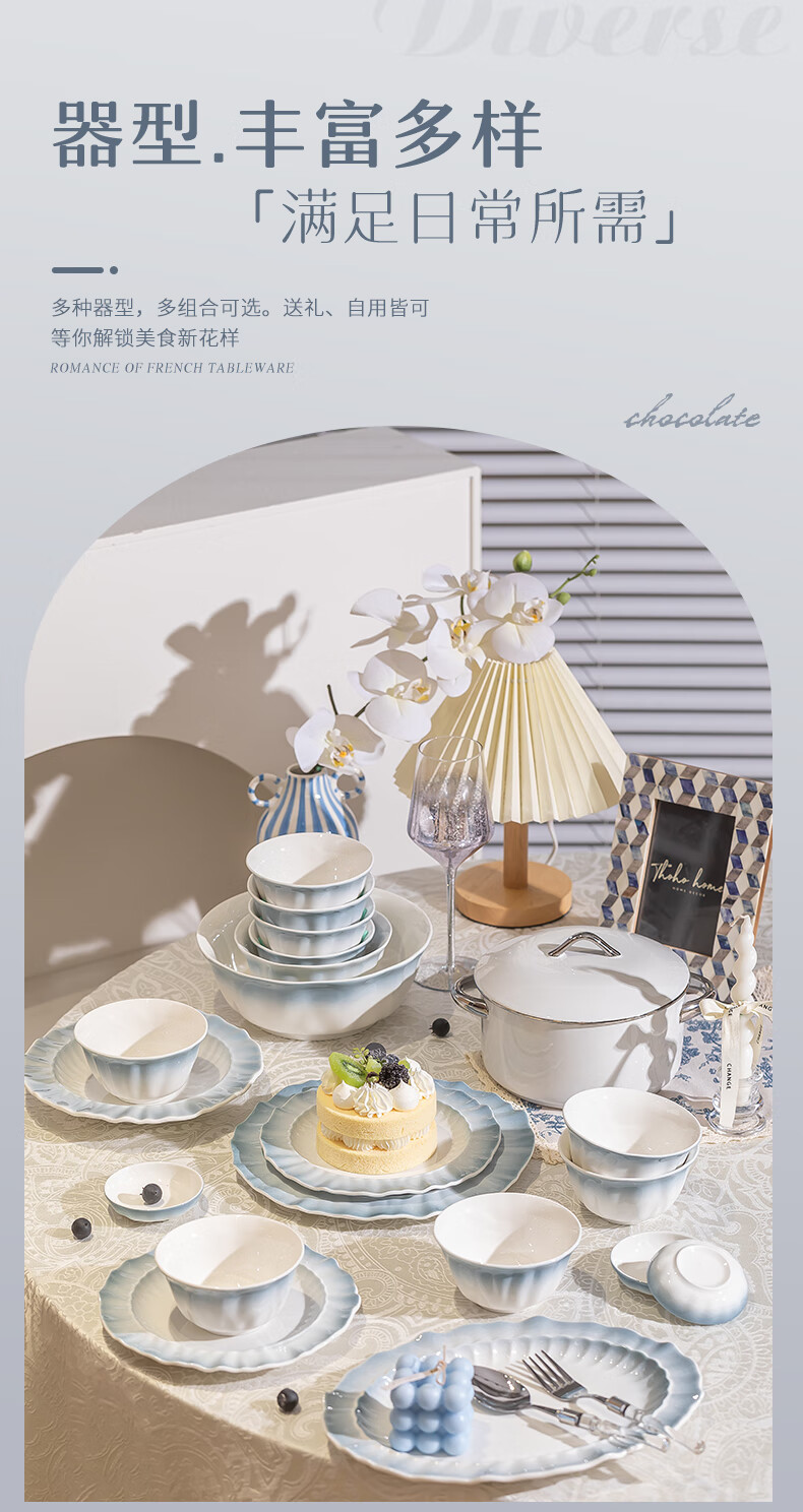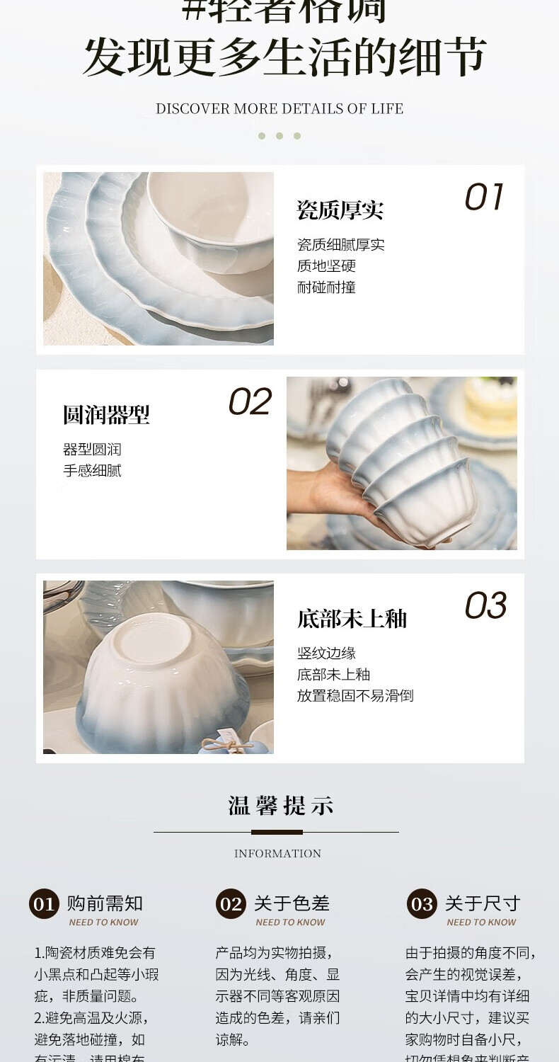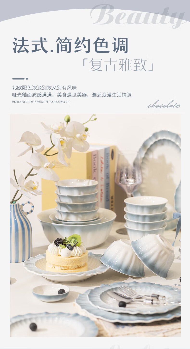 Qishu Bowl Set 2025 New Household Tableware High-Looking Housewarming Gift Ceramic Bowl Plate Tableware Set 4 People Food and Soup Bowl Gift Box 18-piece Set