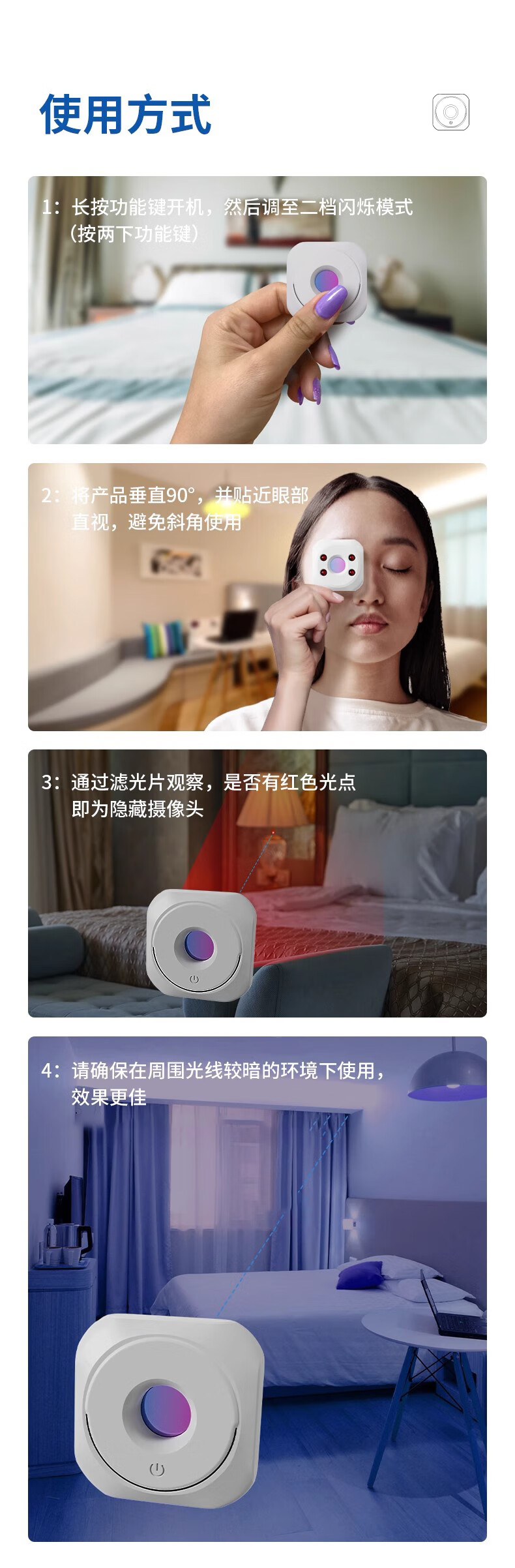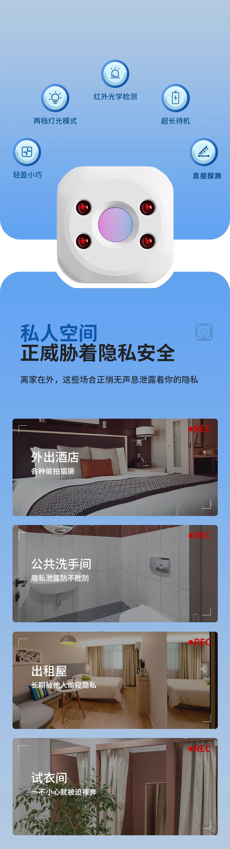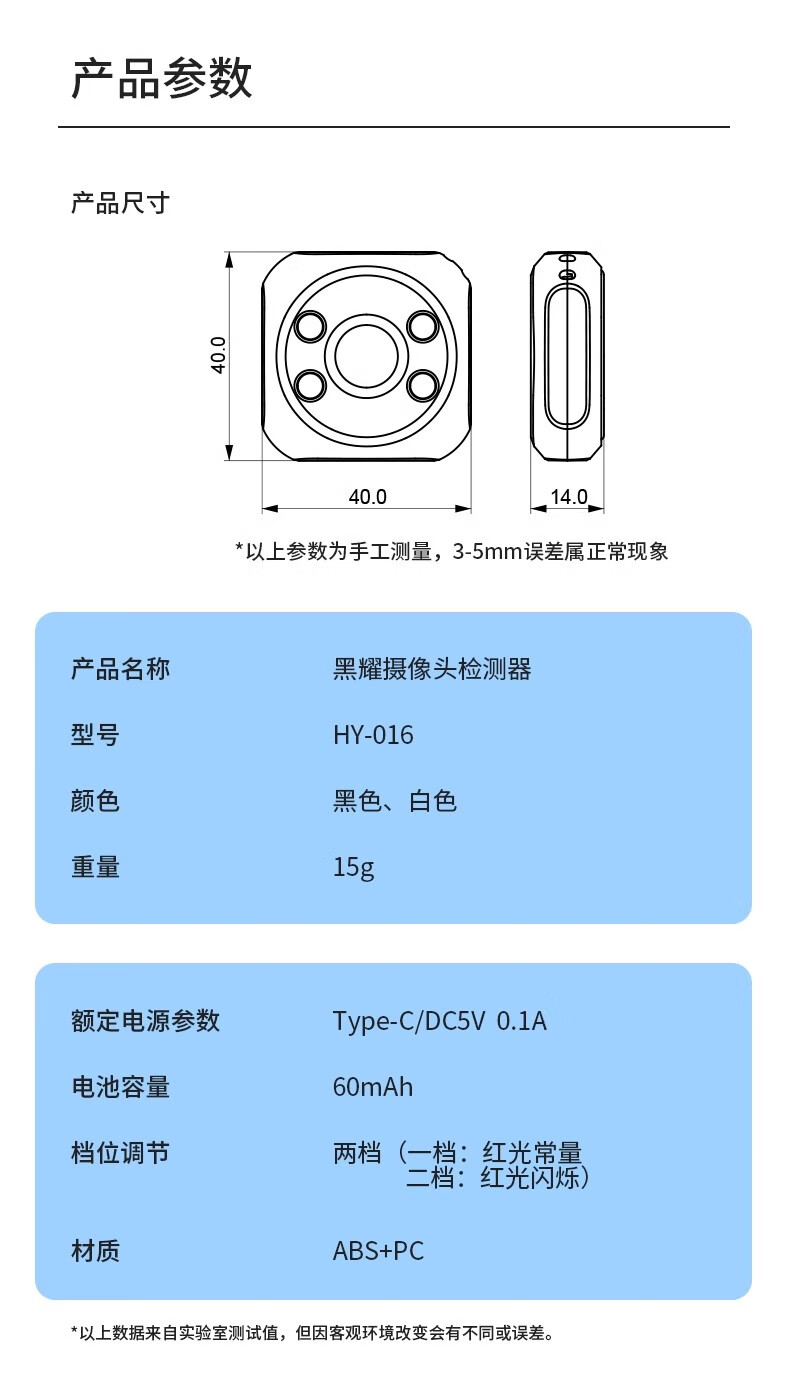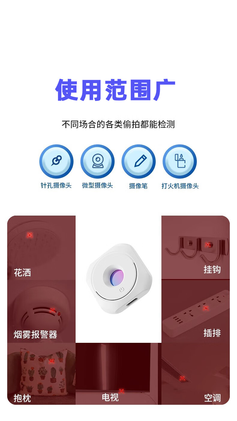 Jans camera smart detector infrared detector hotel anti-peep artifact anti-candid camera monitoring detector induction top with white detector + hanging ring + charging cable