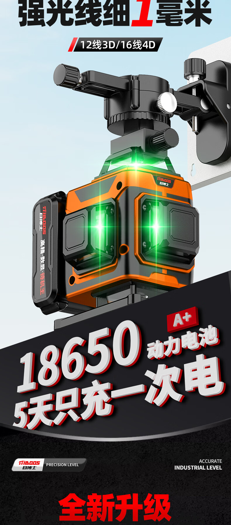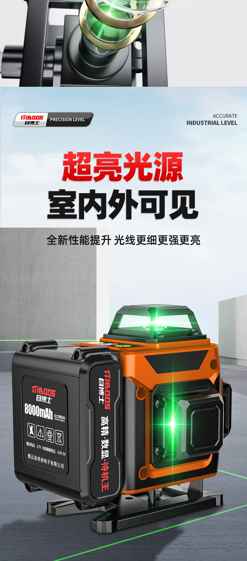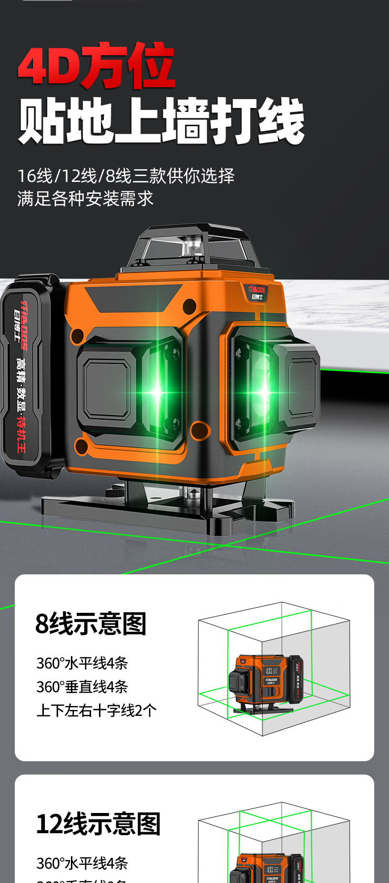 Dr. Mu's new product, laser level, high-precision strong light, thin line room, outdoor special 12-line green light automatic leveling water, ultra-bright green light 8 lines + dual electricity + wall rack