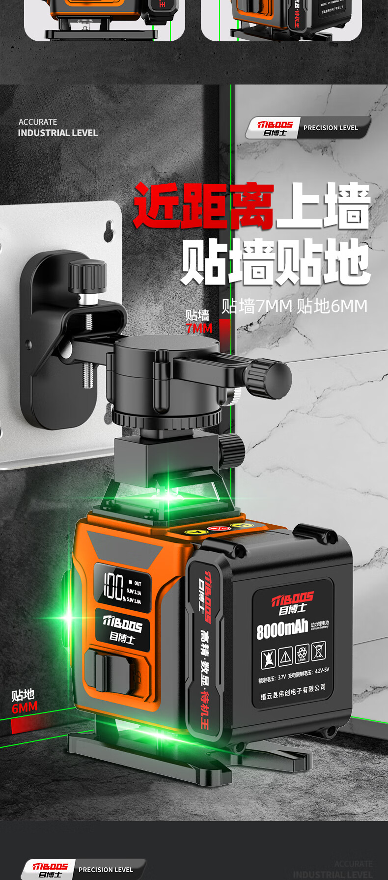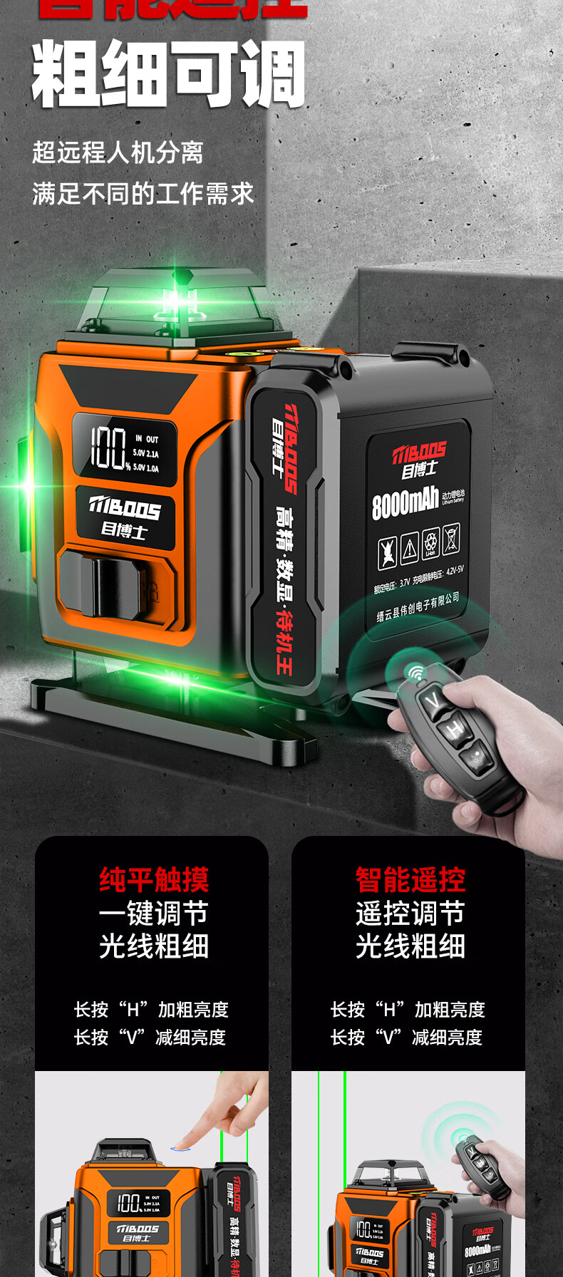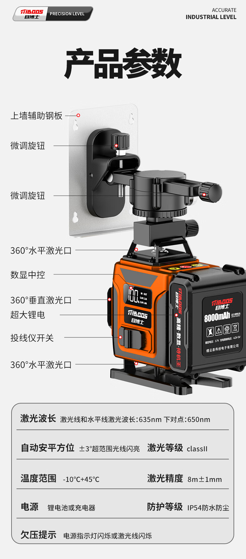 Dr. Mu's new product, laser level, high-precision strong light, thin line room, outdoor special 12-line green light automatic leveling water, ultra-bright green light 8 lines + dual electricity + wall rack