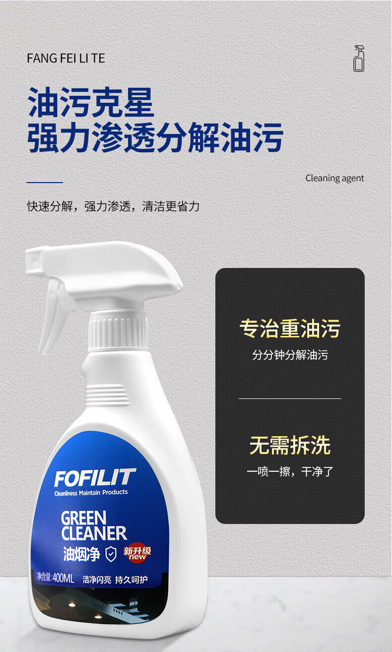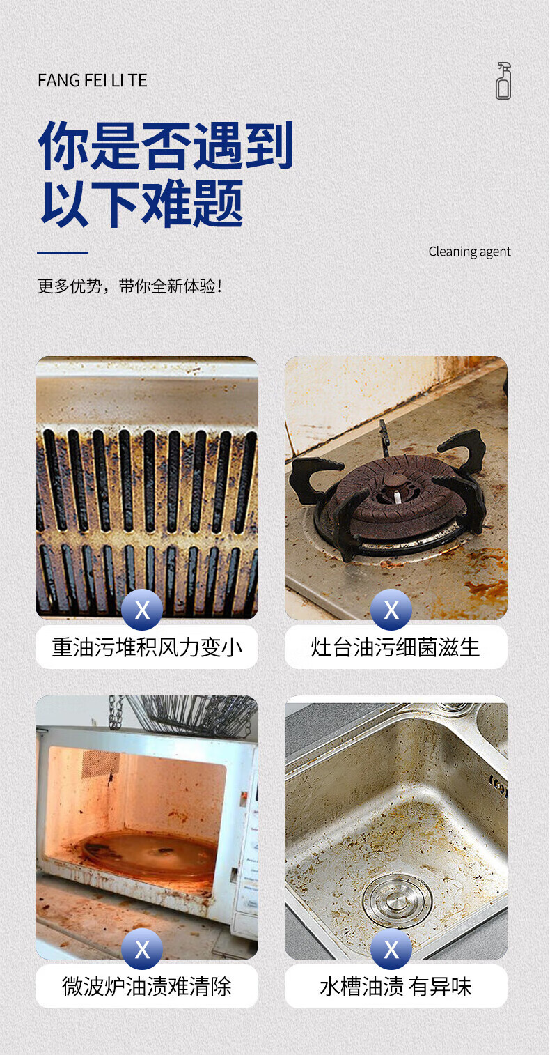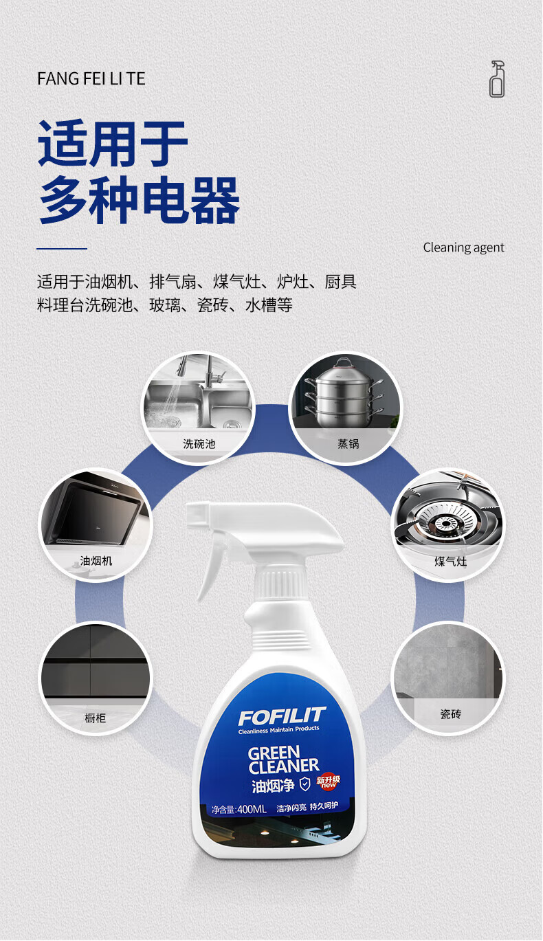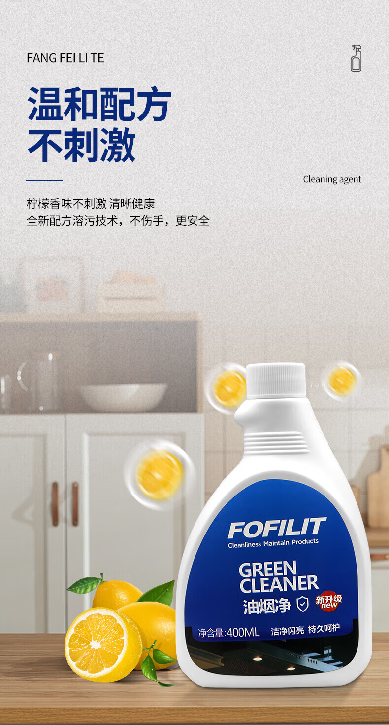 Fangfeilite Oil Fume Cleaner Kitchen range hood powerful cleaner to remove heavy oil stains, remove scale and oil stains 400ml/bottle