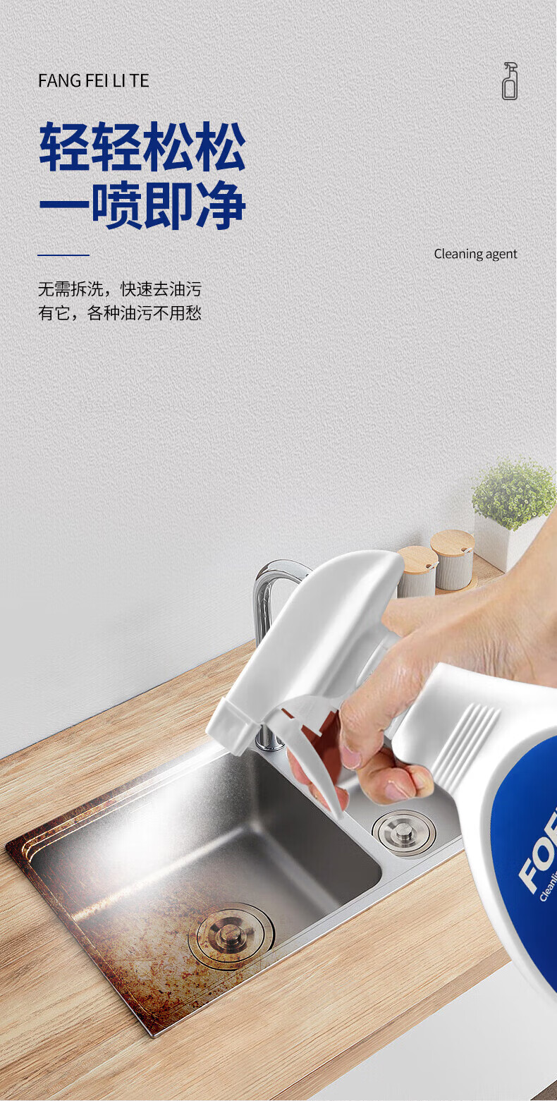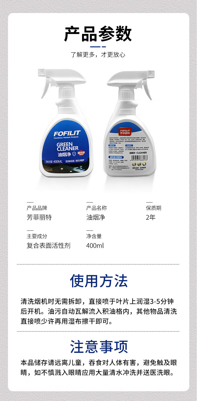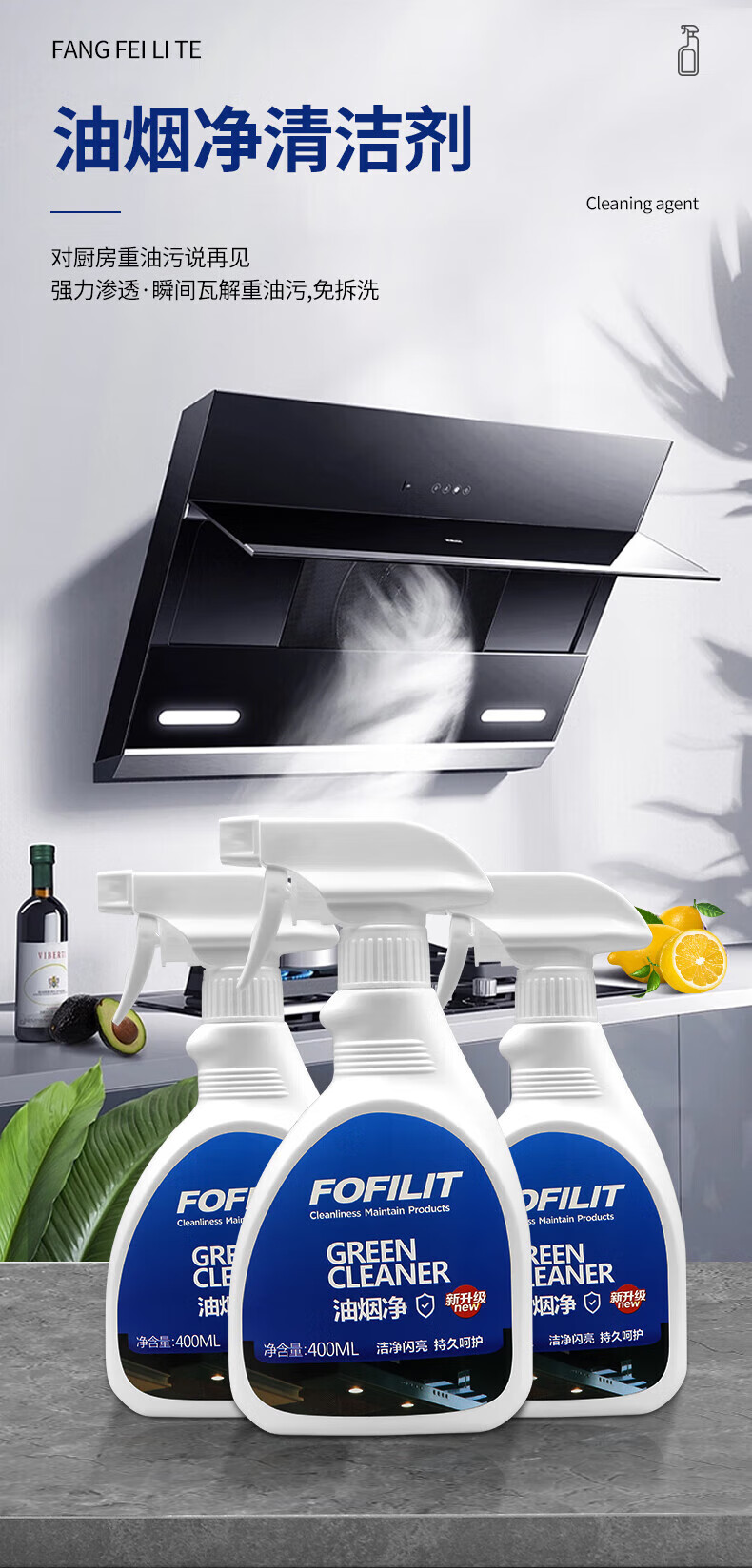 Fangfeilite Oil Fume Cleaner Kitchen range hood powerful cleaner to remove heavy oil stains, remove scale and oil stains 400ml/bottle