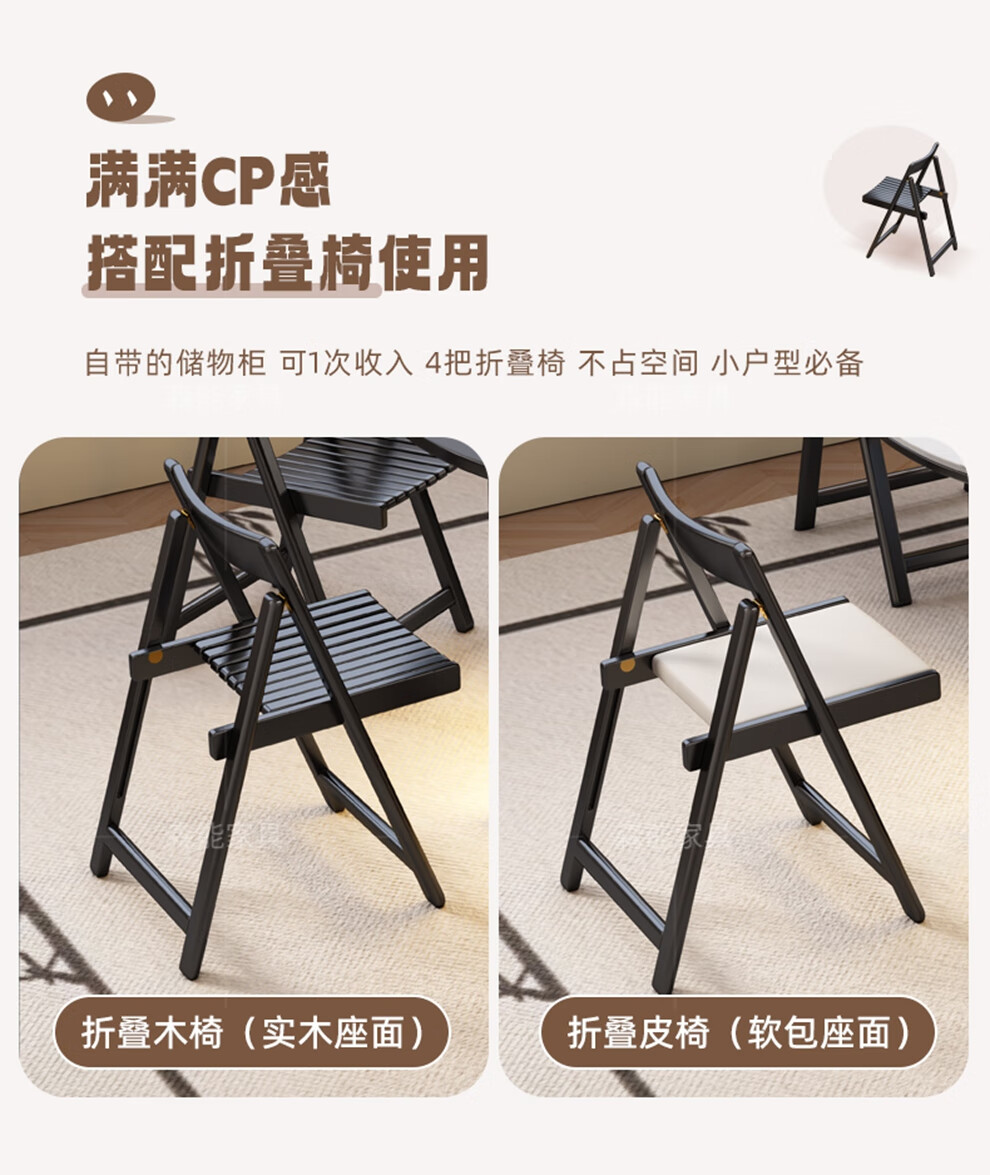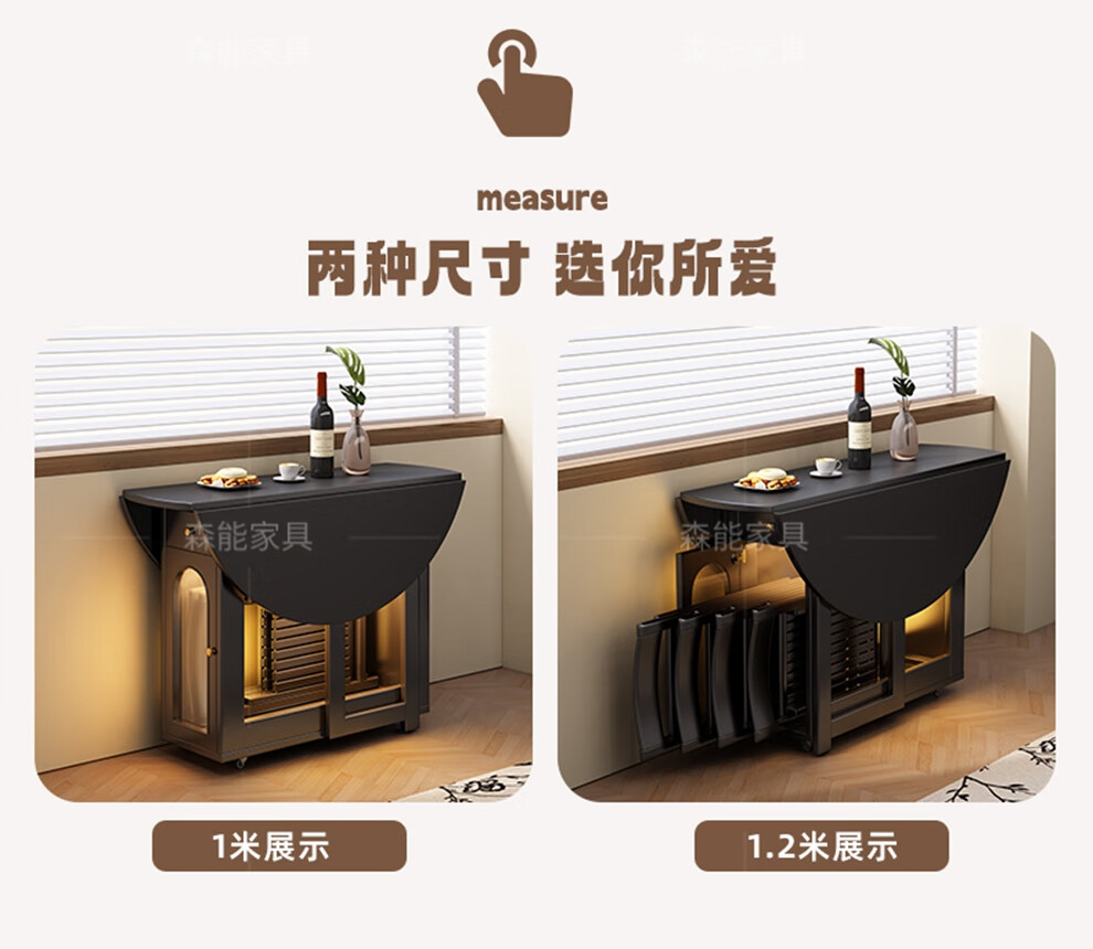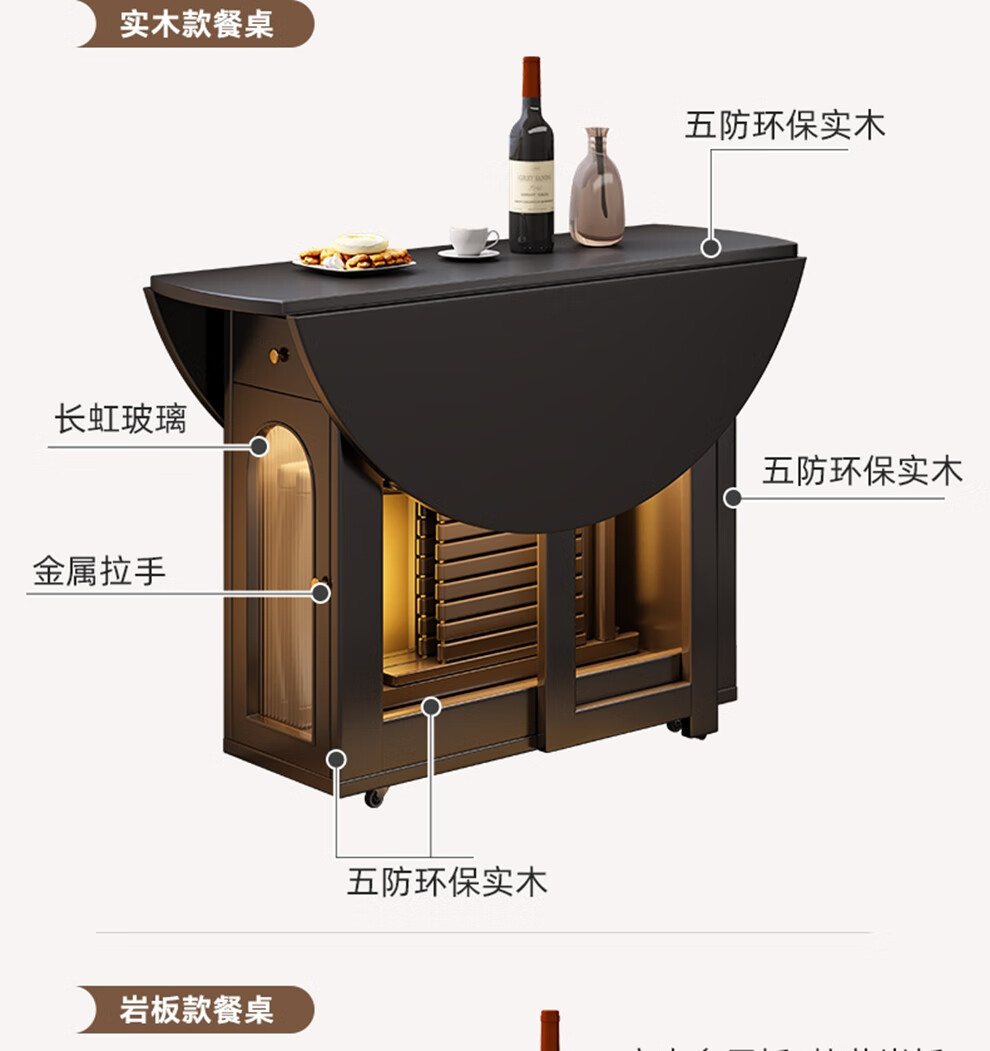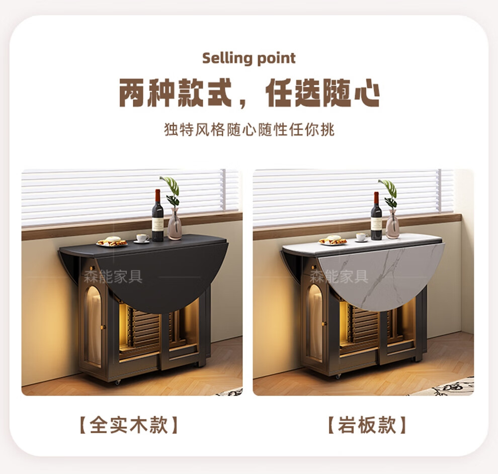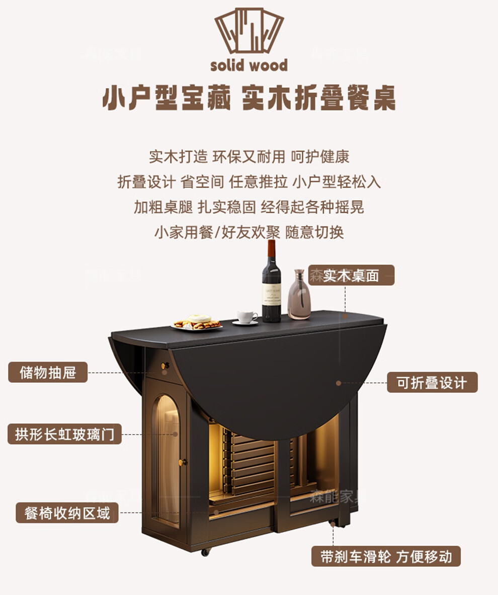 Senneng all-solid wood folding dining table and chair combination mid-century style small apartment retractable home dining side cabinet integrated dining round table 1.2 meters all solid wood folding round table