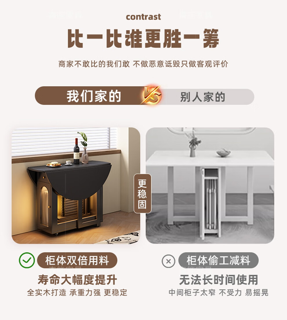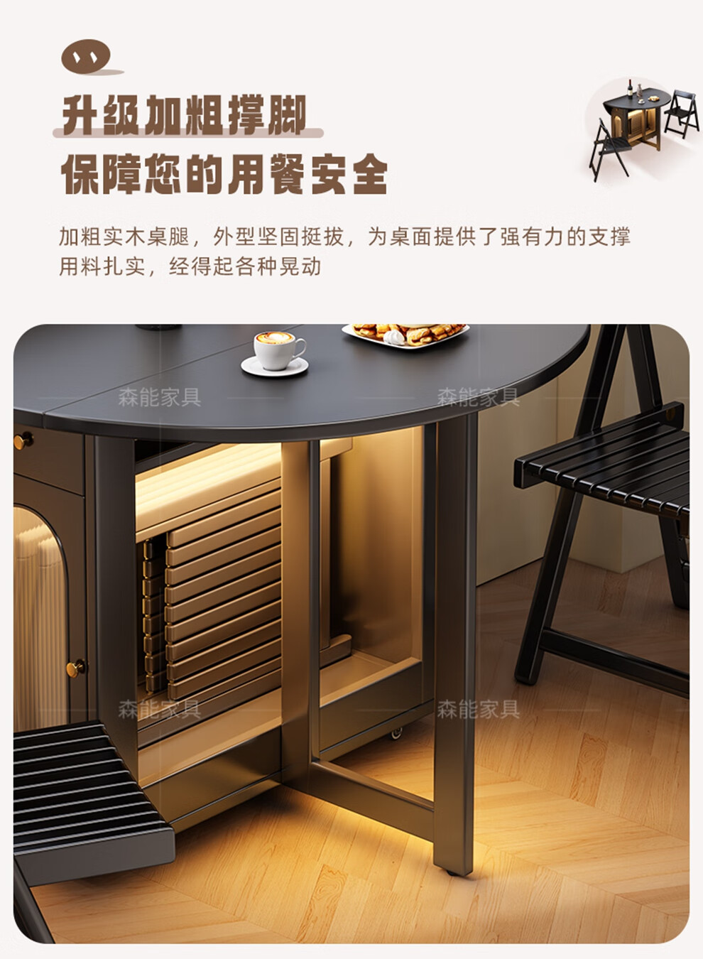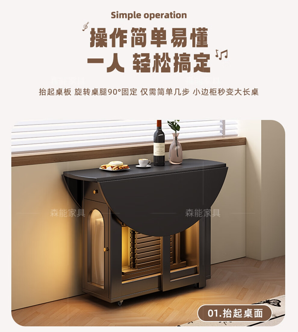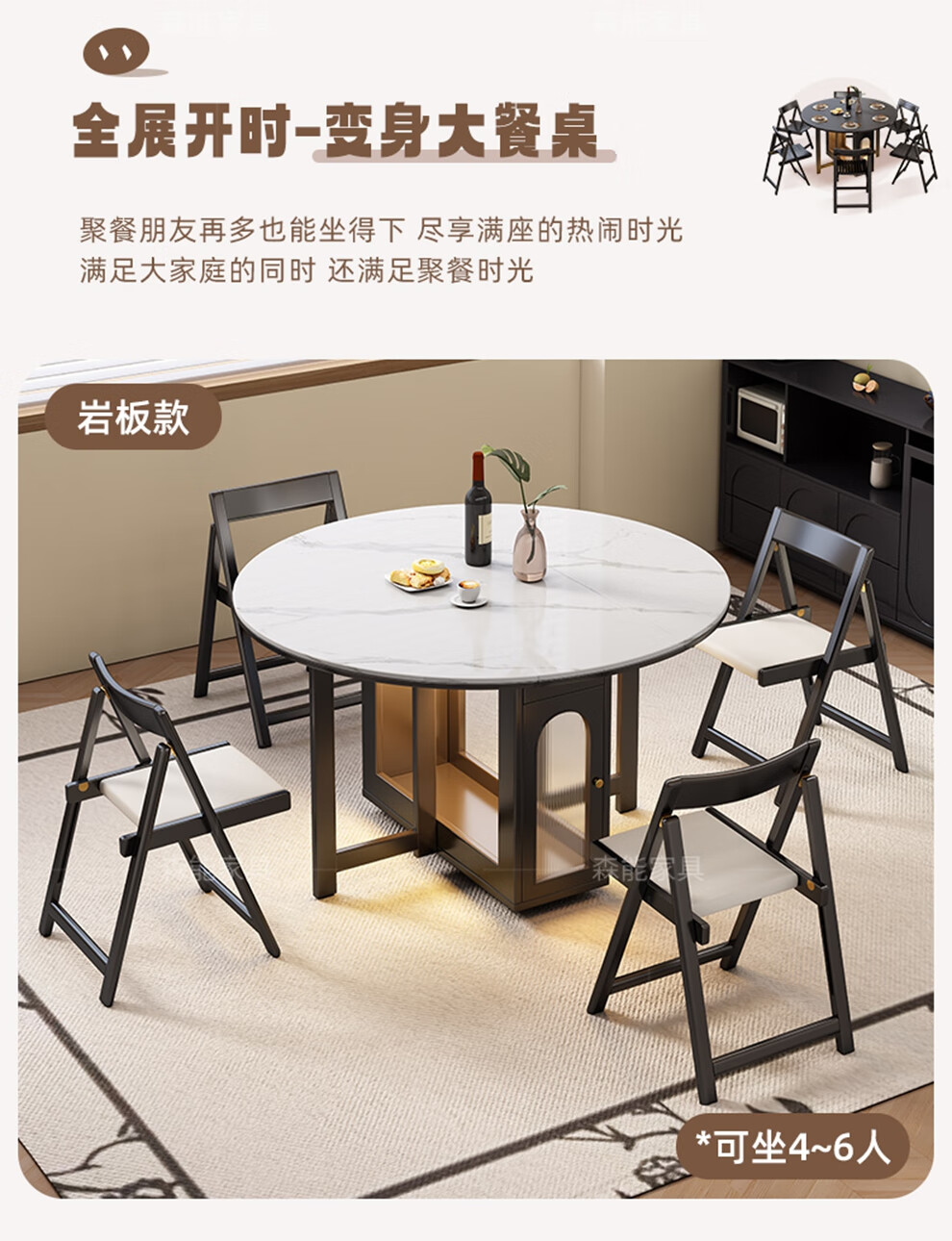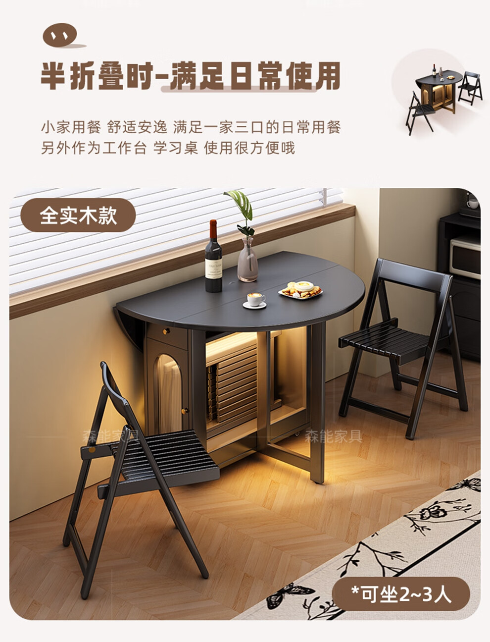 Senneng all-solid wood folding dining table and chair combination mid-century style small apartment retractable home dining side cabinet integrated dining round table 1.2 meters all solid wood folding round table