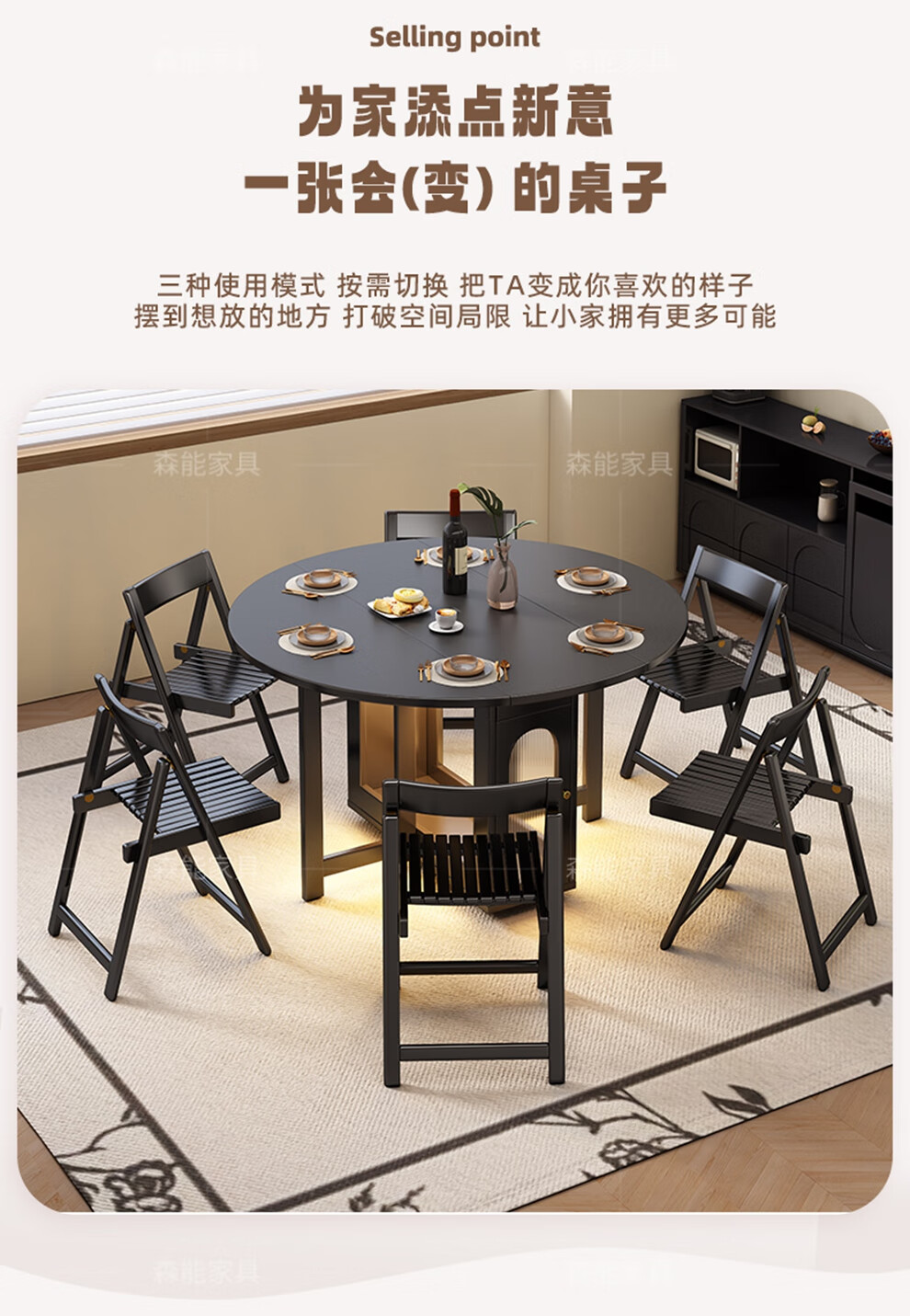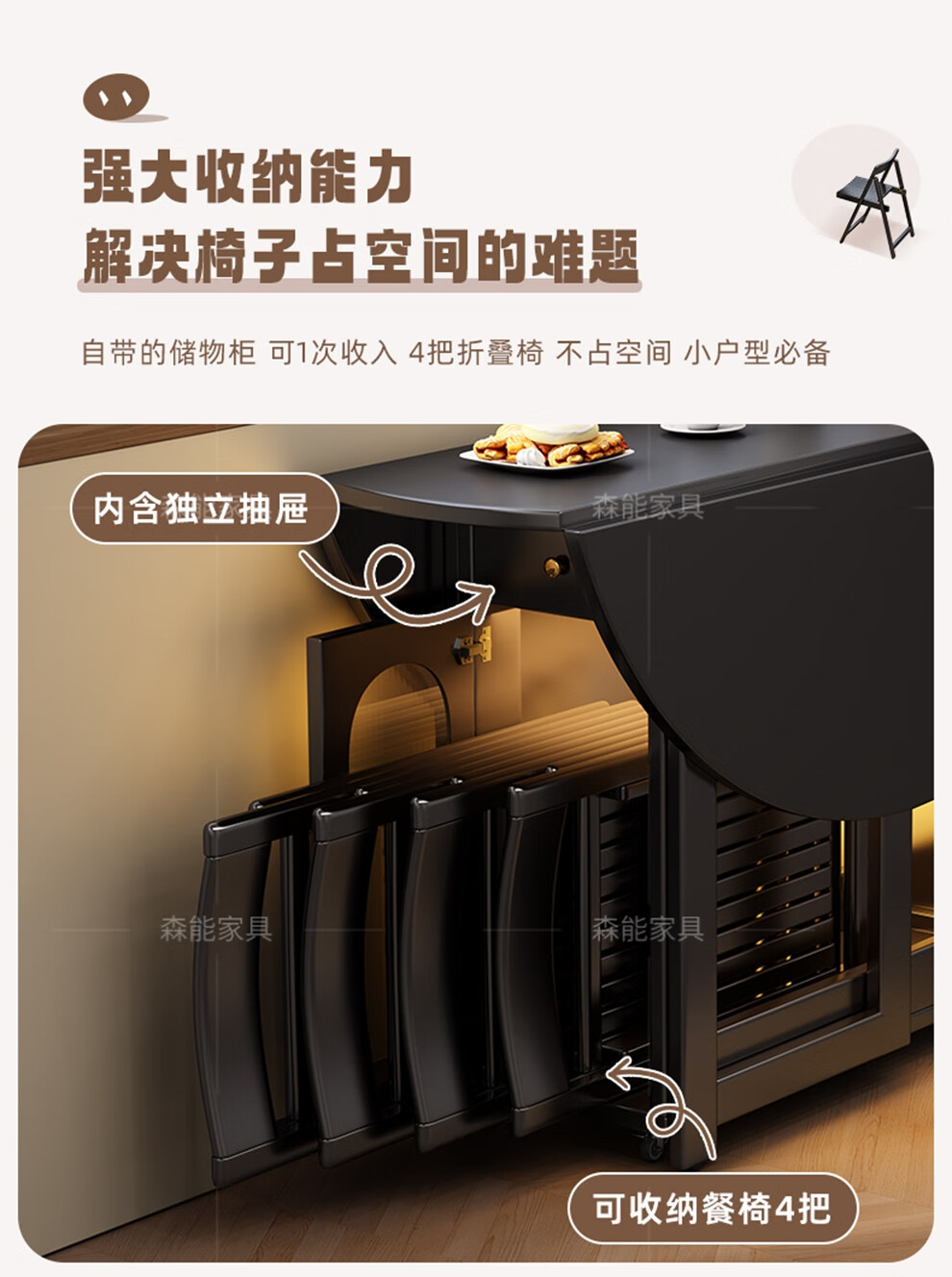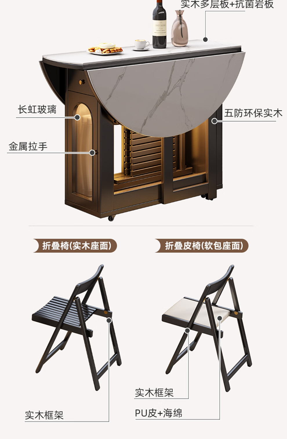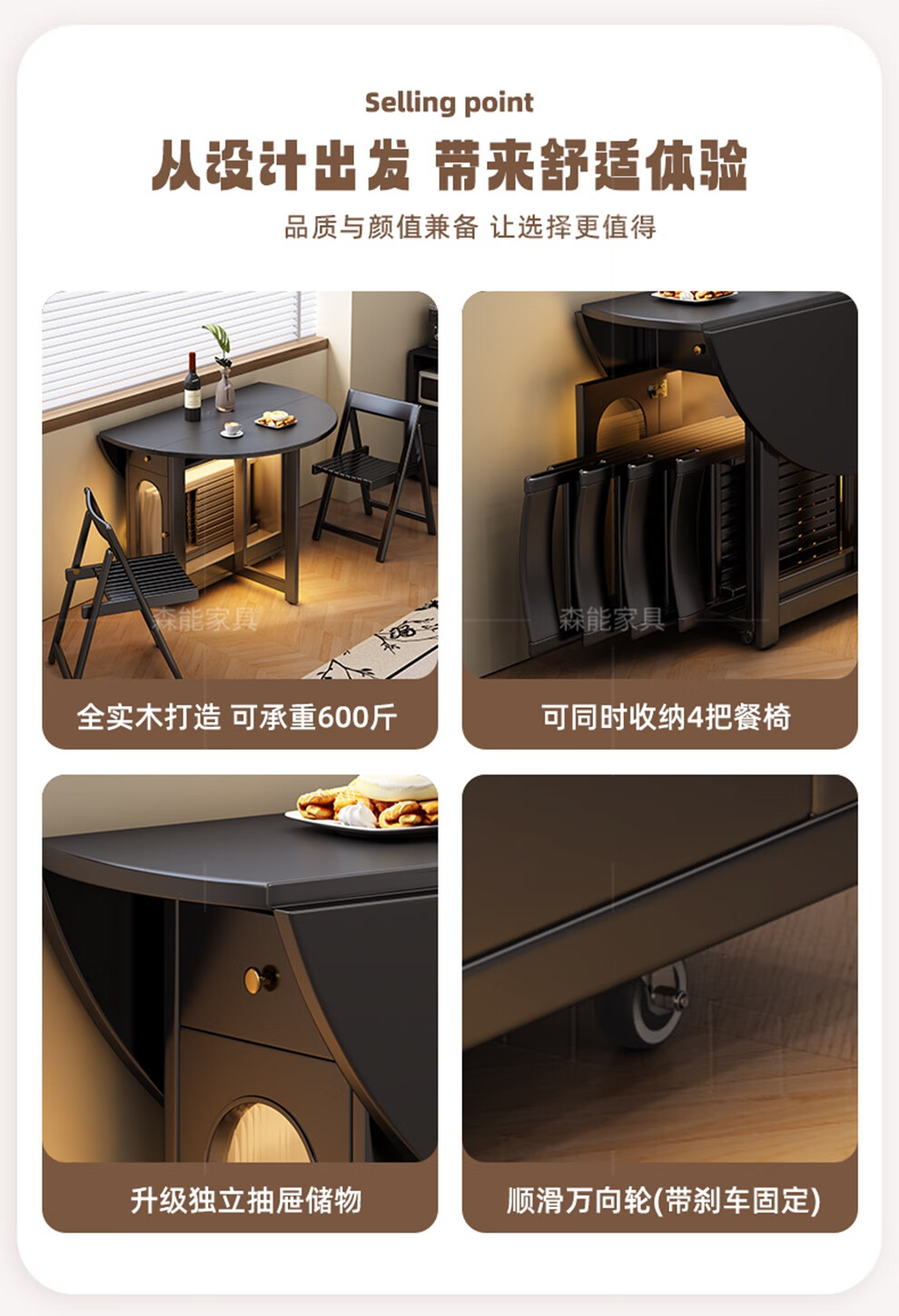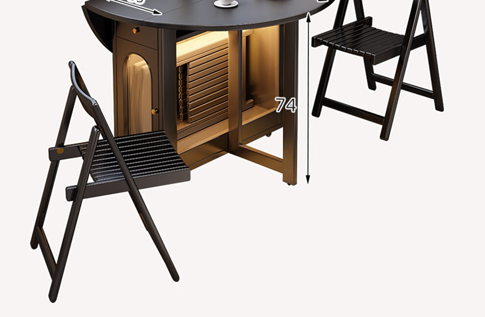 Senneng all-solid wood folding dining table and chair combination mid-century style small apartment retractable home dining side cabinet integrated dining round table 1.2 meters all solid wood folding round table