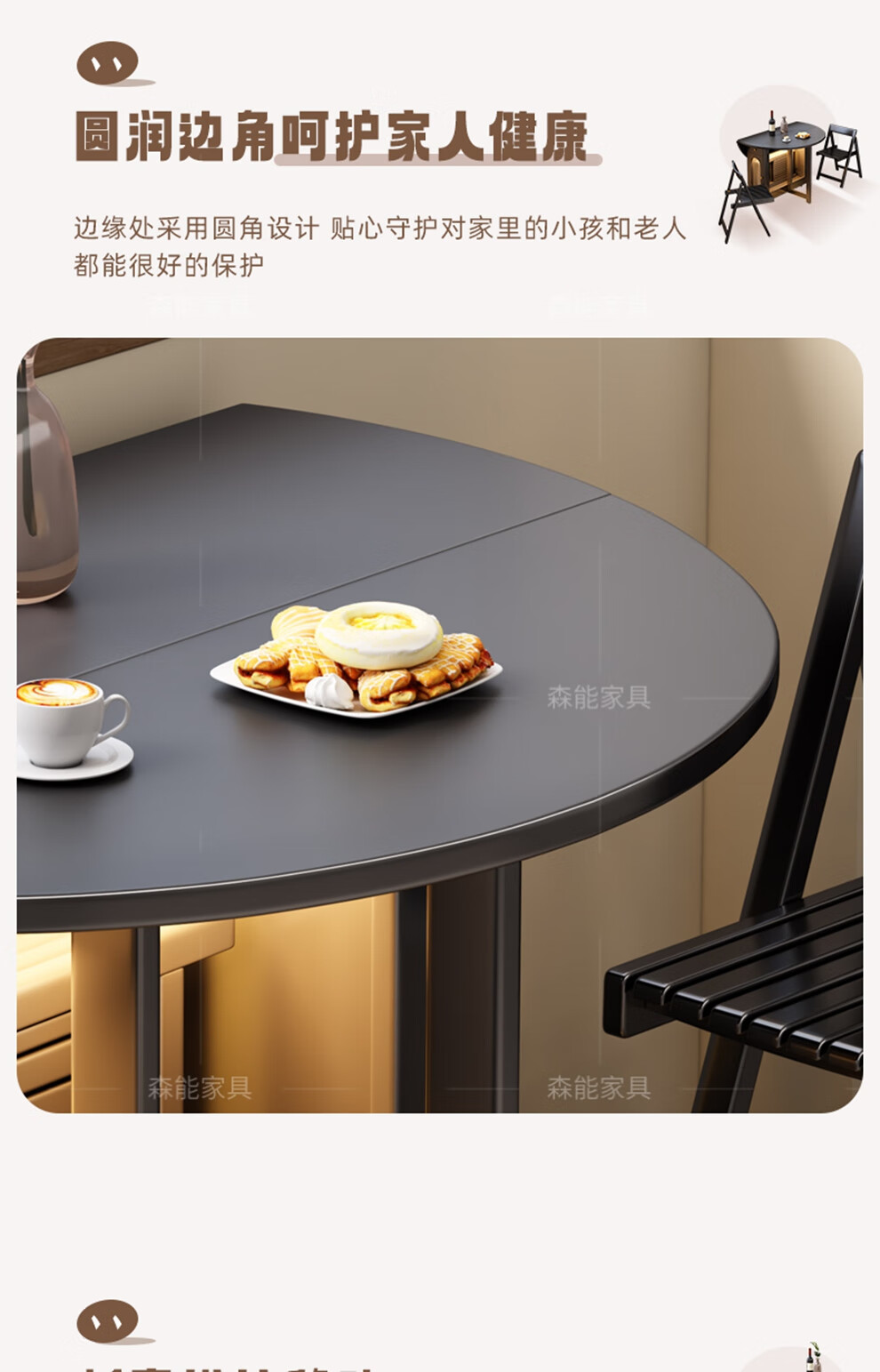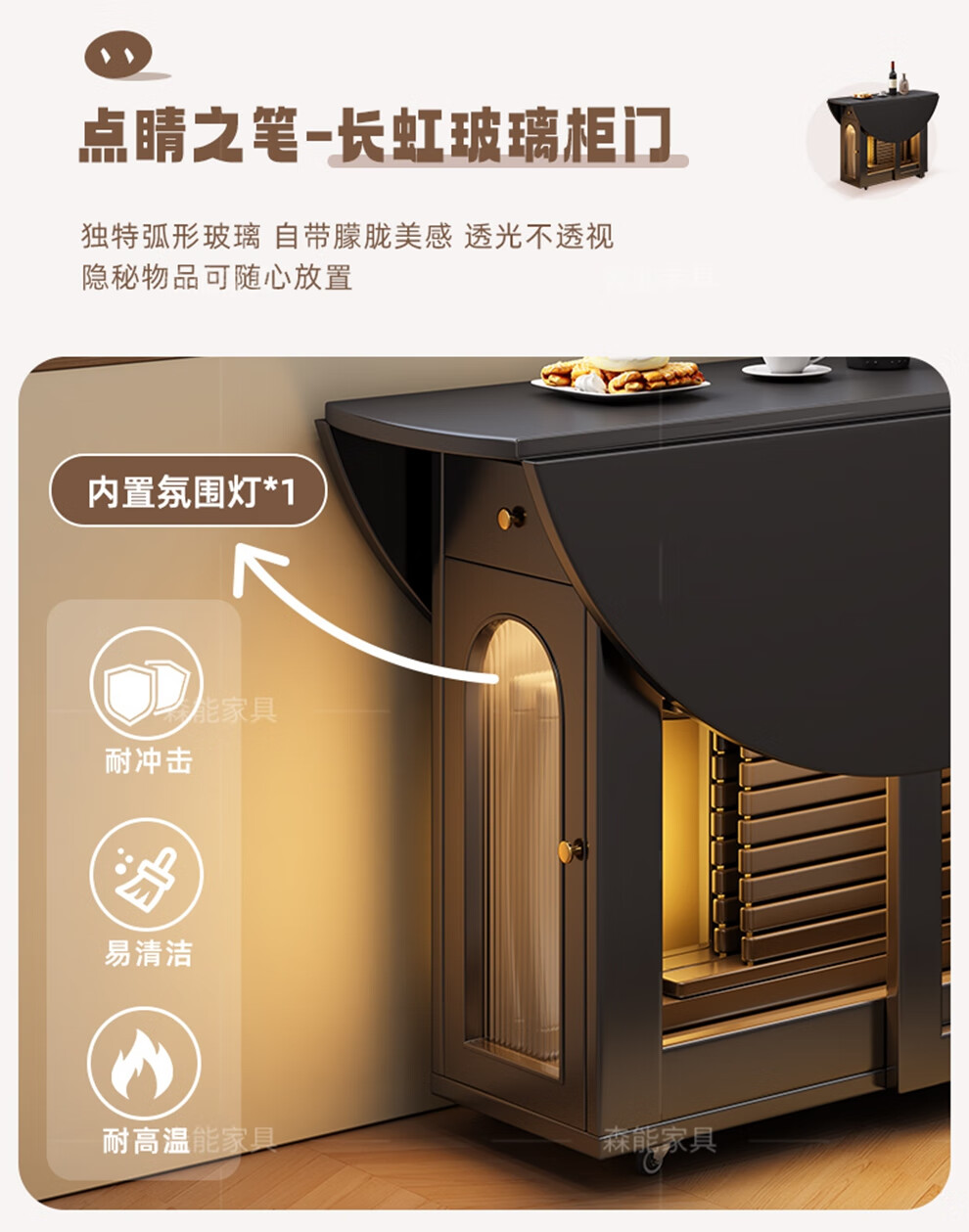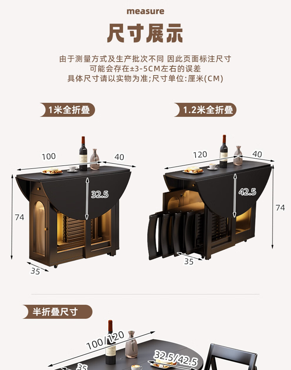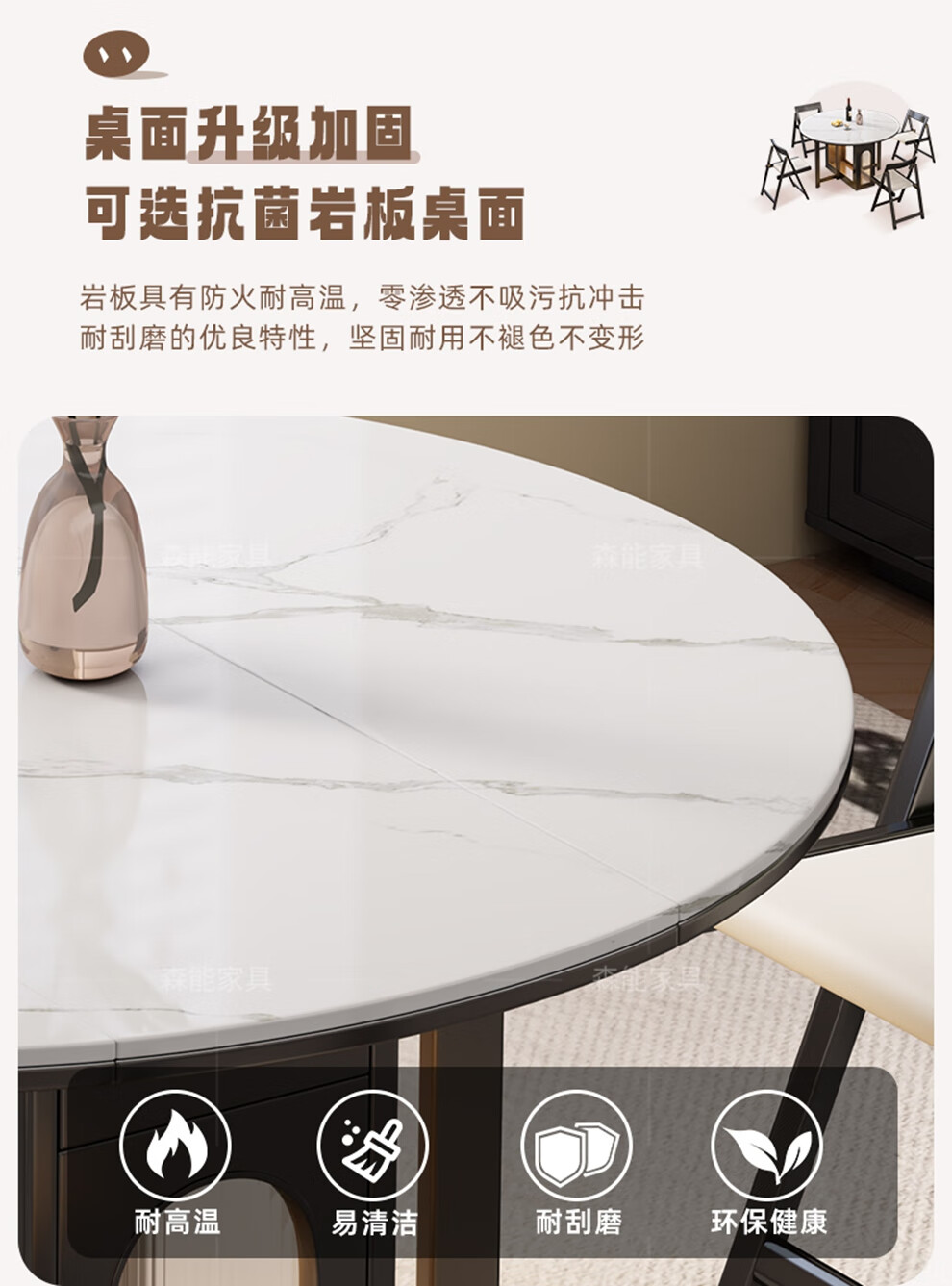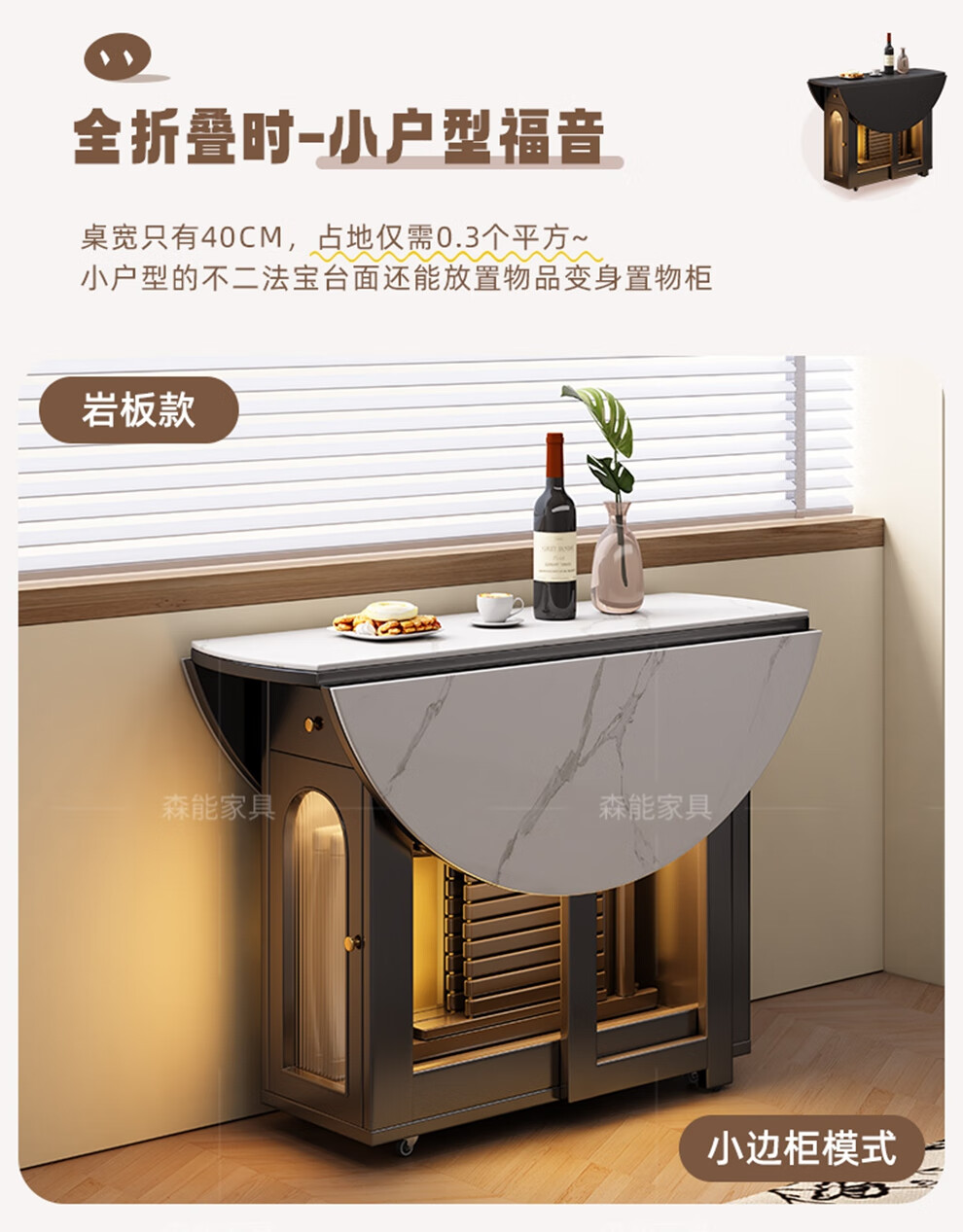 Senneng all-solid wood folding dining table and chair combination mid-century style small apartment retractable home dining side cabinet integrated dining round table 1.2 meters all solid wood folding round table