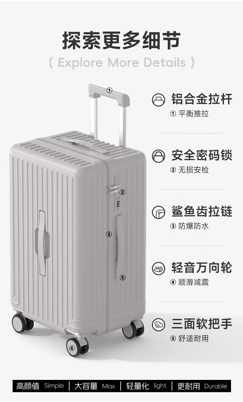 Scarecrow Extra Large Capacity Suitcase Zipper Password Trolley Case Internet Celebrity Male Voice Universal Wheel Suitcase Female Student Leather Suitcase Gentleman Black Extra Large Capacity + Increased Width 26 Inches Suitable for 5-7 Days Medium and Long-distance Travel