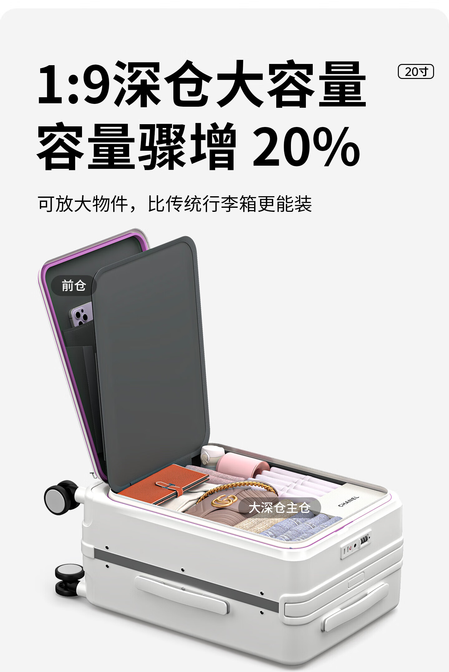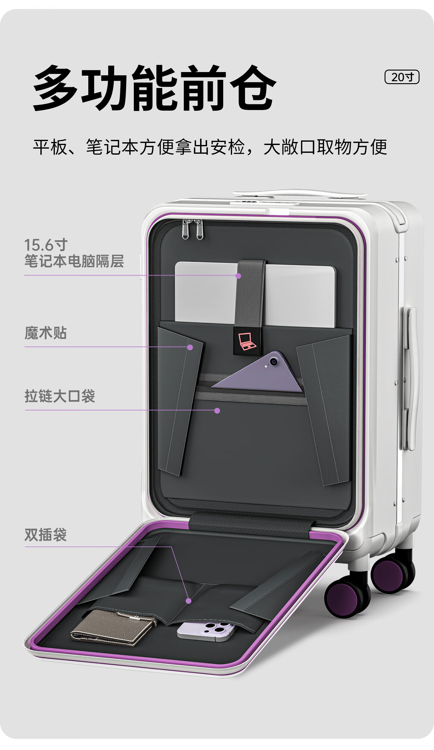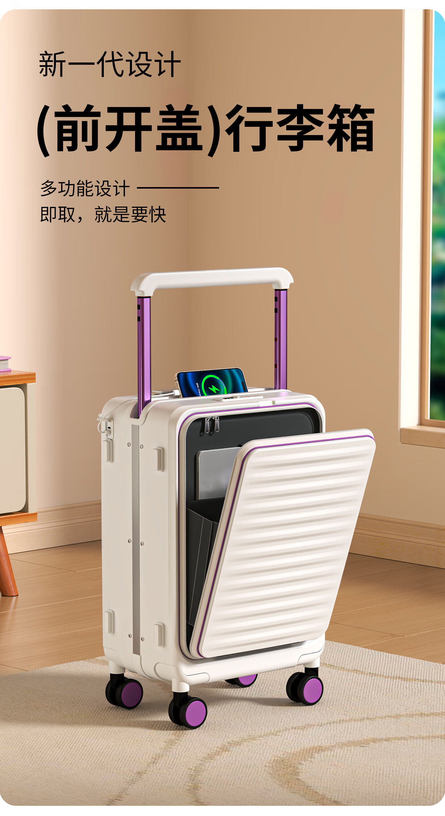 OTA front-opening suitcase for women 2026 new wide trolley large capacity business trip multi-functional and durable carry-on suitcase for men Oatmeal 1 9 large deep compartment + double-layer explosion-proof zipper + dual charging sockets 20-inch carry-on suitcase - front-opening suitcase for 1-5 days of travel