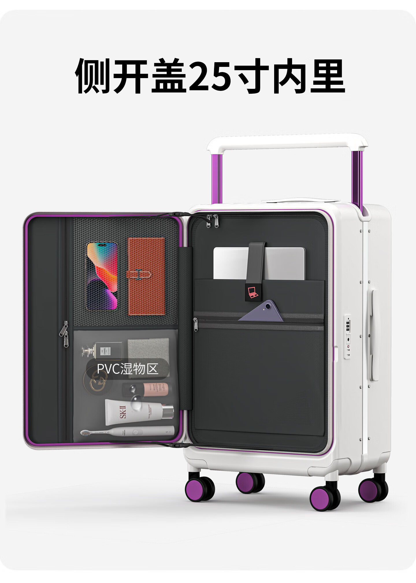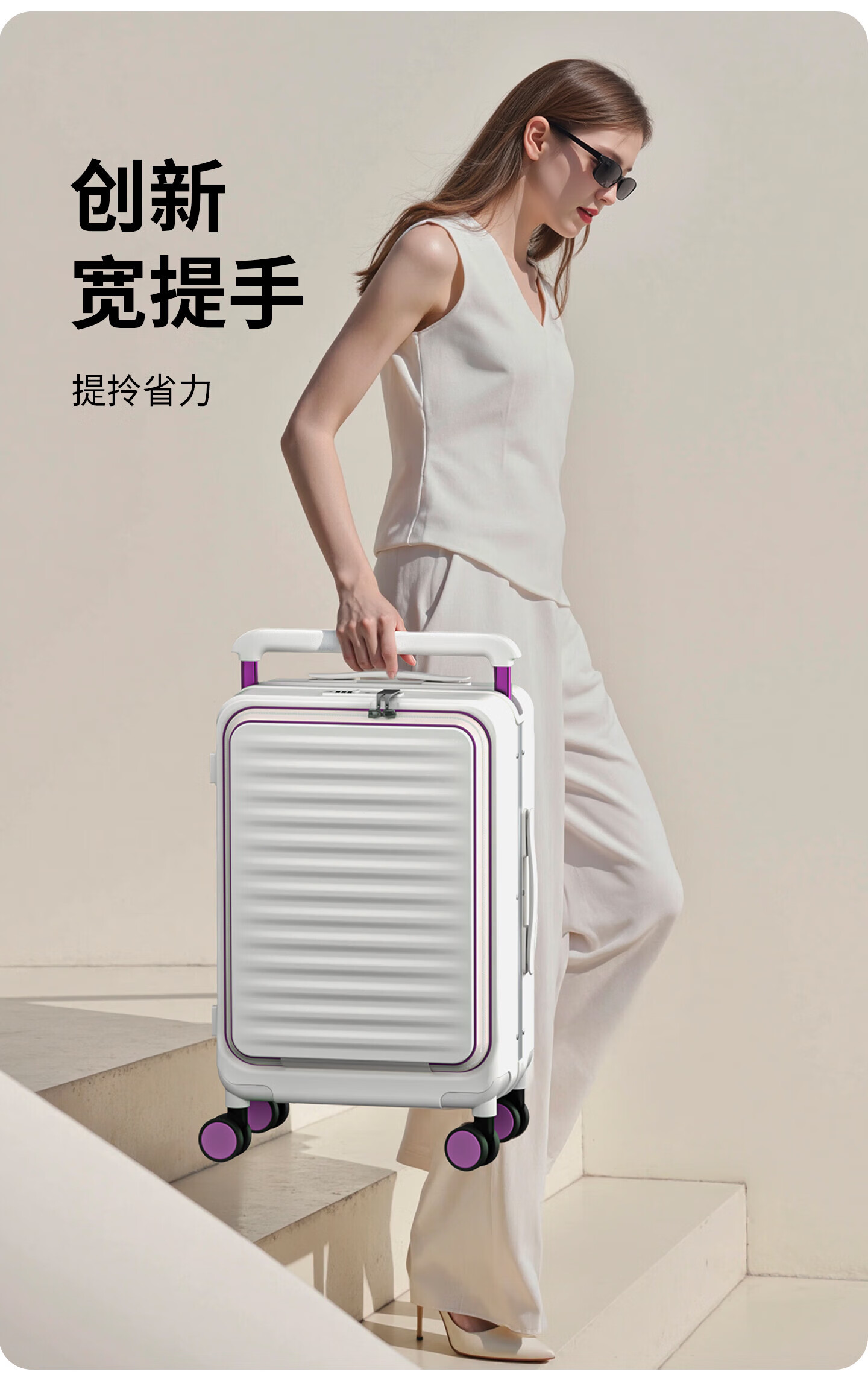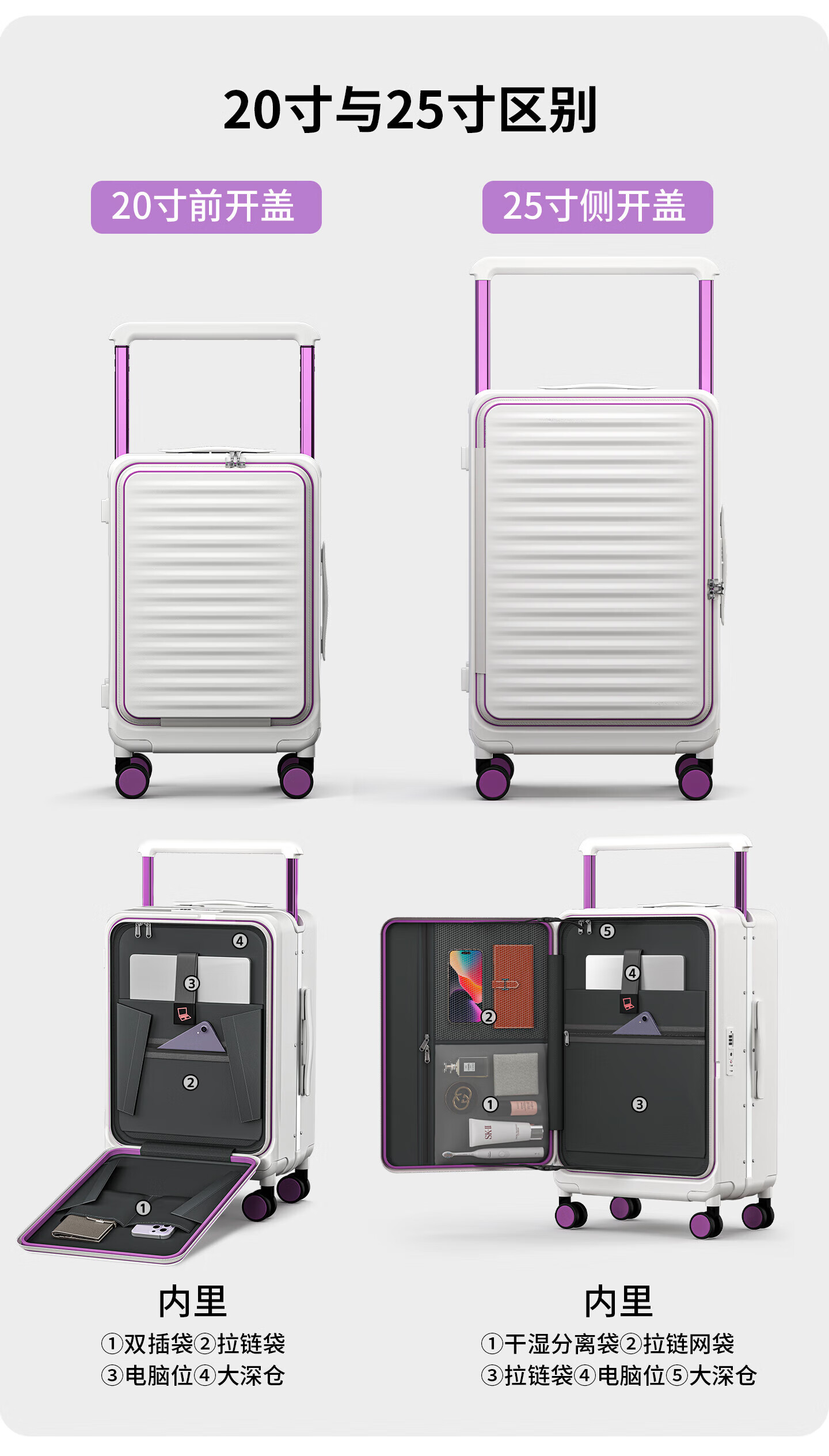 OTA front-opening suitcase for women 2026 new wide trolley large capacity business trip multi-functional and durable carry-on suitcase for men Oatmeal 1 9 large deep compartment + double-layer explosion-proof zipper + dual charging sockets 20-inch carry-on suitcase - front-opening suitcase for 1-5 days of travel