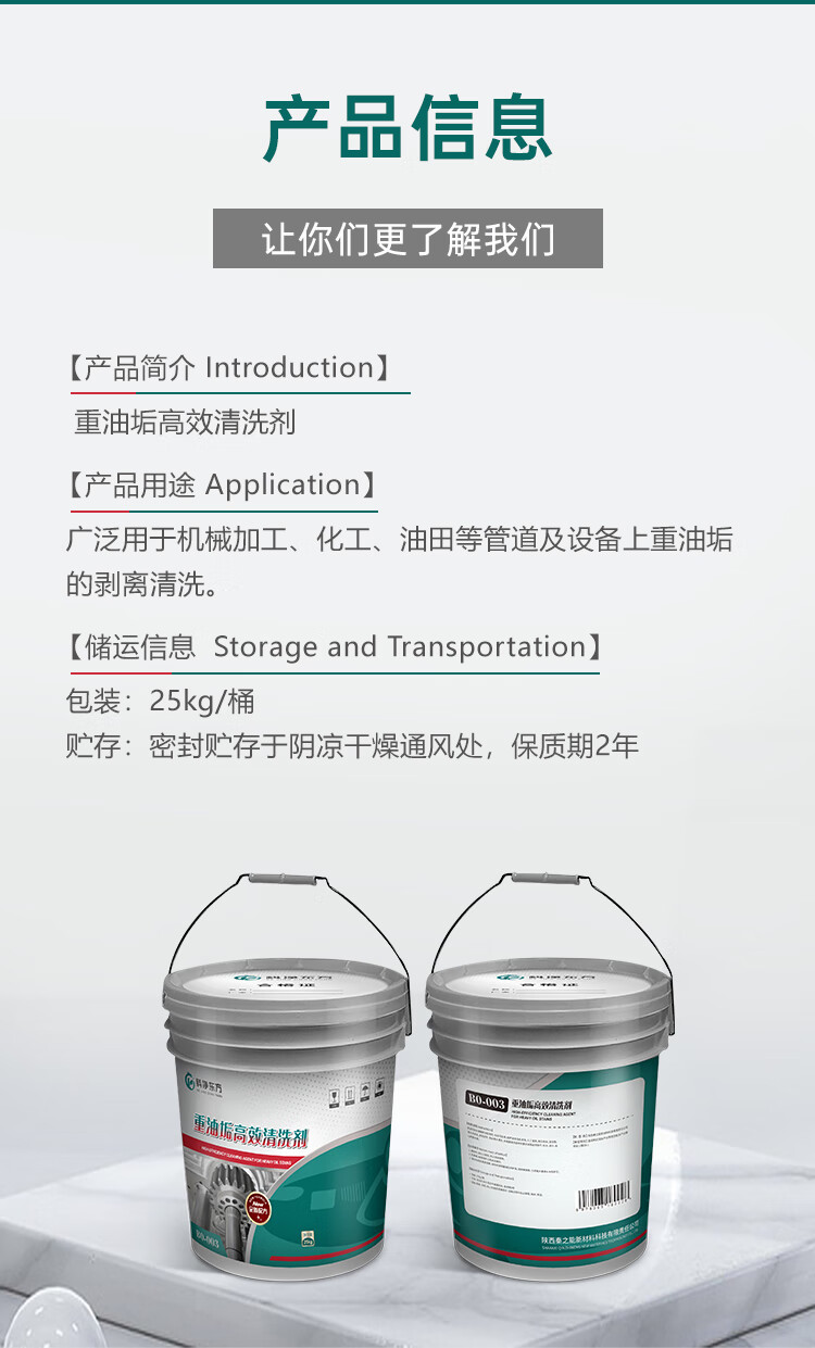BO-003 High-efficiency cleaning agent for heavy oil dirt 25kg/barrel cleaning agent