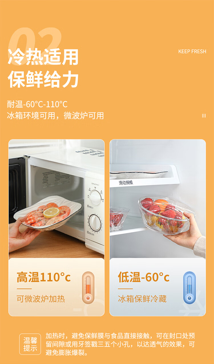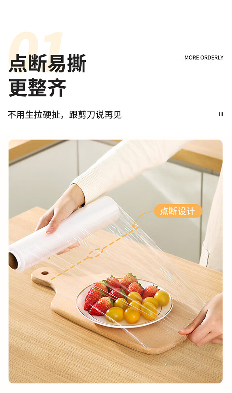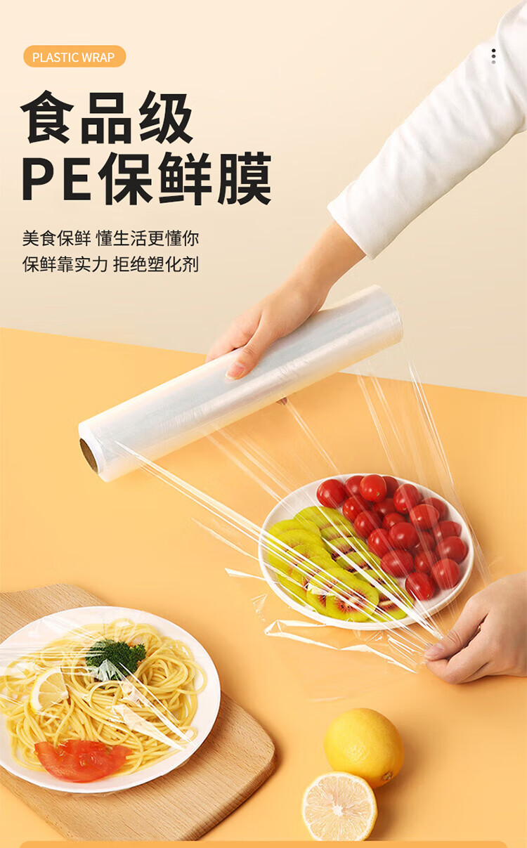 Cling film household point-break refrigerator special edible food-grade fresh-keeping bag economical PE large roll kitchen catering 25cm*50m 2 rolls non-point break