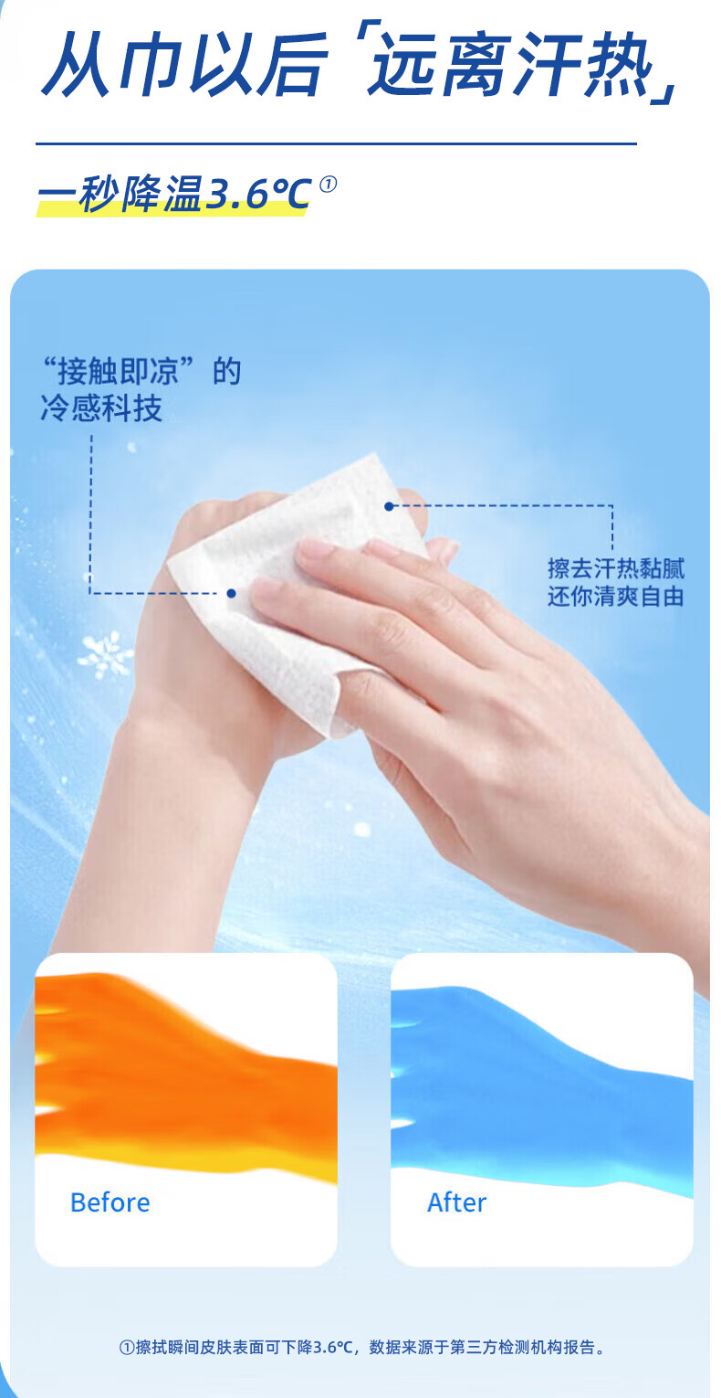 Summer must-have icy cooling sports cold wet wipes, portable antiperspirant, deodorant and heat-relieving cooling wet wipes, cool summer, 5 packs, 40 packs, 320 pieces