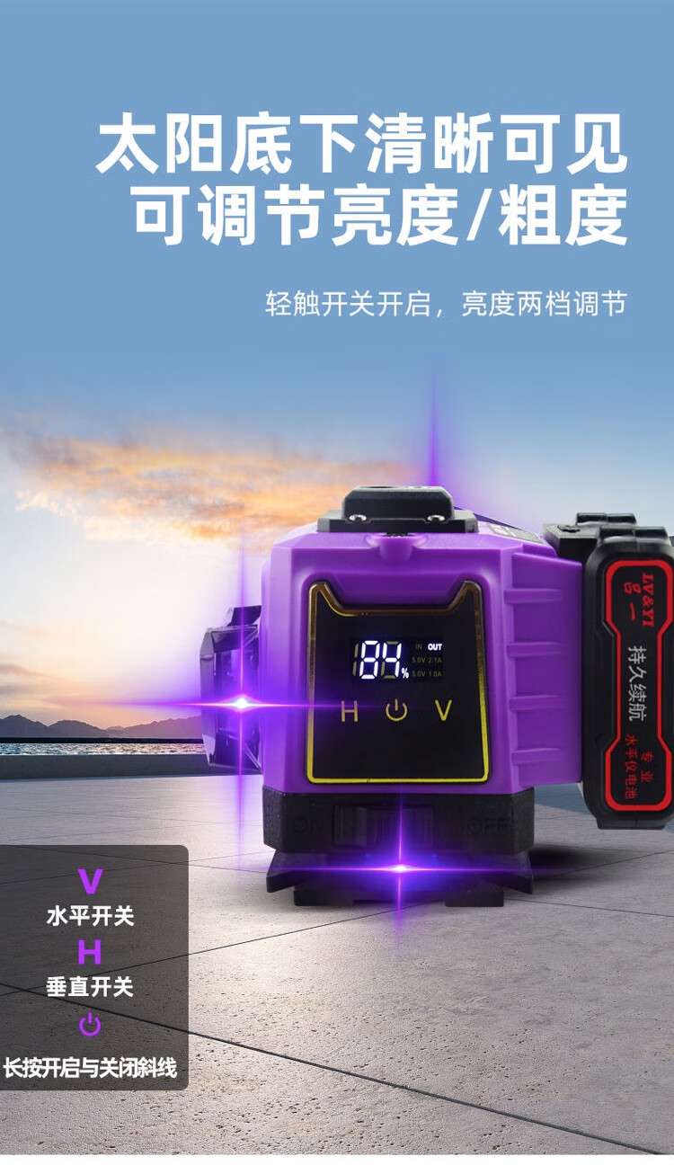 Purple light level meter Lvyi 12-line 16-line high-precision strong light infrared laser floor-mounting meter wall-mounting meter for outdoor use Purple light 12-line standard with rotating window