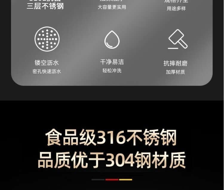 Zwilling (ZWILLING) Germany imported high-end same-quality stainless steel drain basket vegetable sink kitchen household fruit washing vegetable basket 316 steel + extra thick and deep end soon / 26cm solid