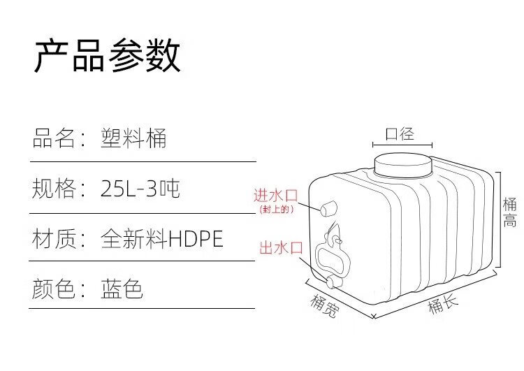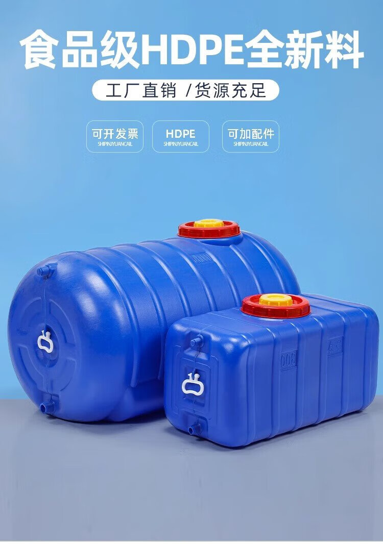 Household water storage tank horizontal round bucket large capacity water tower water tank plastic water storage bucket 1 ton 2 ton water tank white horizontal 1120 catties anti-aging
