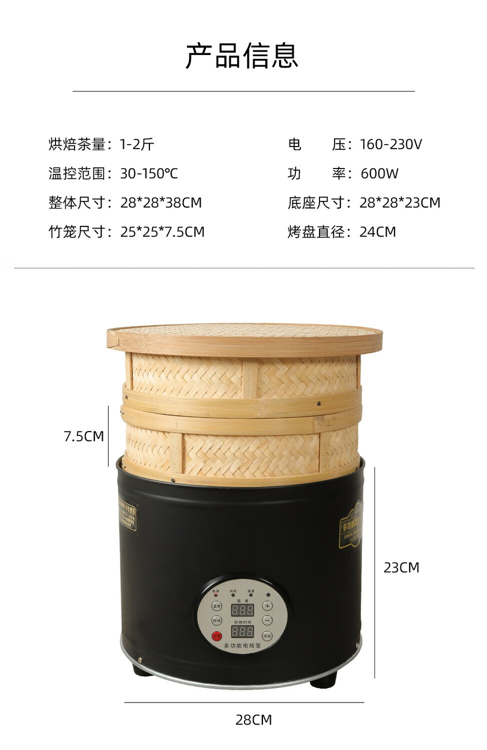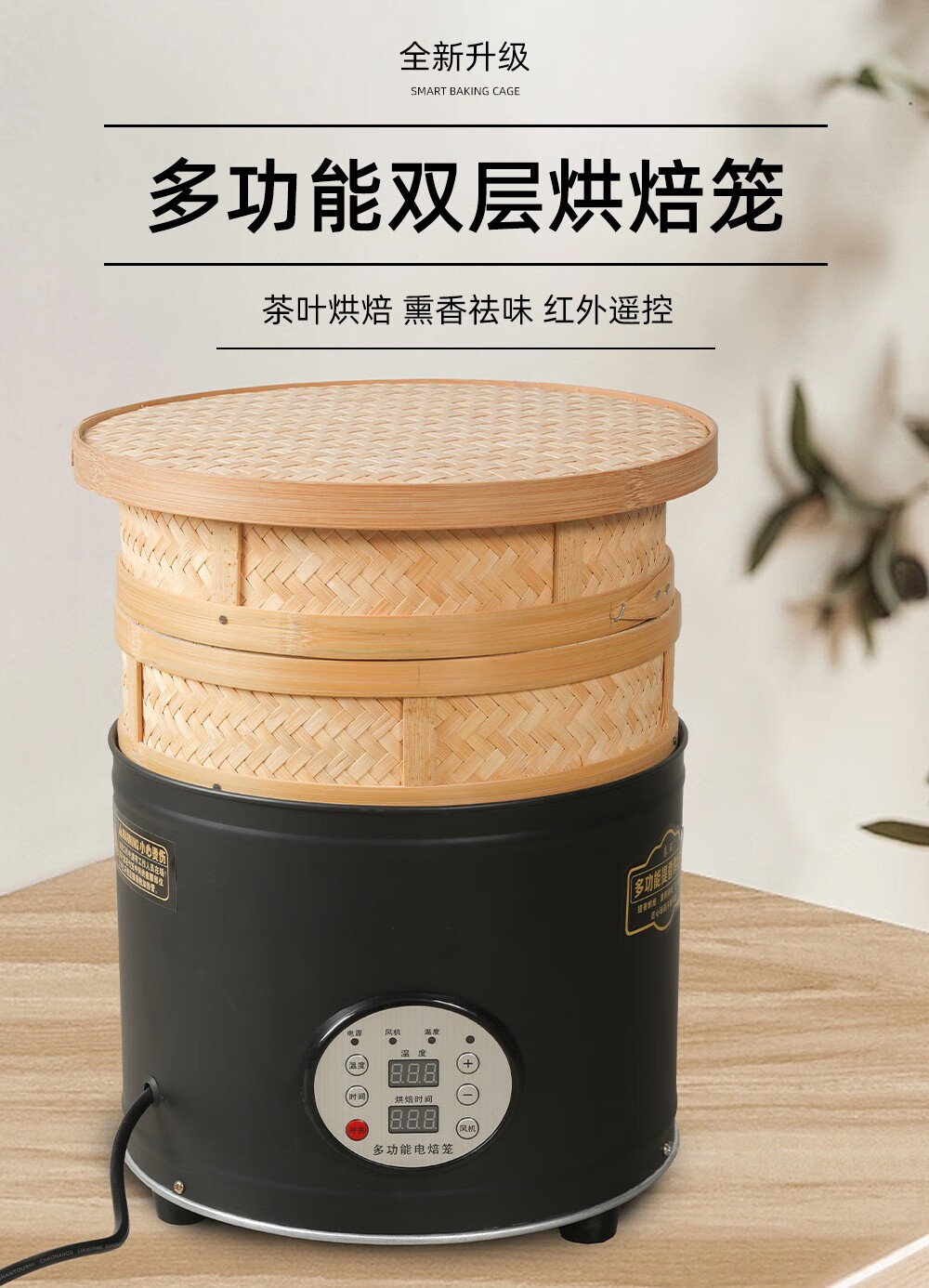 Xiafan Tea Flavor Mechanical Electric Baking Cage Roasting Machine Double-layered Tea Roasting Machine Roasted Tea Roasting Machine Household Small Deodorized Baking Cage 27 Diameter Double-layered Black Intelligent Fan Model