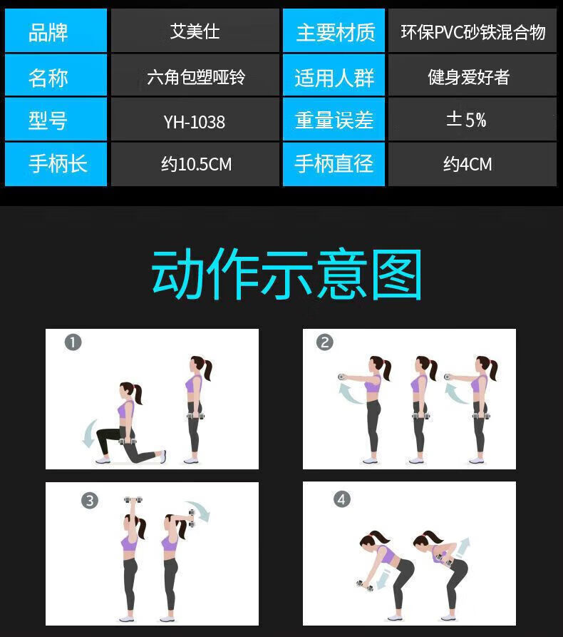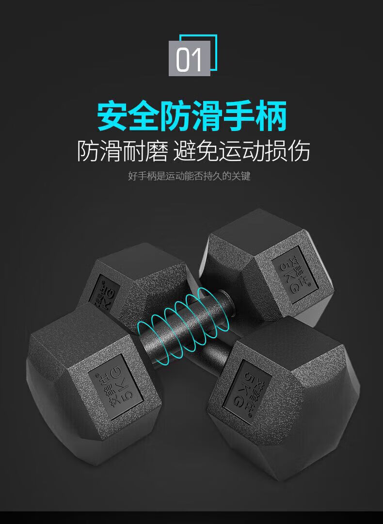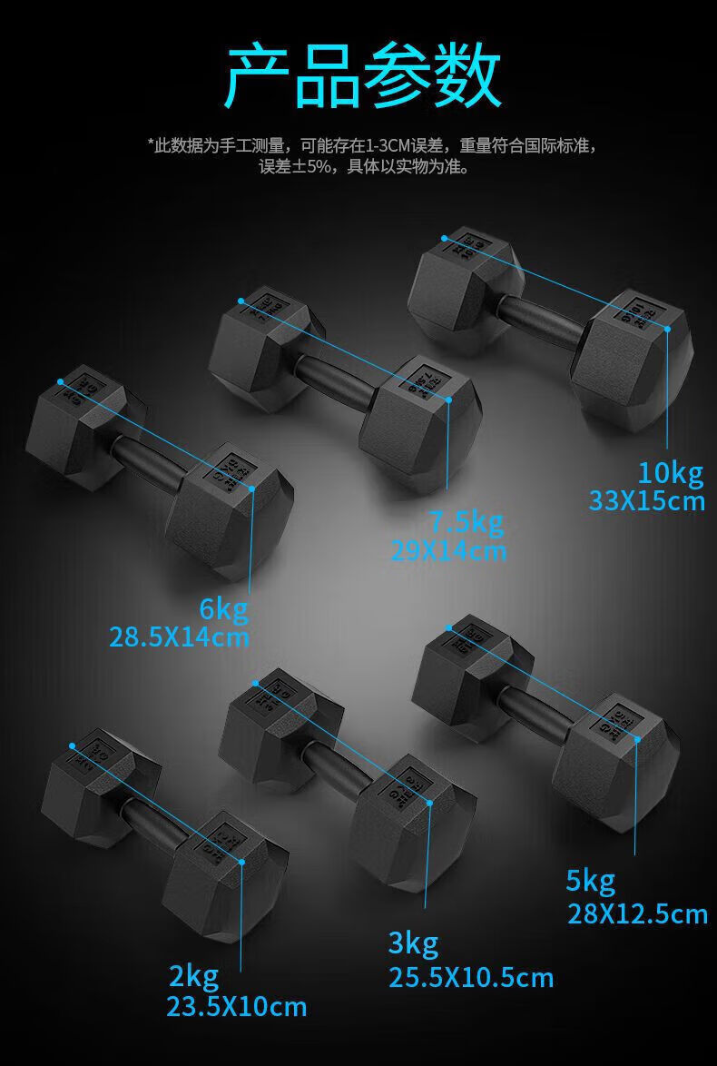 Weightlifting equipment hexagonal dumbbells for men's fitness students 25 kg household 10 packs of rubber arm training for female fitness, total weight 4 catties a pair (2 catties 2)