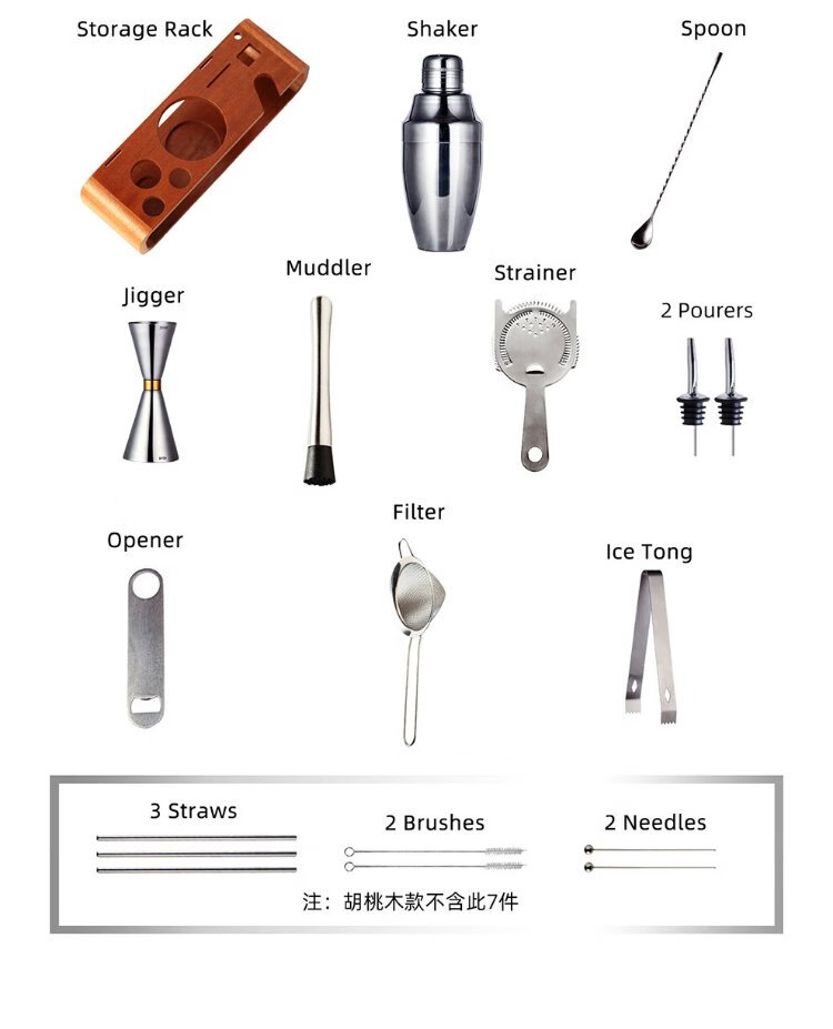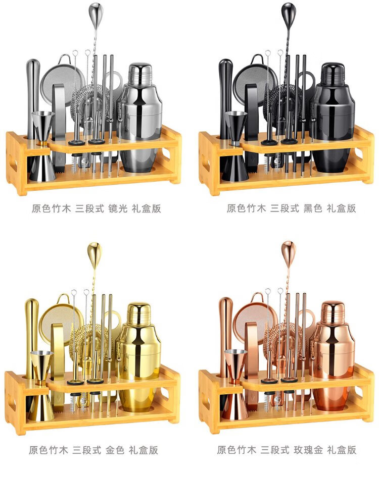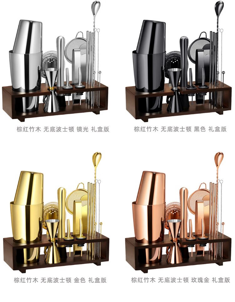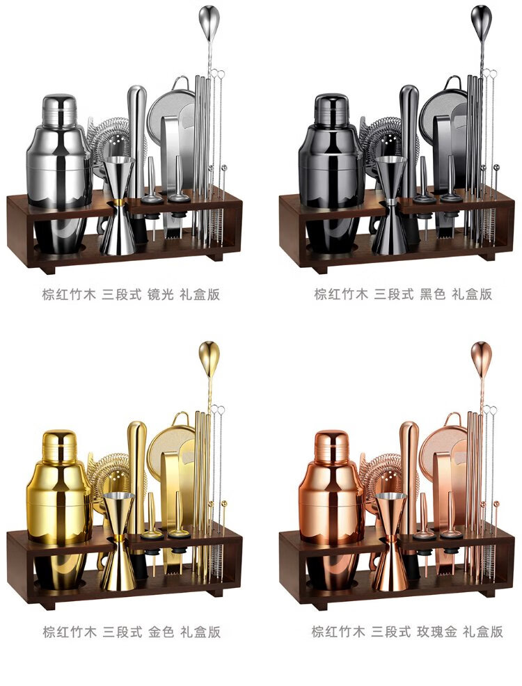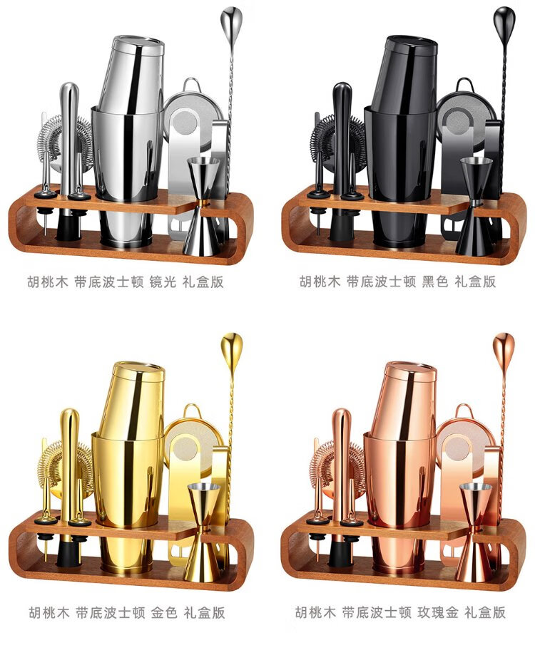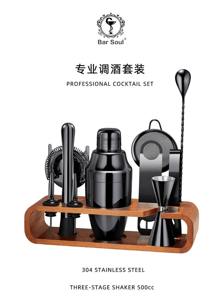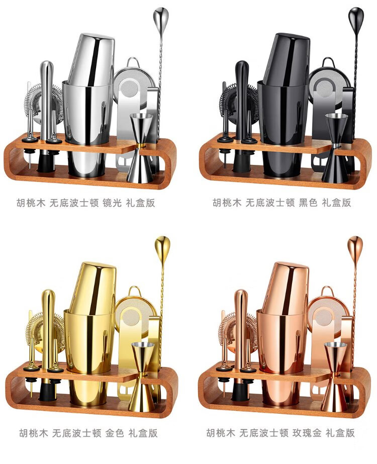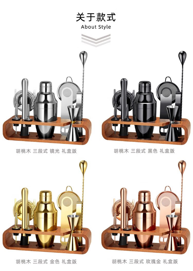 Bar Soul Professional Bartending Set 304 Stainless Steel Cocktail Making Tools Gift Box Set Mixer Set Walnut Three-Section Mirror Gift Box Edition