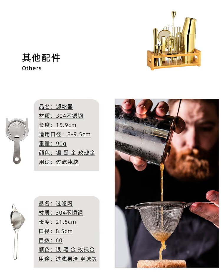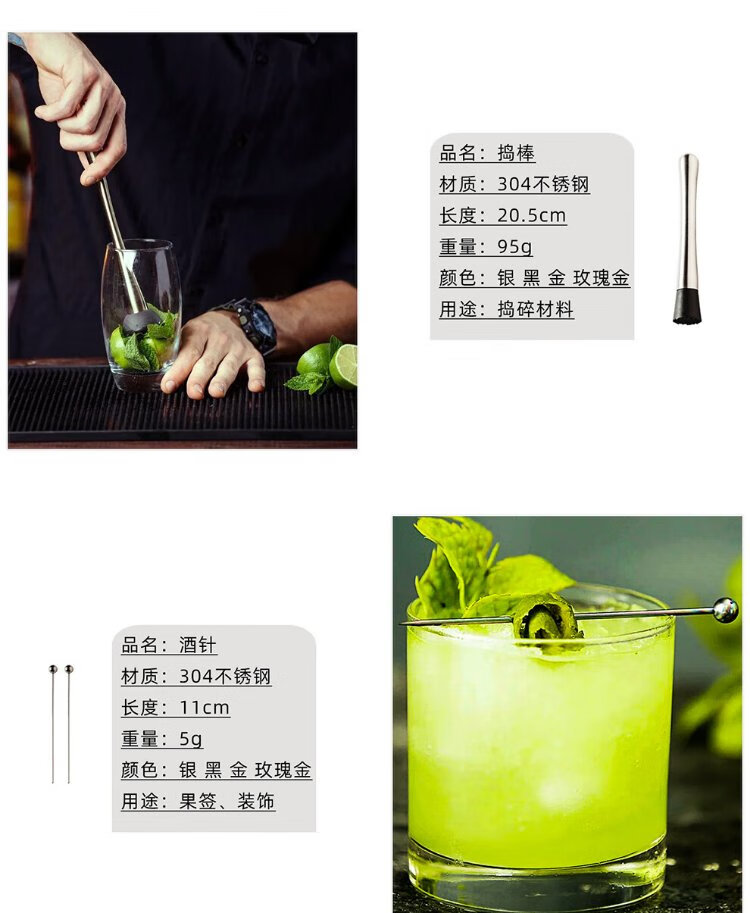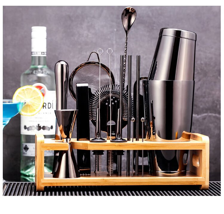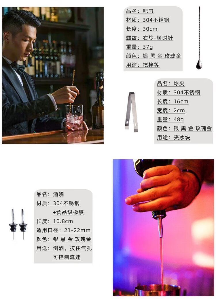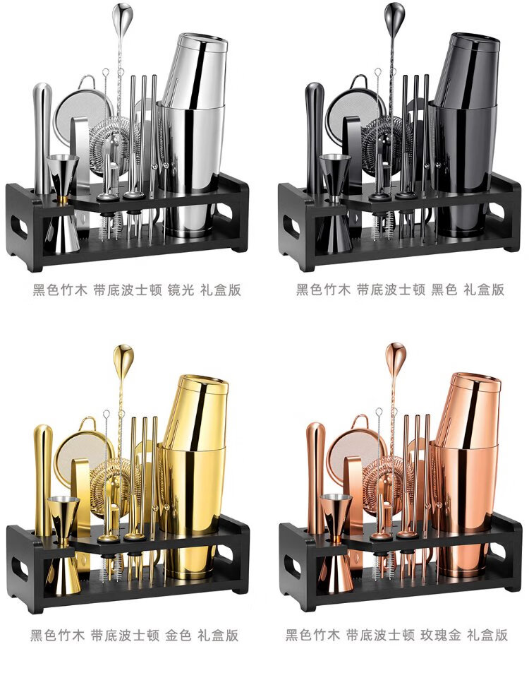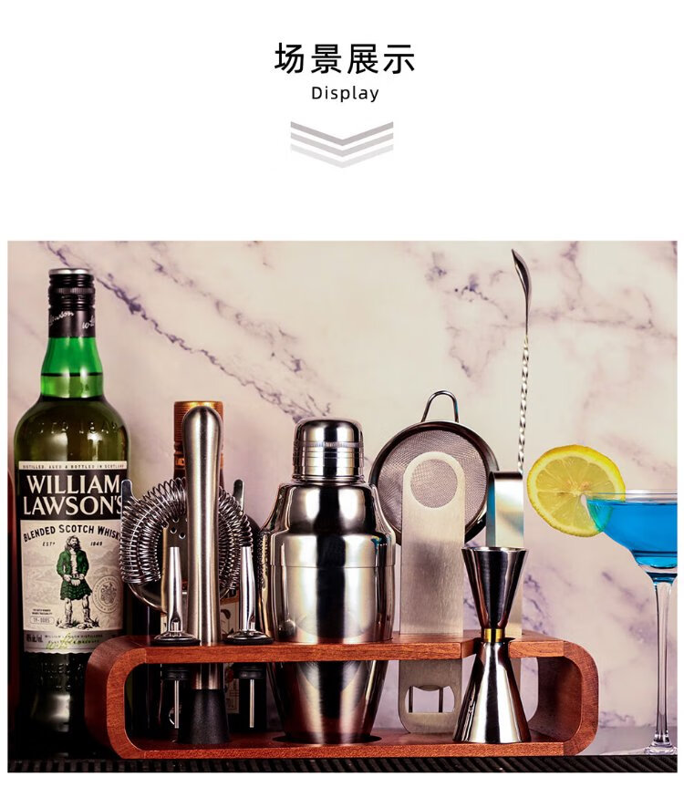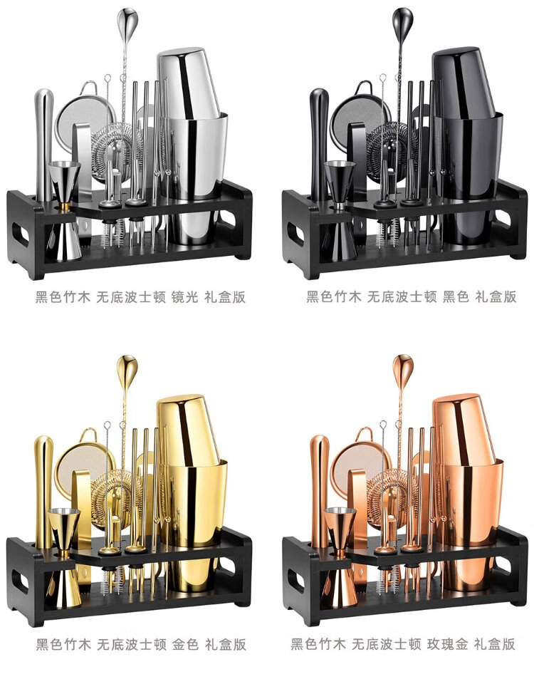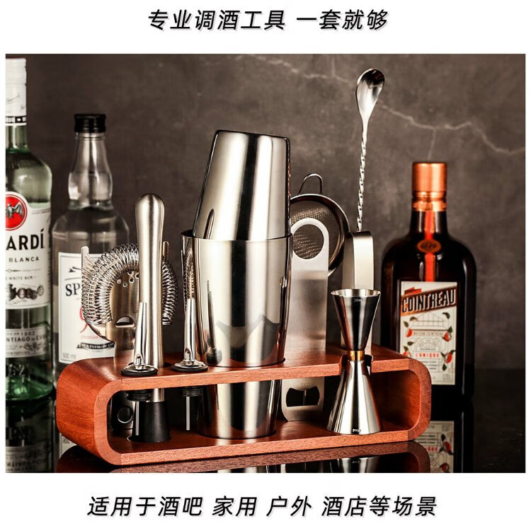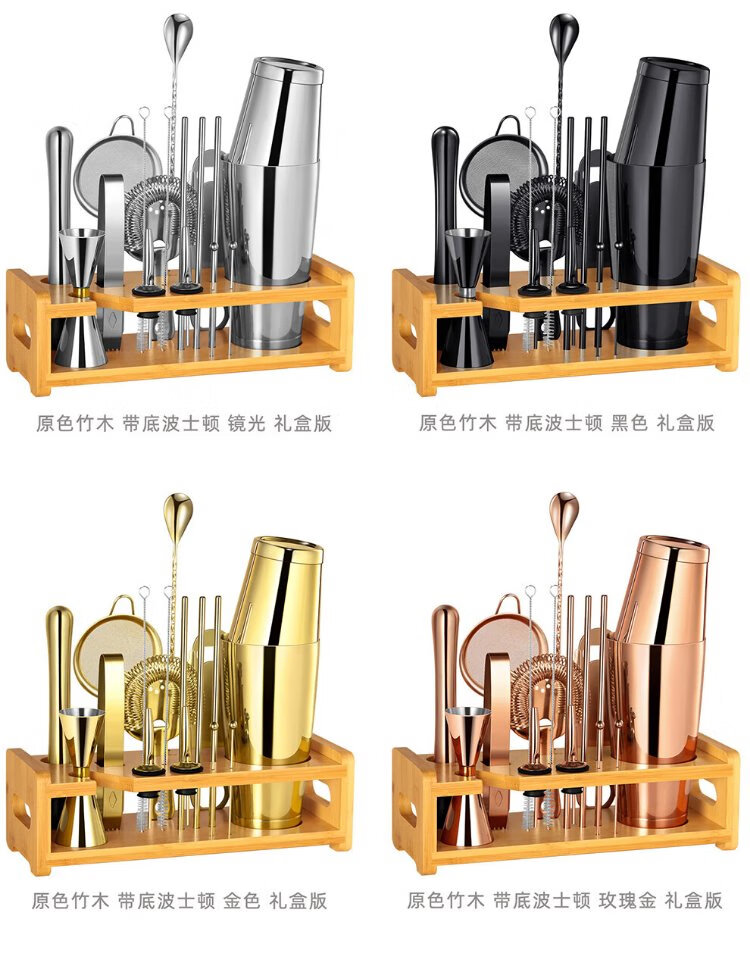 Bar Soul Professional Bartending Set 304 Stainless Steel Cocktail Making Tools Gift Box Set Mixer Set Walnut Three-Section Mirror Gift Box Edition