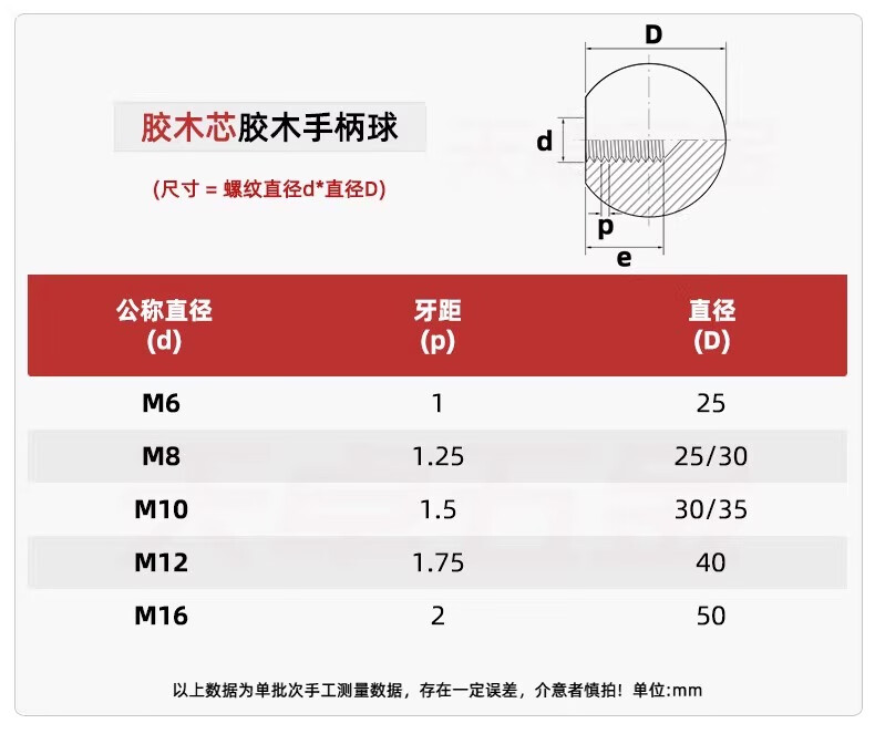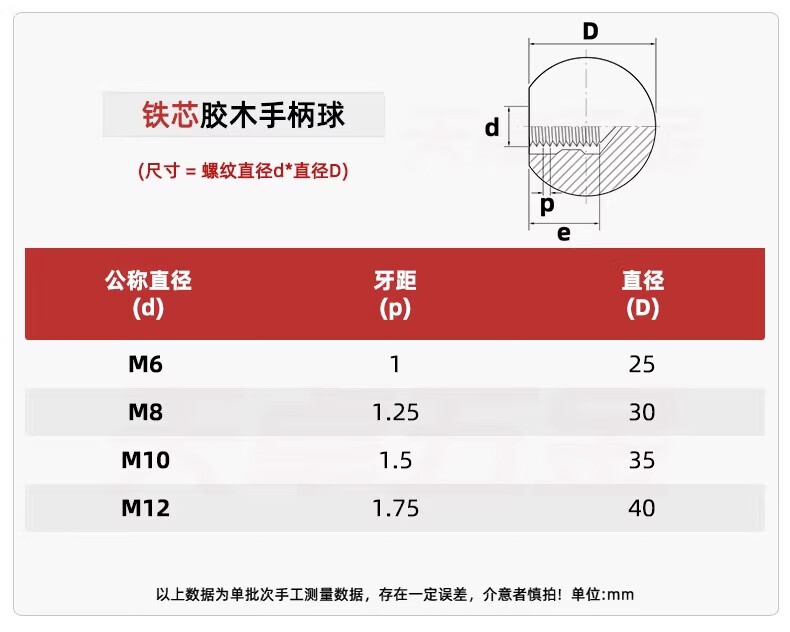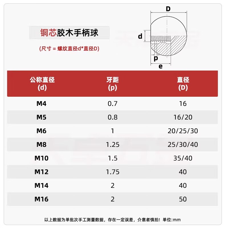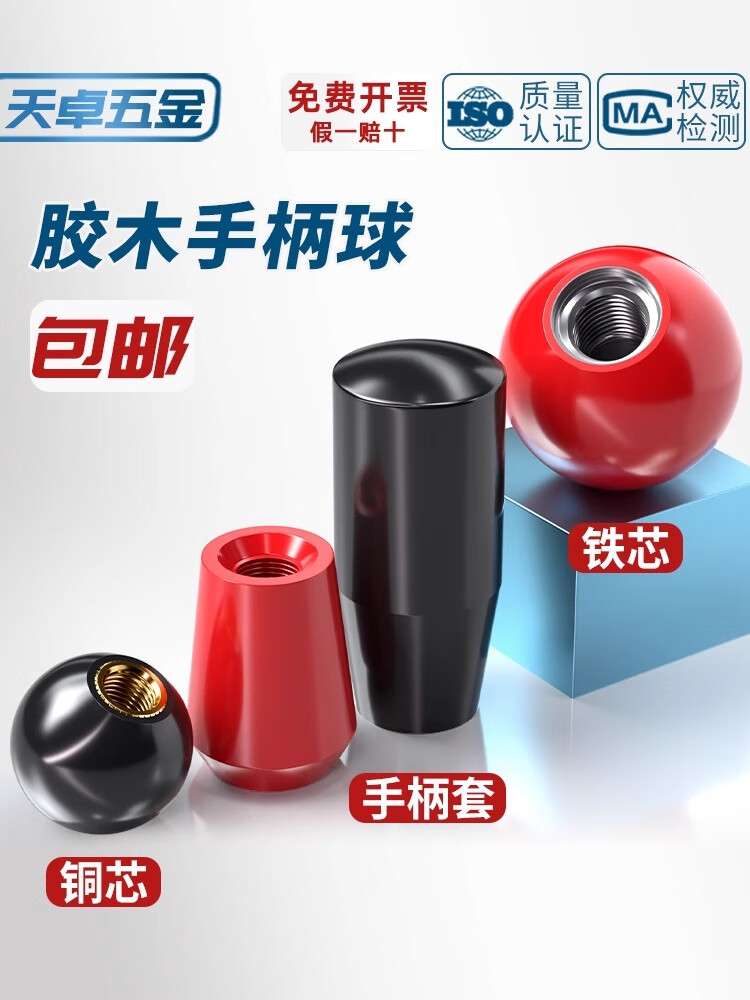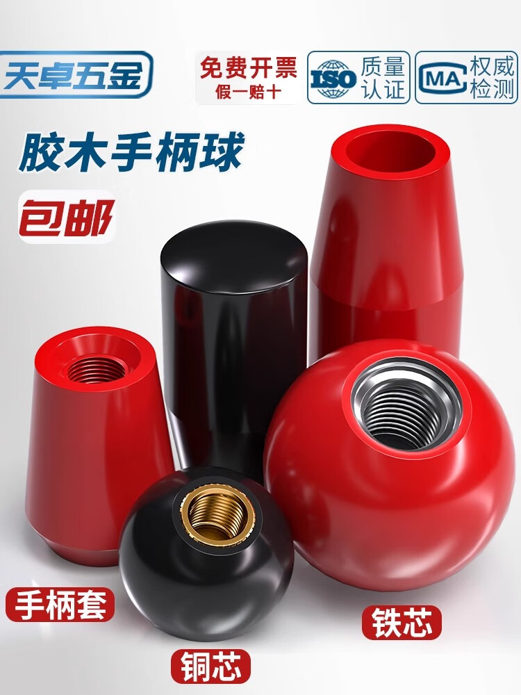 Tianzhuo Hardware national standard bakelite ball handle plastic ball operating rod ball head handle red copper core black iron core bakelite M4-M16 M6*25 (red bakelite core)-5 pieces