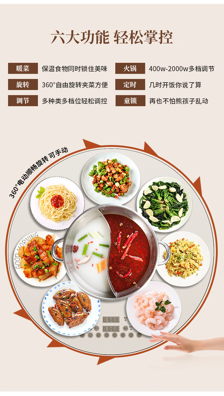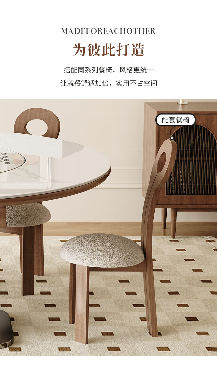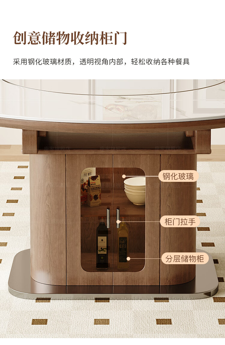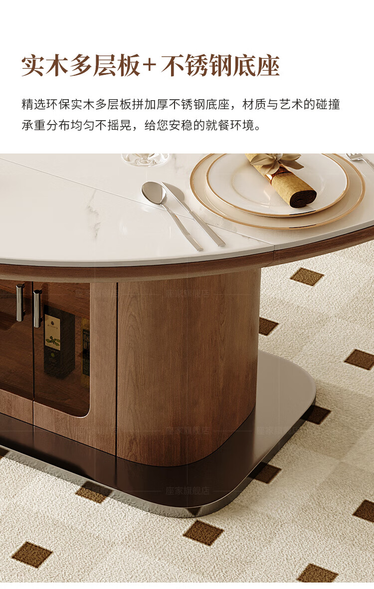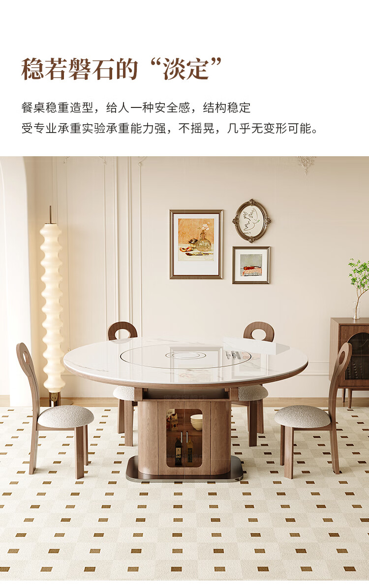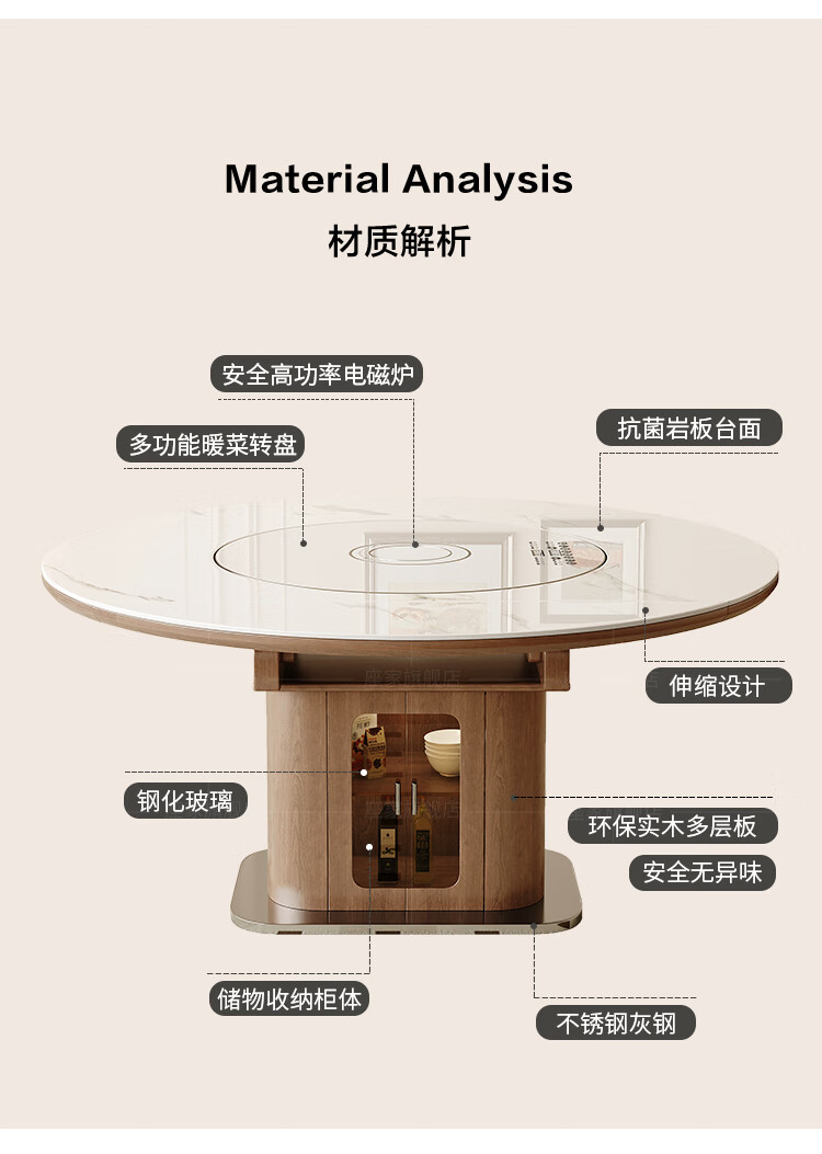 Zuojia solid wood slate smart dining table, light luxury and high-end household small apartment folding dual-purpose retractable round dining table and chairs, single table, hot dishes + induction cooker + electric turntable 1.5m