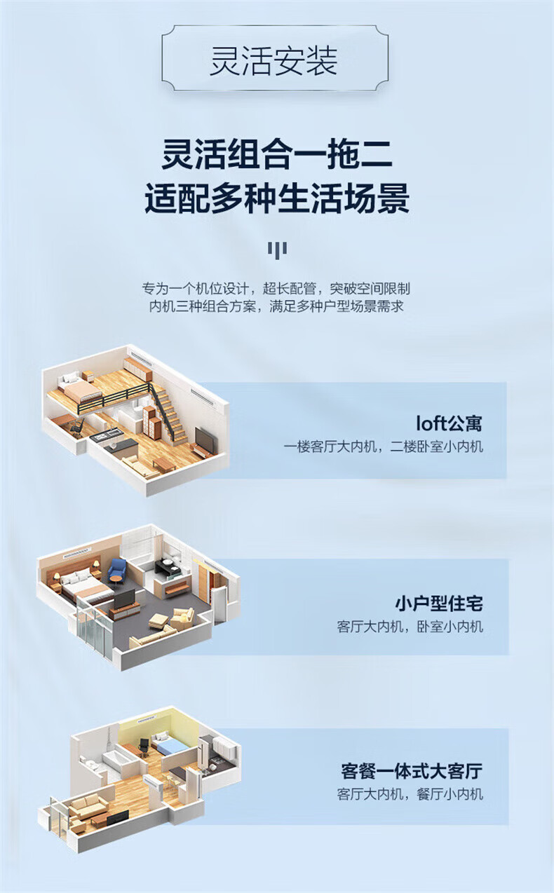 Haier Lejia central air conditioner 3 HP one to two duct machine dedicated to one room and one living room full DC variable frequency cooling and heating embedded air conditioner for home energy saving 3 HP secondary energy efficiency one to two flexible combination for small apartments