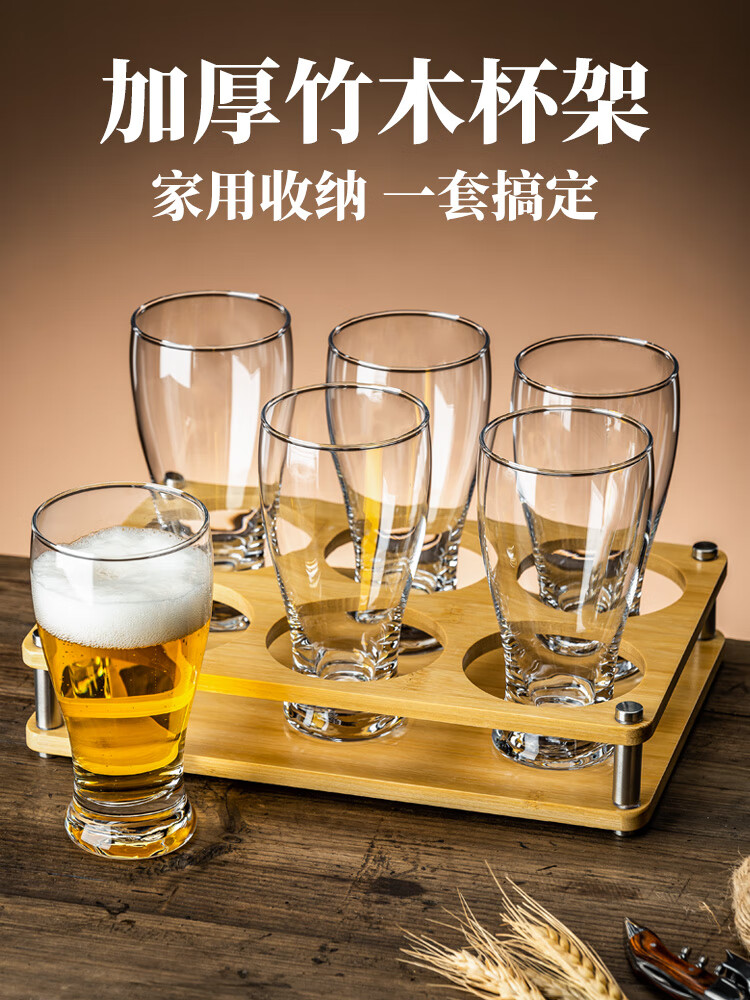 OUFANMEI high-end home craft beer mug set Internet celebrity large-capacity drinking special cup light luxury high-end commercial customized barley cup 6 pieces-350ml