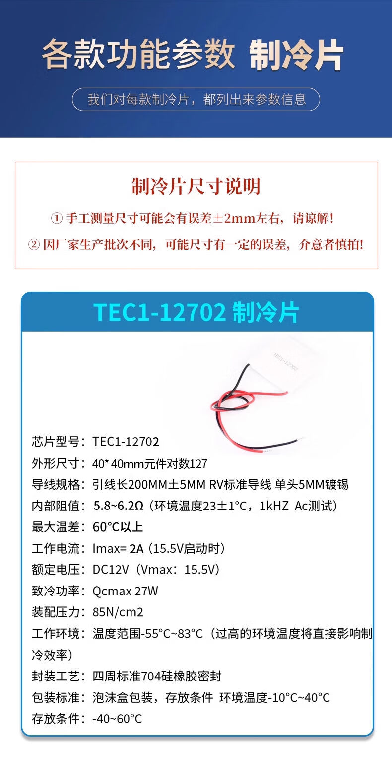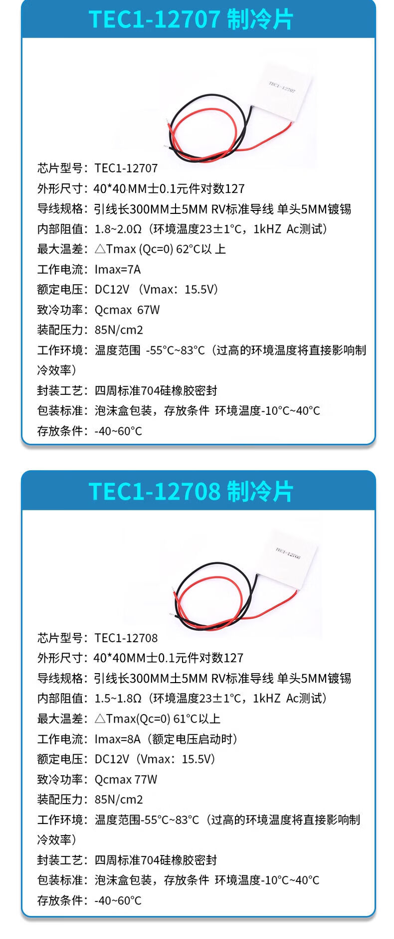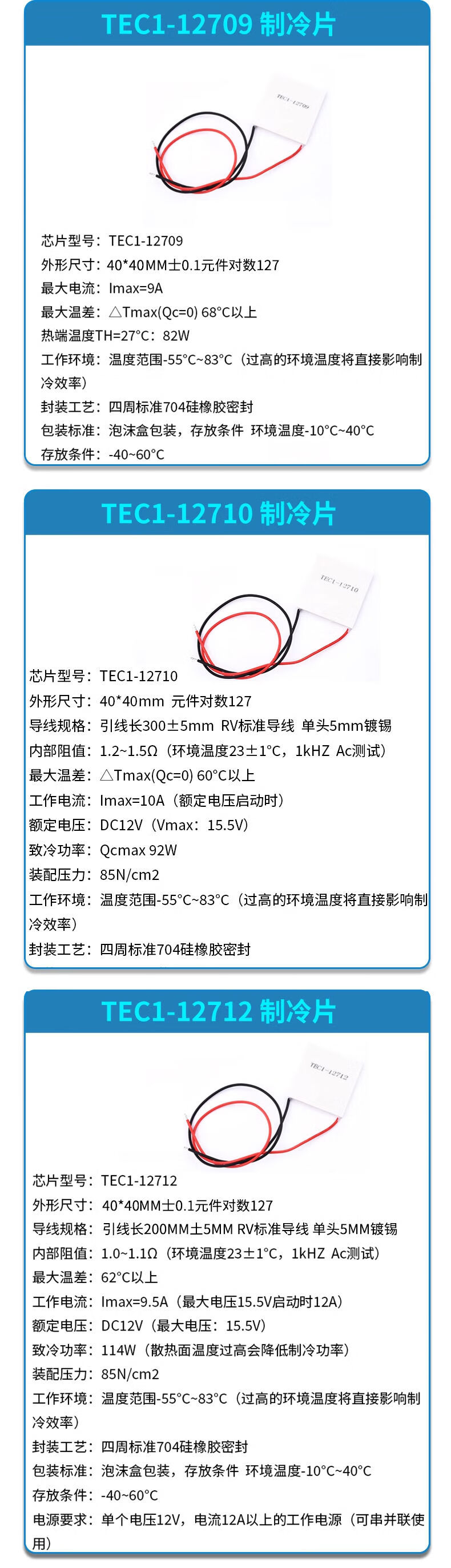 Zejie semiconductor refrigeration chip TEC1-12706/12705/12707/12710/12708/12712 (12V) high-end model 12706G (40*40)