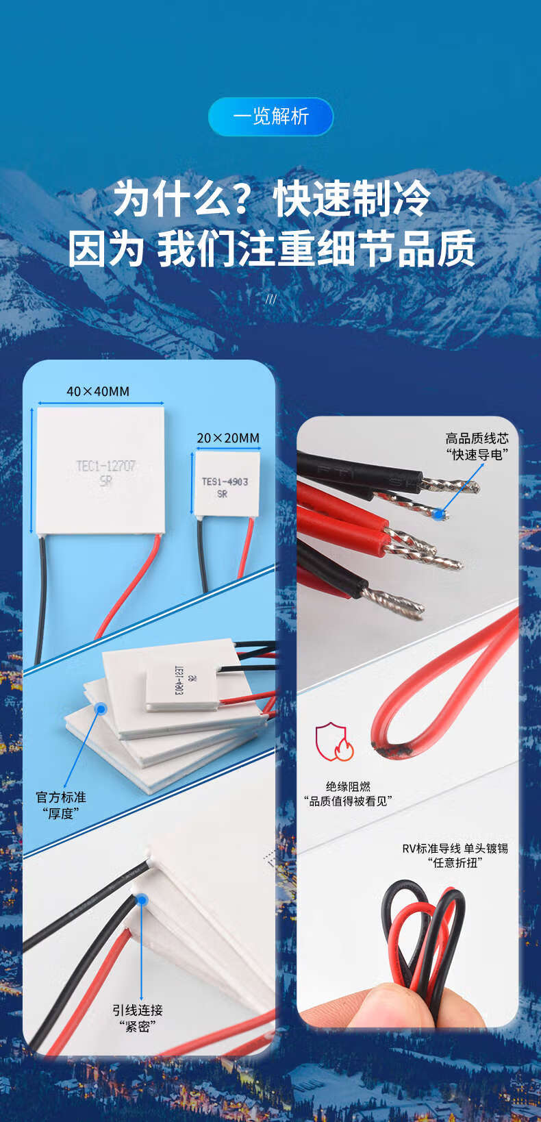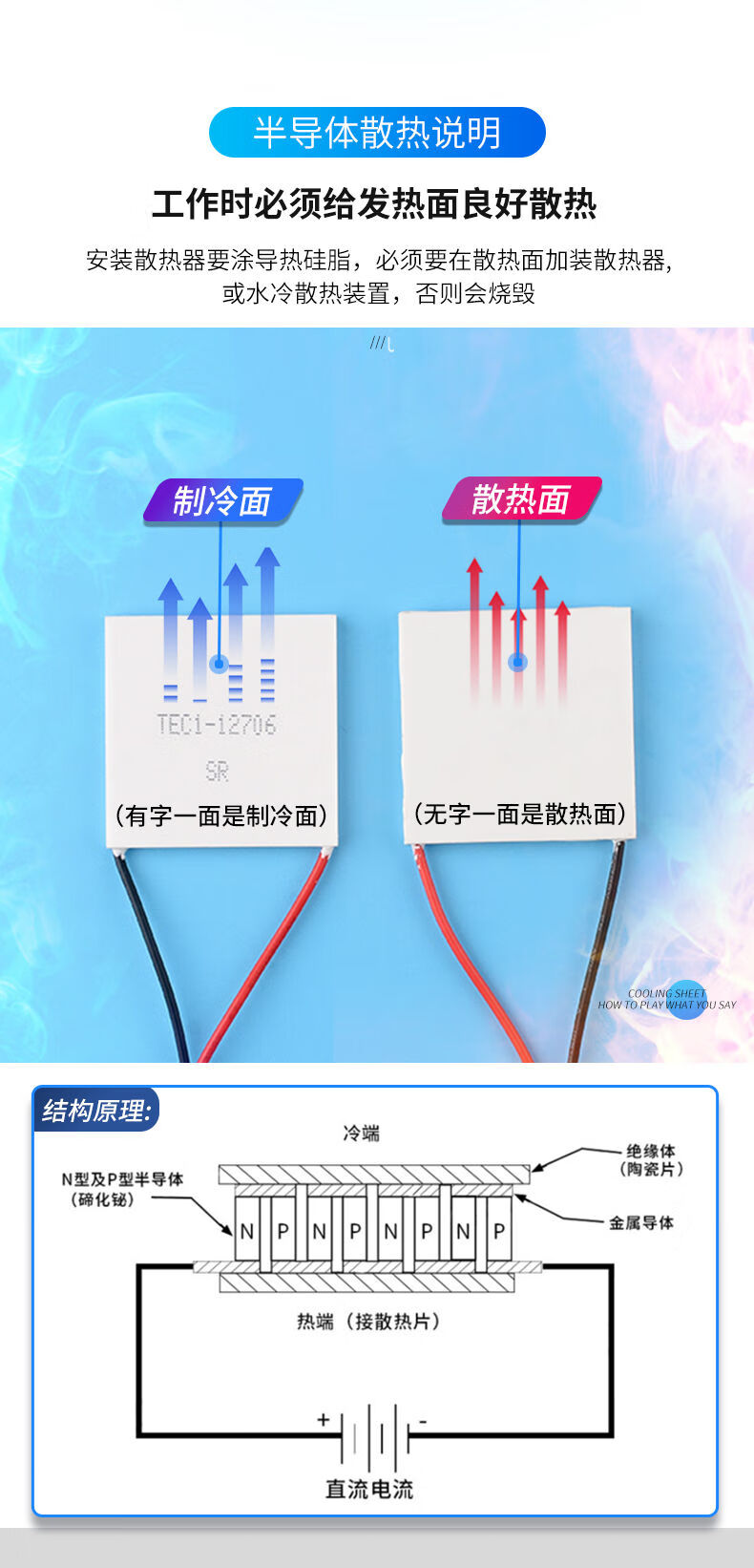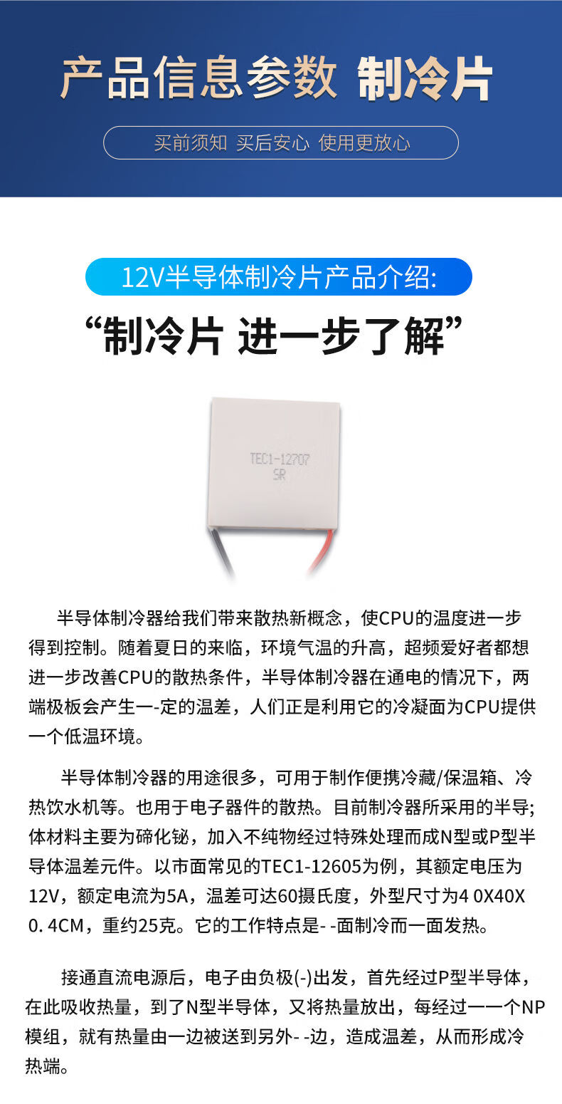 Zejie semiconductor refrigeration chip TEC1-12706/12705/12707/12710/12708/12712 (12V) high-end model 12706G (40*40)