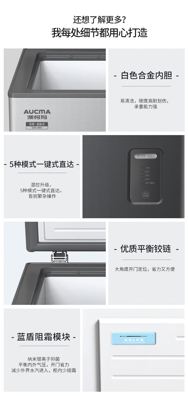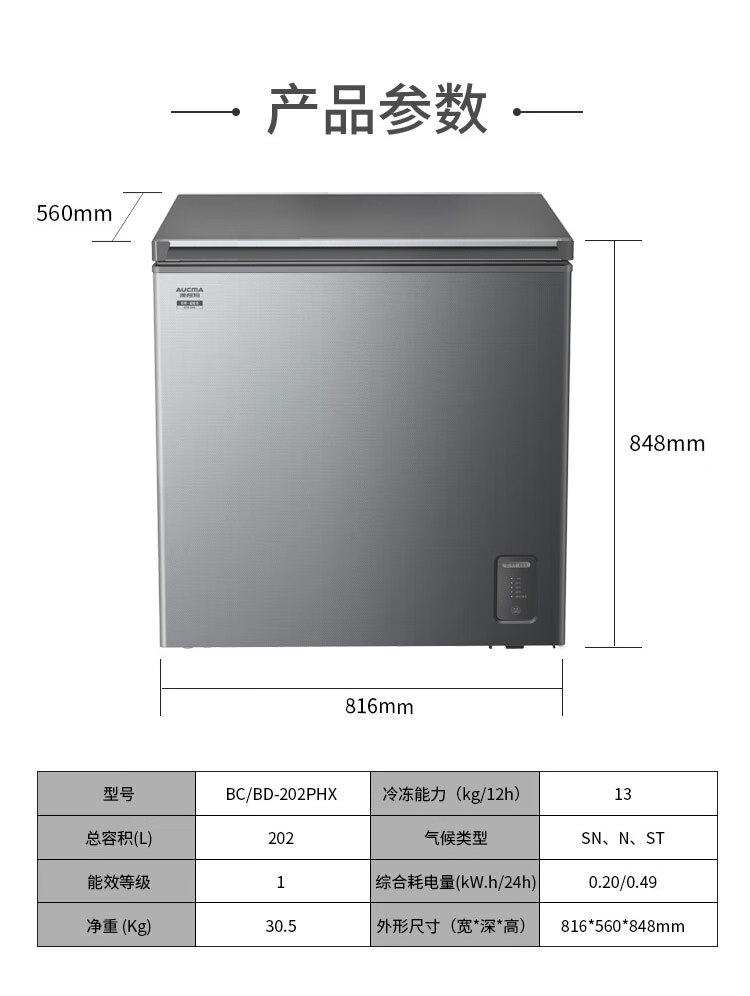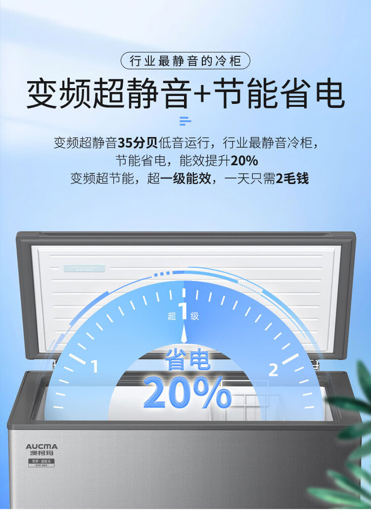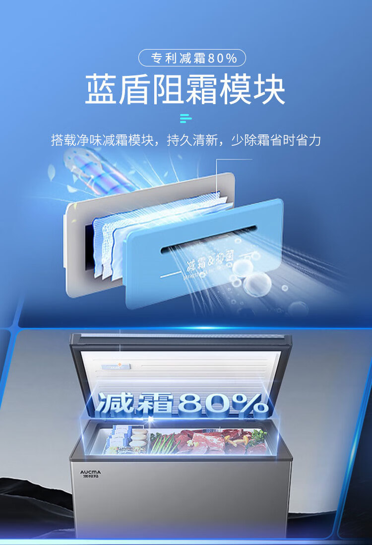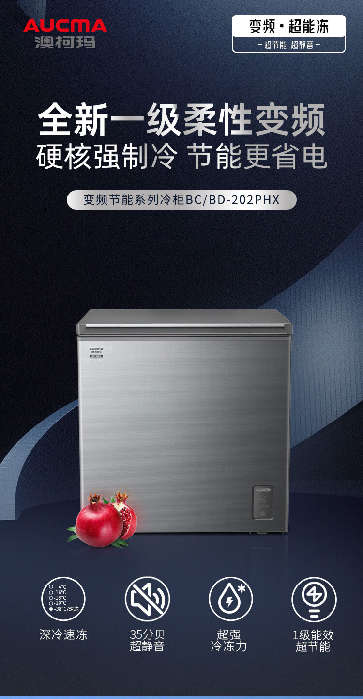 AUCMA (AUCMA) 202/252/312 liter single temperature household freezer small variable frequency freezer silent energy saving cryogenic quick freezing horizontal frost reduction 80% freezer first level energy efficiency BC/BD-252PHX crystal diamond titanium / 252L