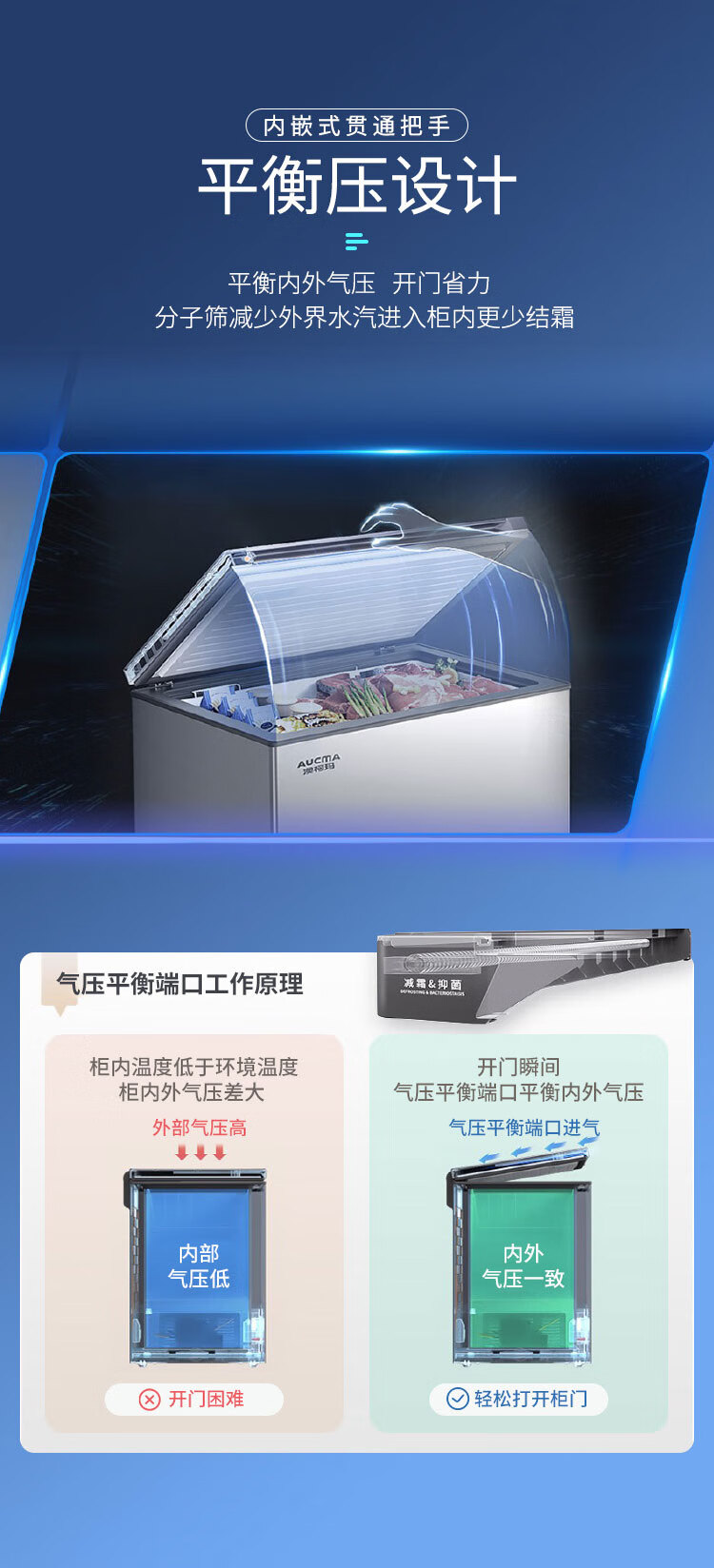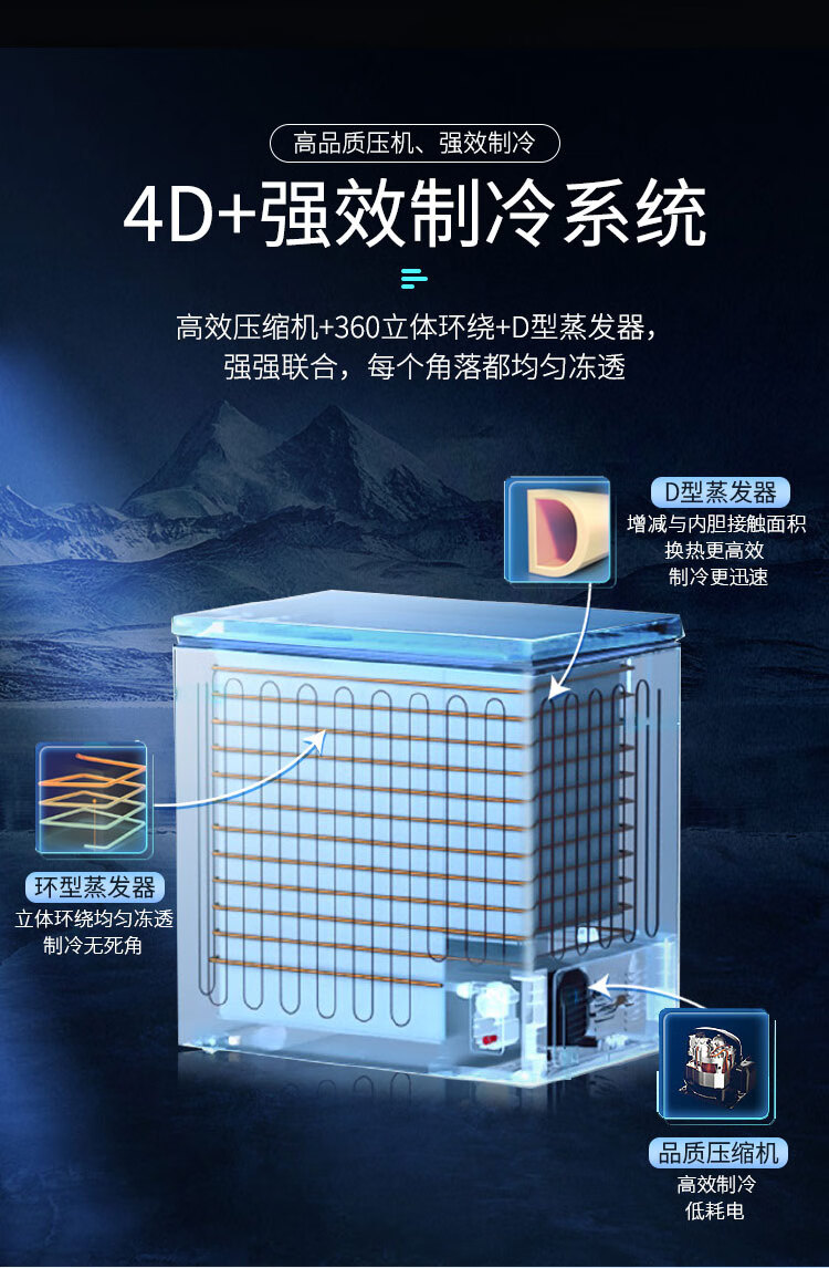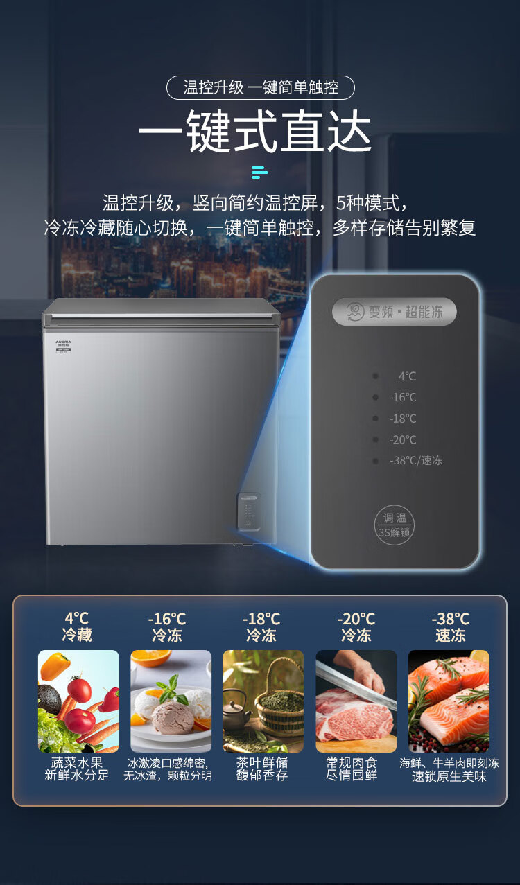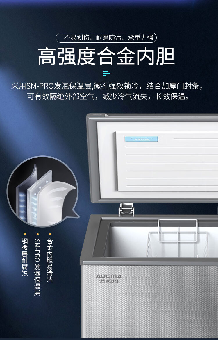 AUCMA (AUCMA) 202/252/312 liter single temperature household freezer small variable frequency freezer silent energy saving cryogenic quick freezing horizontal frost reduction 80% freezer first level energy efficiency BC/BD-252PHX crystal diamond titanium / 252L