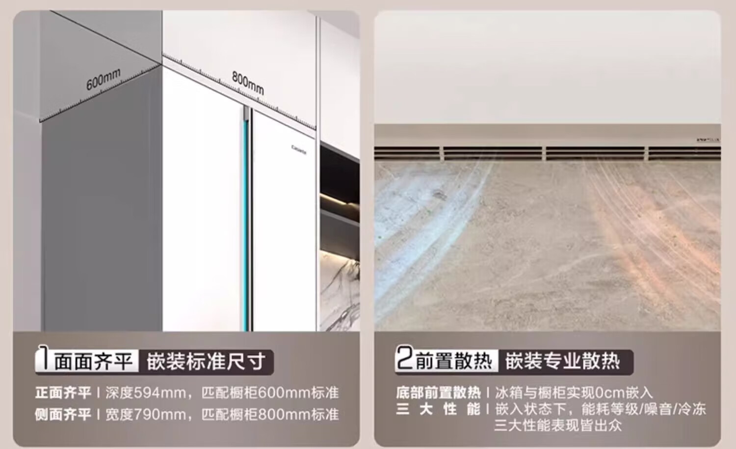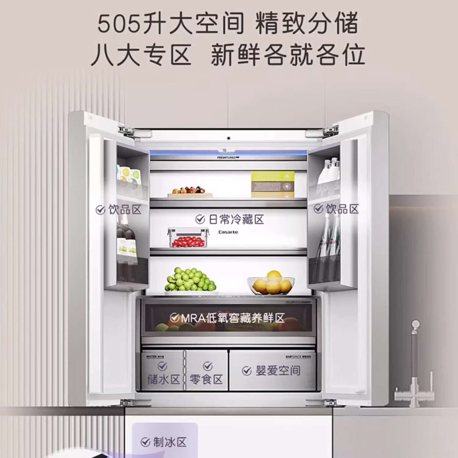 Casarte 505 liters Zhijing original stone flat inlay French four-door embedded dual system automatic ice making ultra-thin refrigerator refrigerator 505 liters BCD-505WGCFDM4WKU1