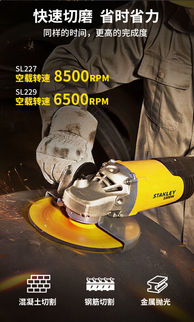 Stanley industrial grade angle grinder 180/230 high power polisher power tool metal grinding and cutting machine SL277 (180 type angle grinder) no specifications
