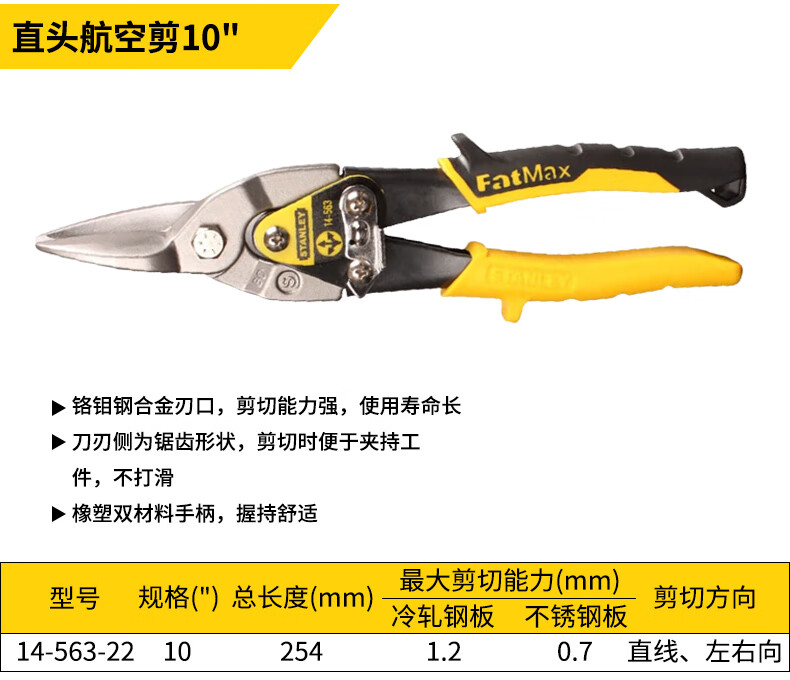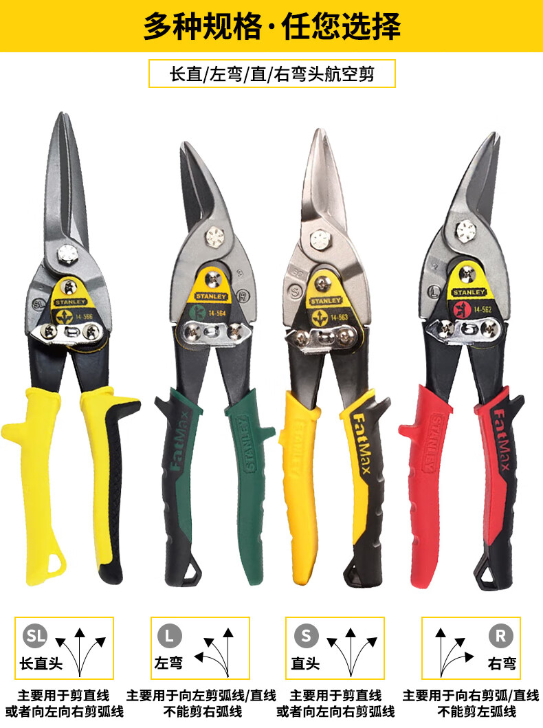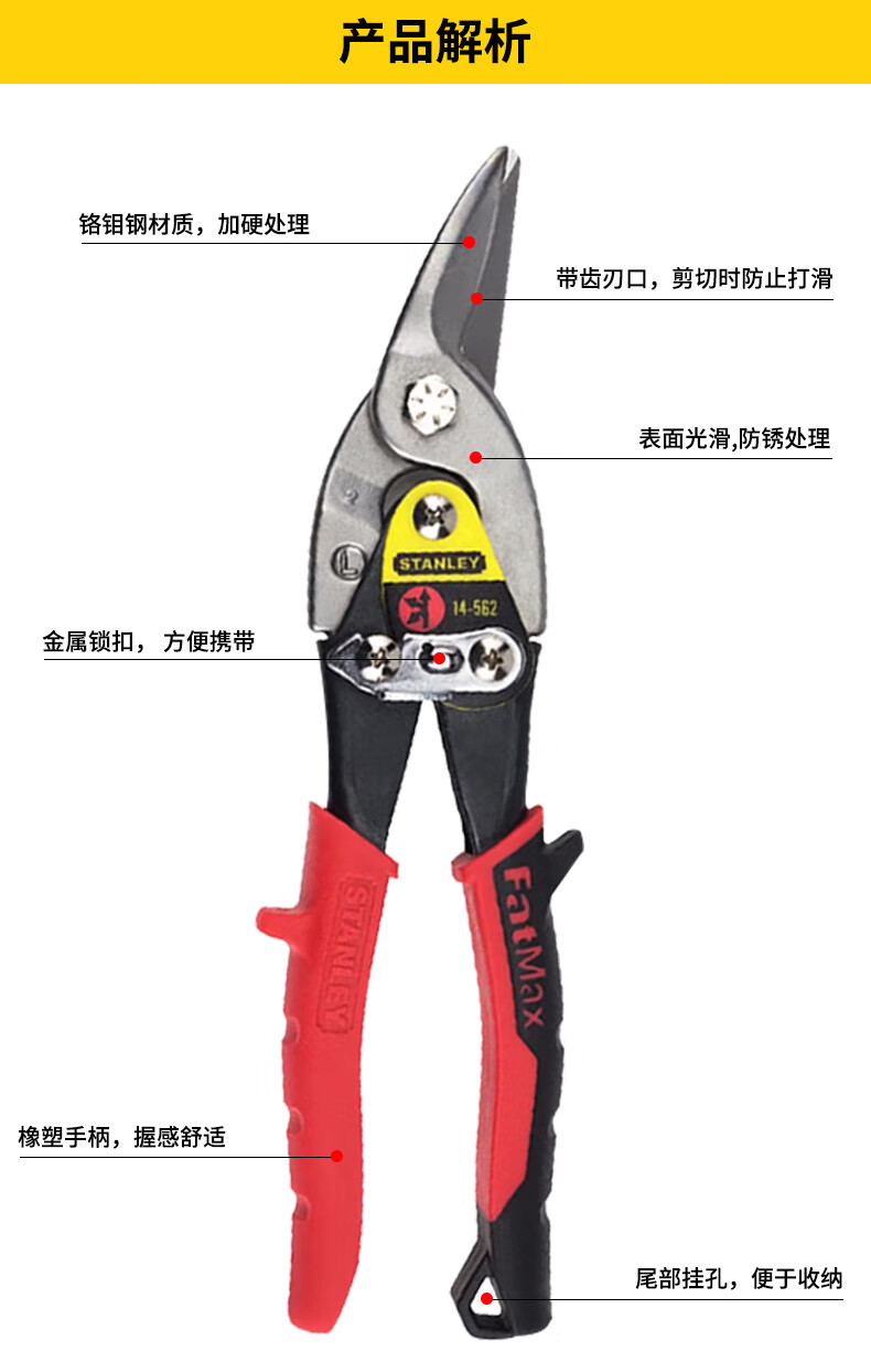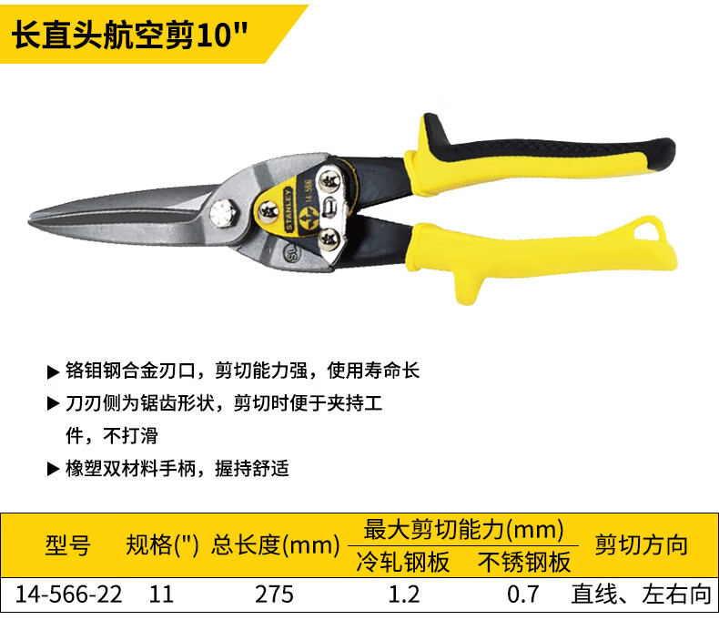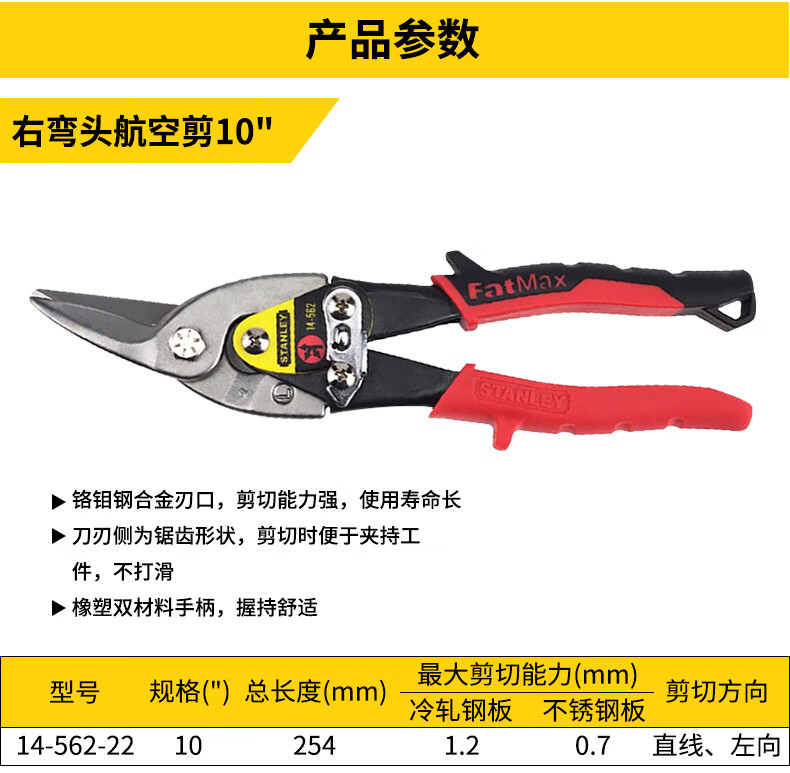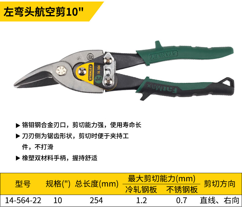 Stanley (STANLEY) iron sheet scissors aviation scissors industrial keel aluminum buckle plate stainless steel special scissors high hardness right elbow aviation scissors 10__14-562-22