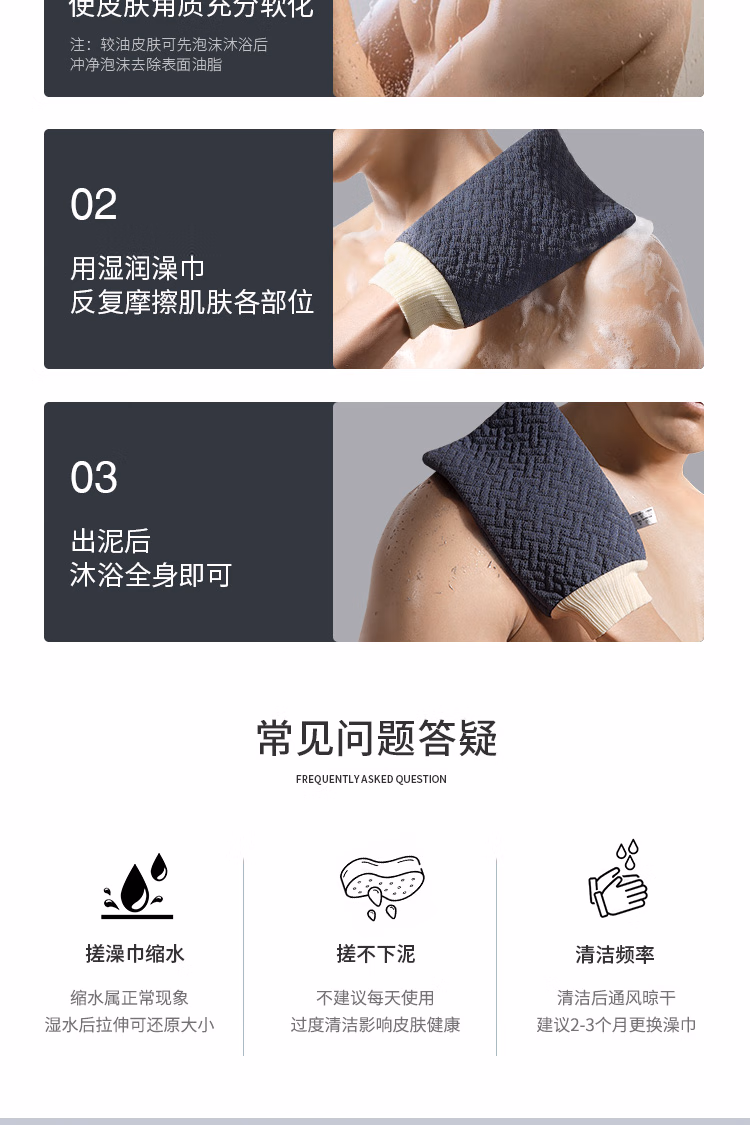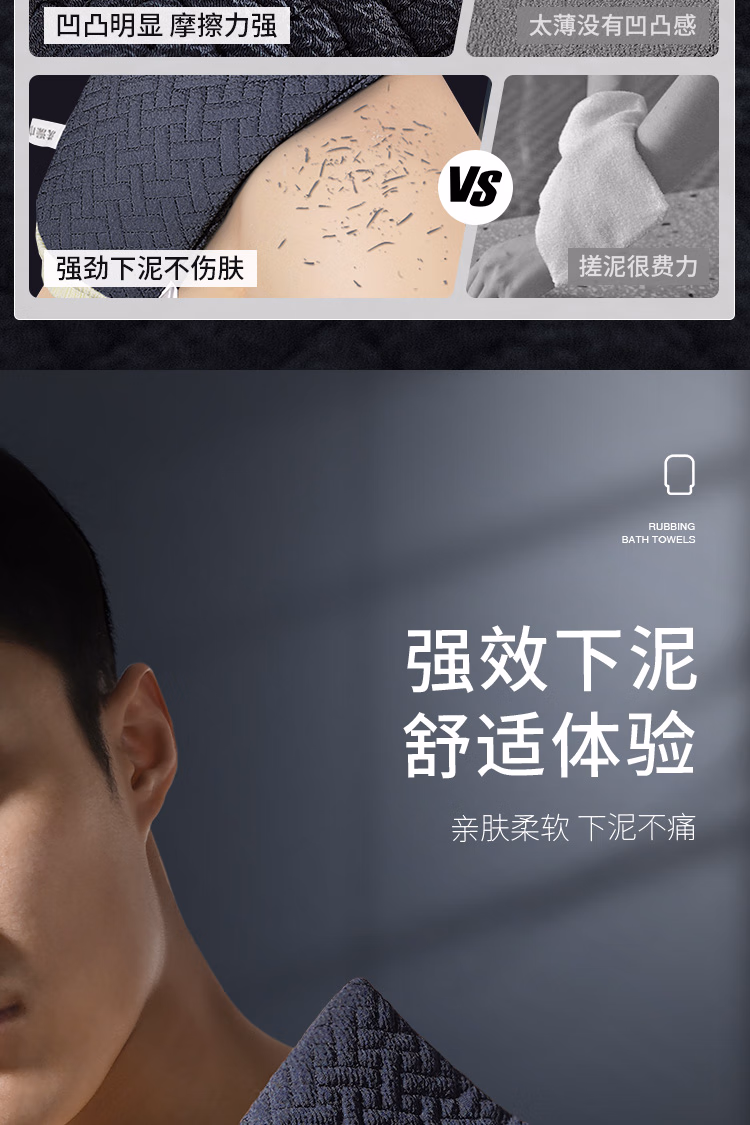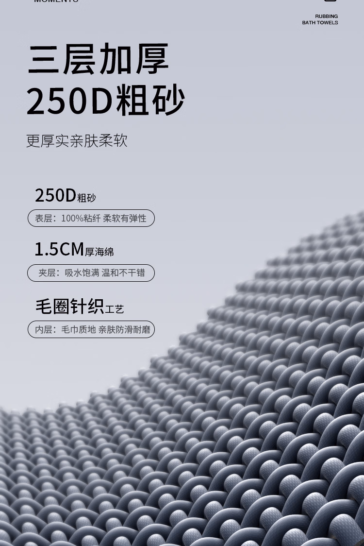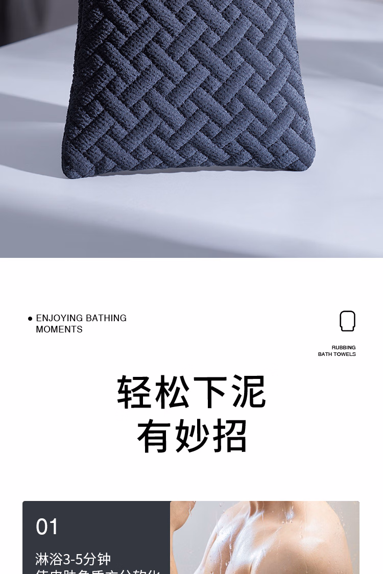 Rice bath towel for men, coarse sand bath towel for the back, scrubbing tool to remove dead skin, bath mud gloves, coarse sand bath towel - Mo Lan - Men