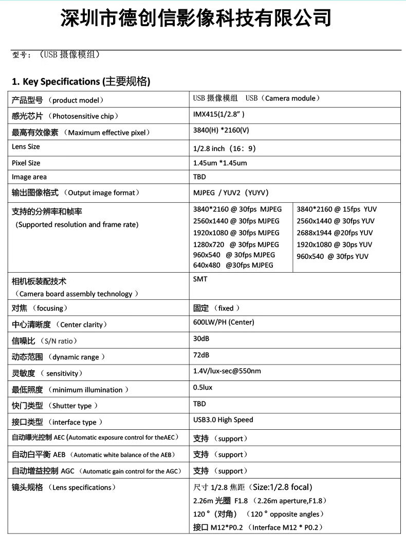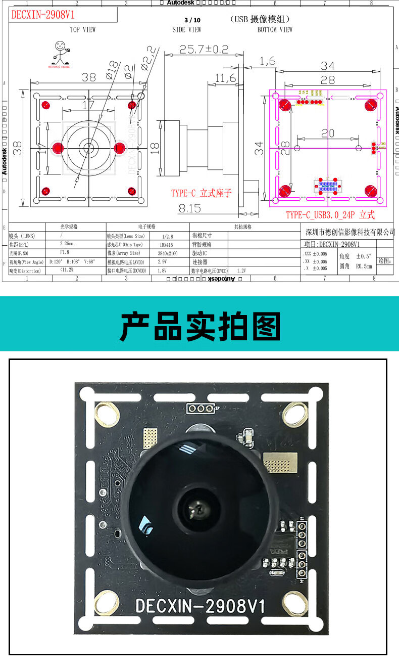 8 million USB3.0 camera 4K HD module IMX415 industrial camera live broadcast video conferencing driver-free 100 distortion-free