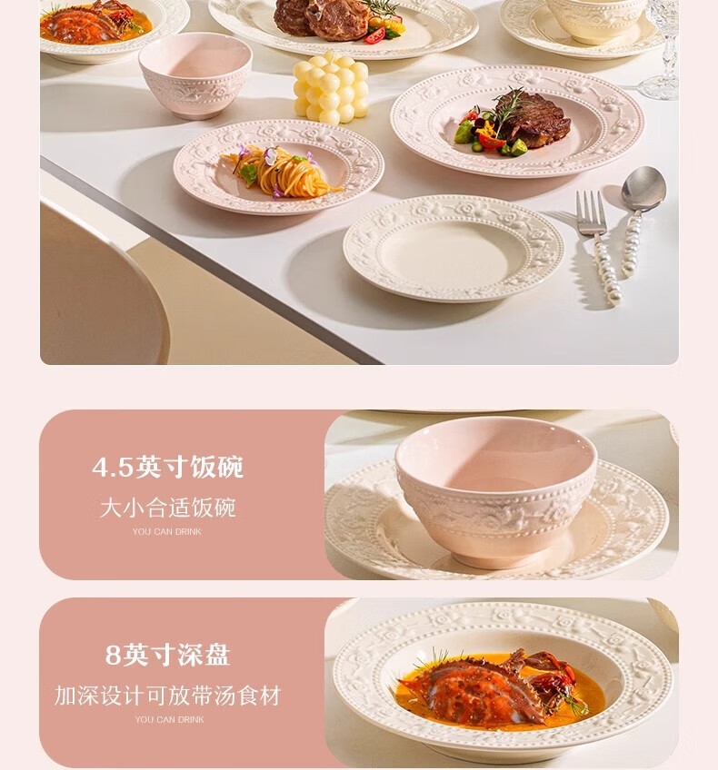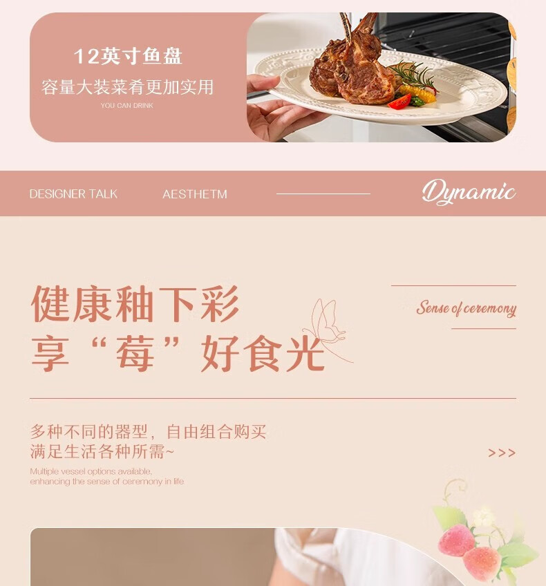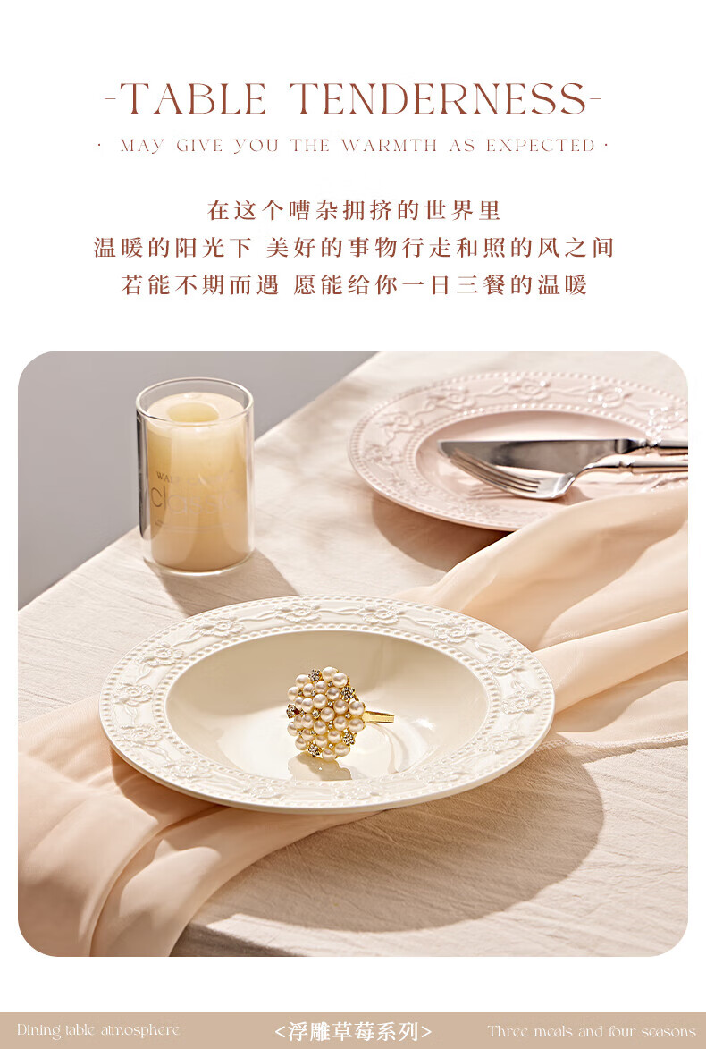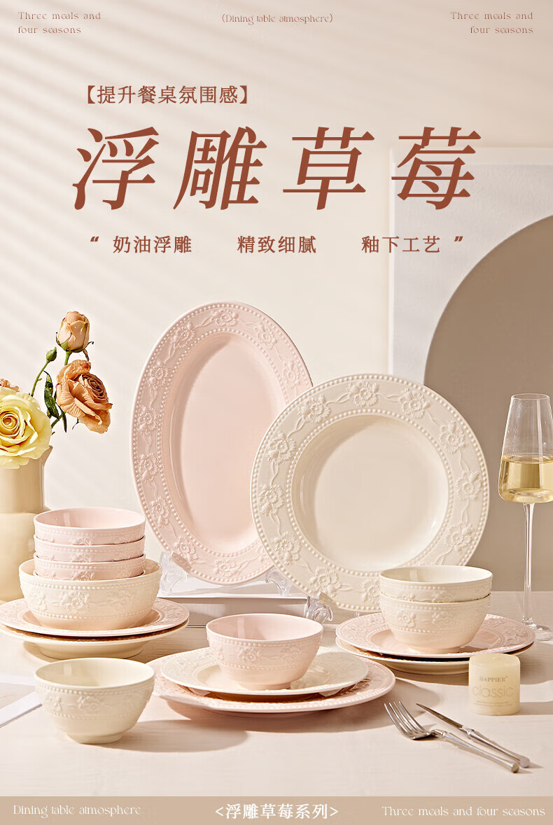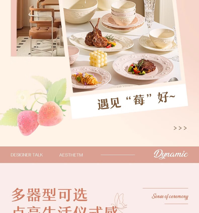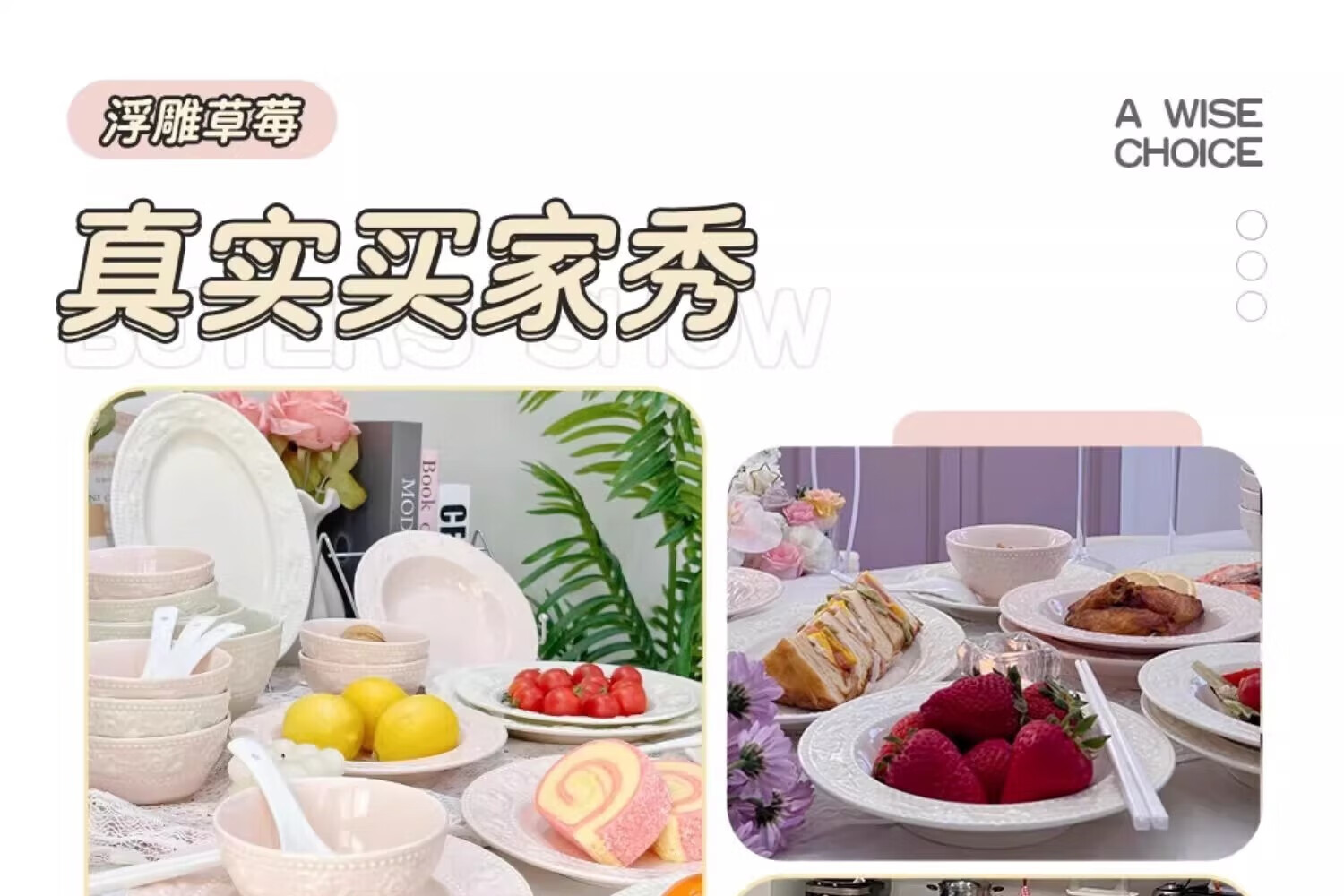 Jingxi tableware complete set for home use 2025 new high-looking underglaze color tableware set cream style dishware plate housewarming gift embossed strawberry underglaze color 6-person meal 33-piece set healthy high-temperature porcelain-underglaze color