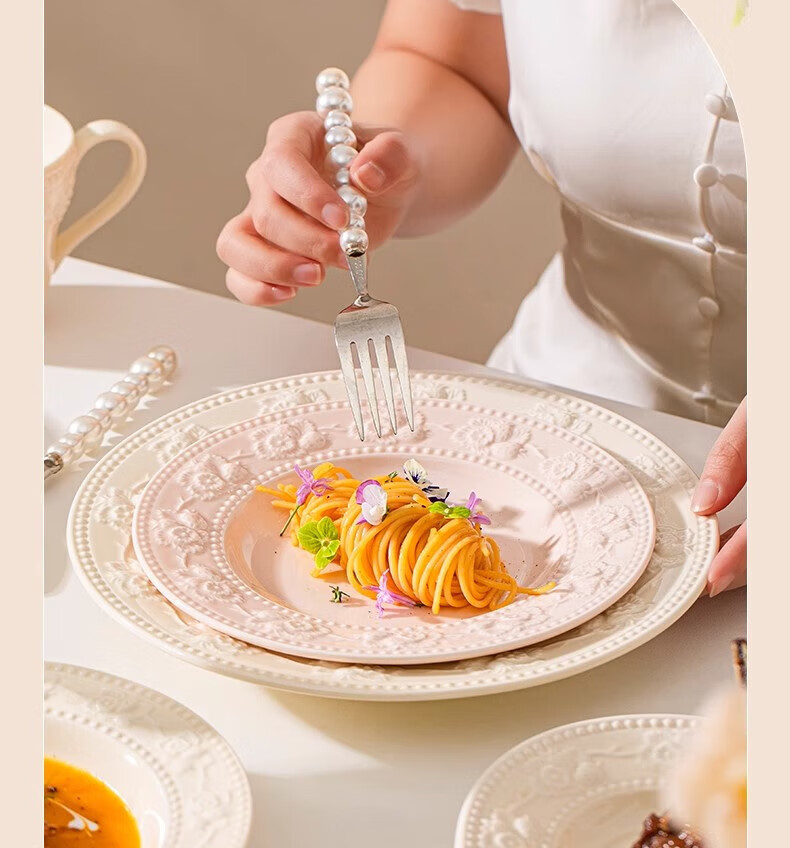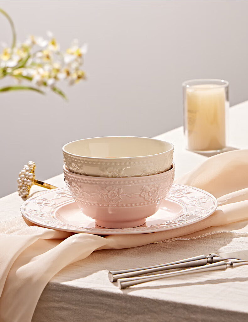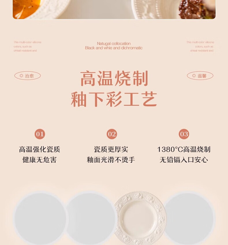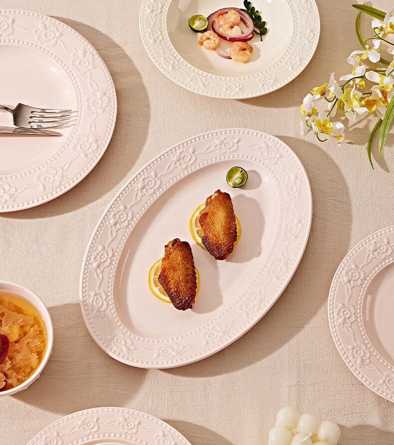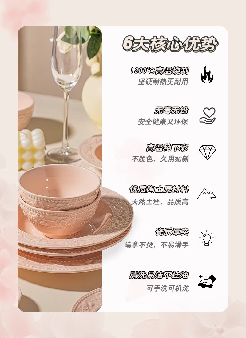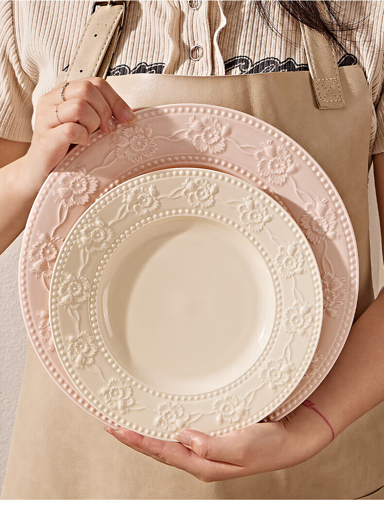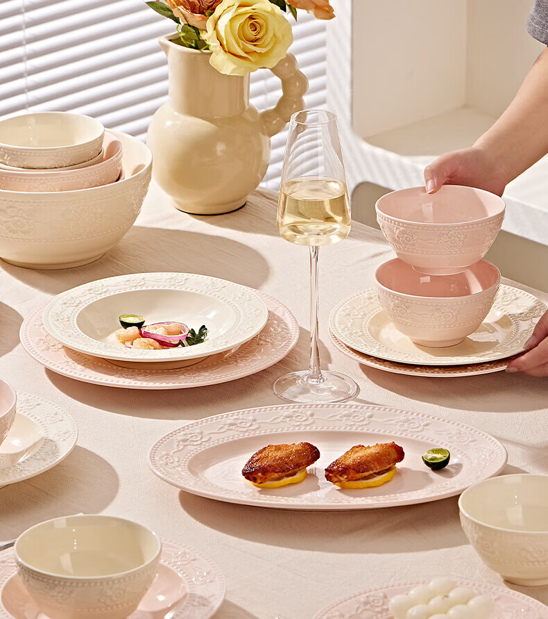 Jingxi tableware complete set for home use 2025 new high-looking underglaze color tableware set cream style dishware plate housewarming gift embossed strawberry underglaze color 6-person meal 33-piece set healthy high-temperature porcelain-underglaze color