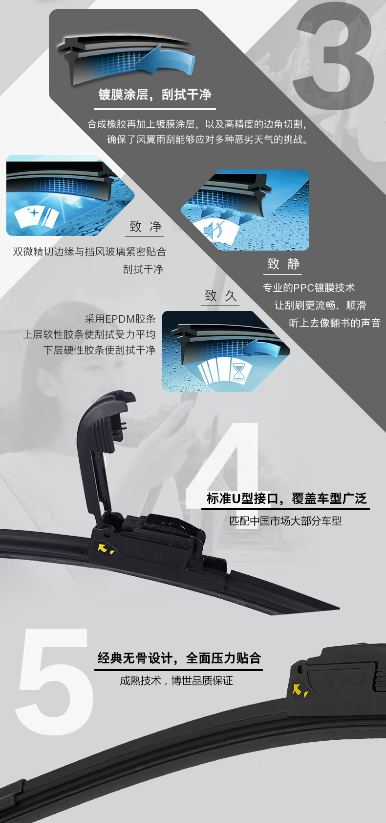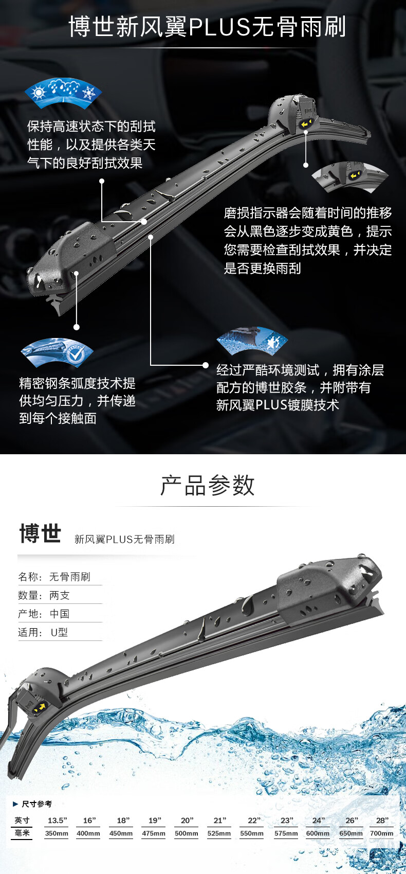 Bosch (BOSCH) is suitable for Hyundai IX25 wiper blades. Bosch original silent boneless wiper blades. Original wiper blades. Wind wing series wipers. High. 1 pair. Hyundai ix25_2014-2019 models.