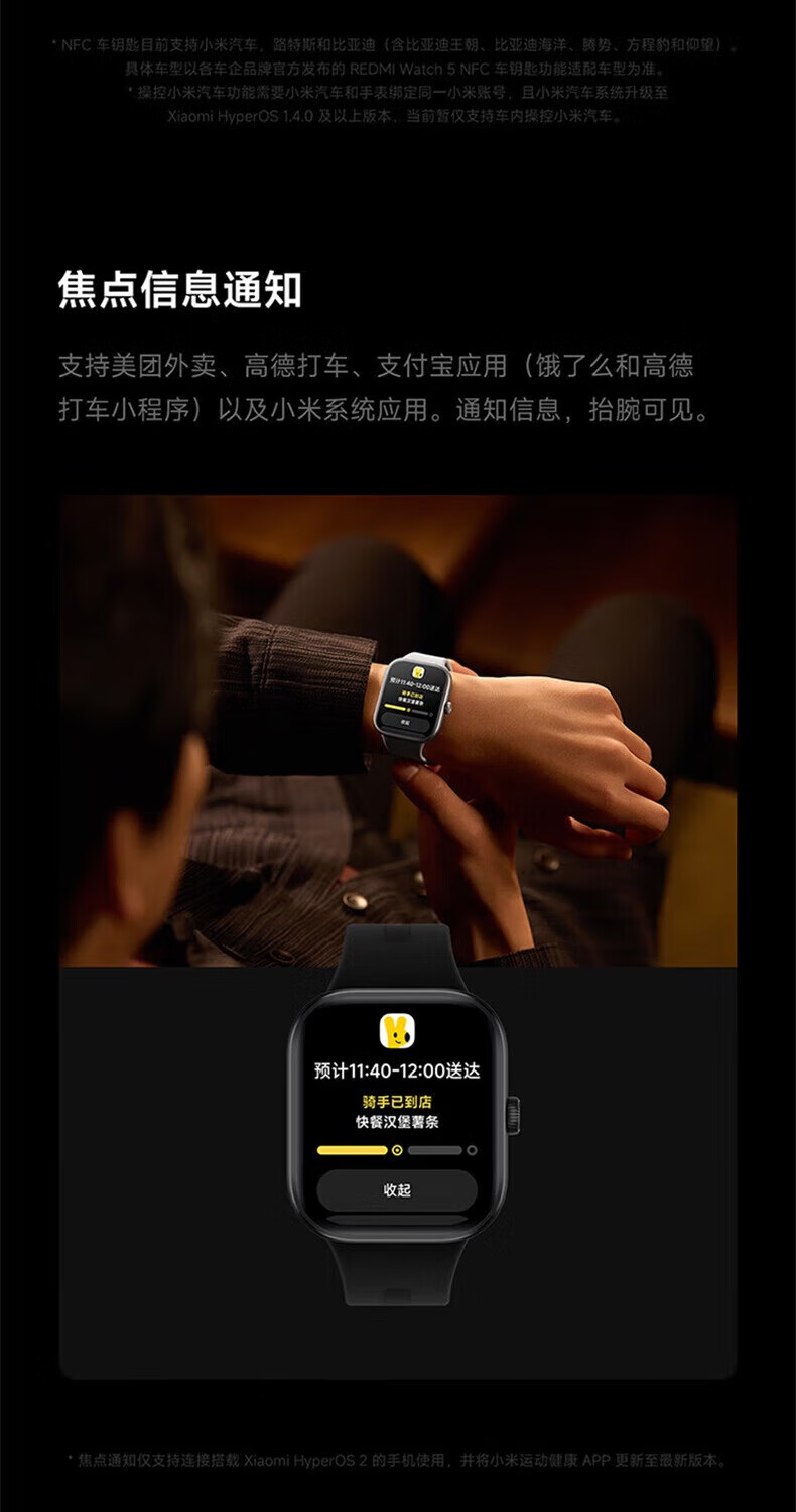 Xiaomi (MI) Redmi Watch5/Watch6 Heart Rate and Blood Oxygen Monitoring Bluetooth Call Smart Watch Xiaomi Car Key Redmi Watch5 Elegant Black + Hydrogel Film