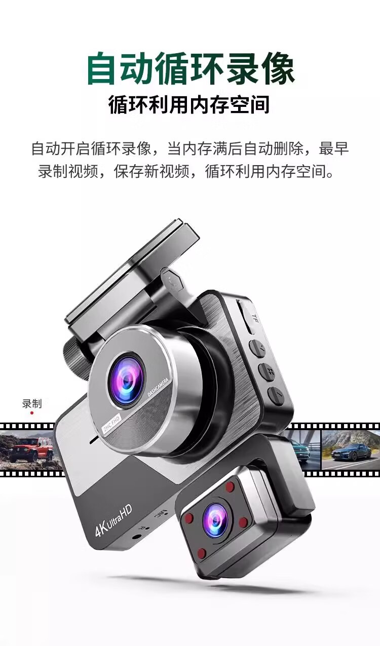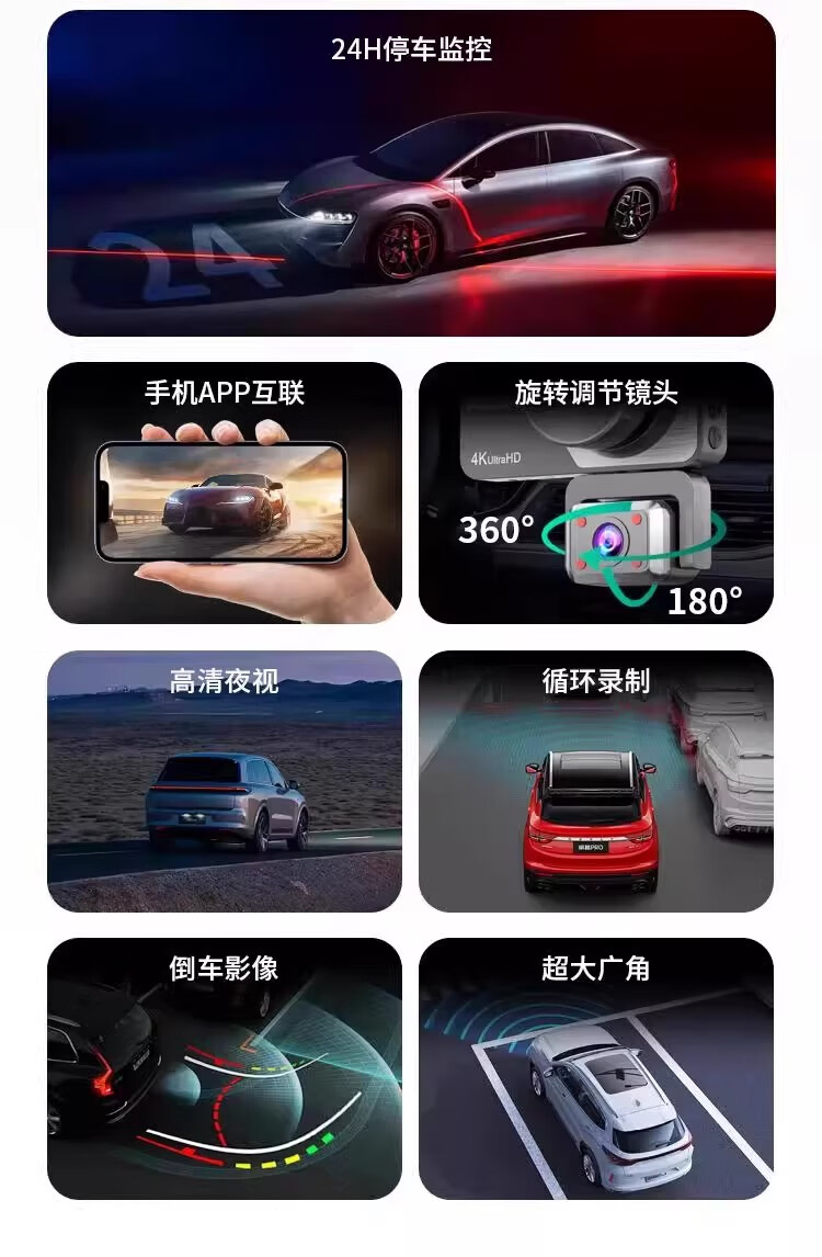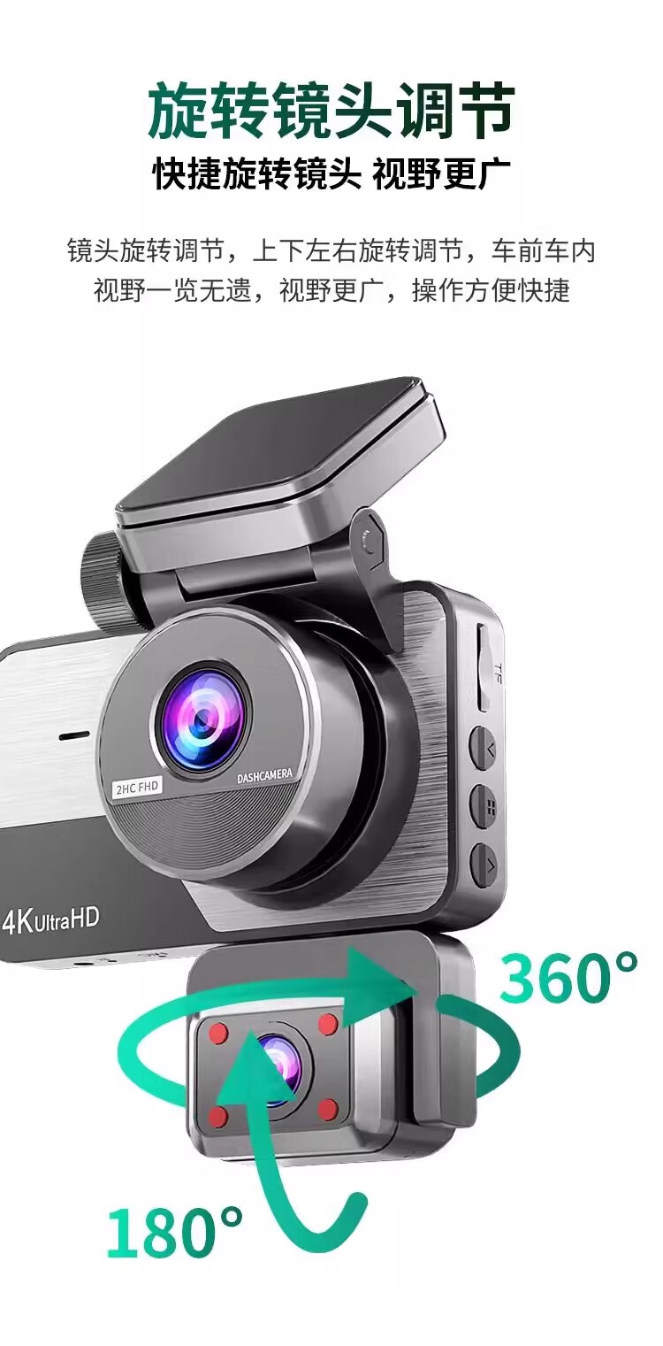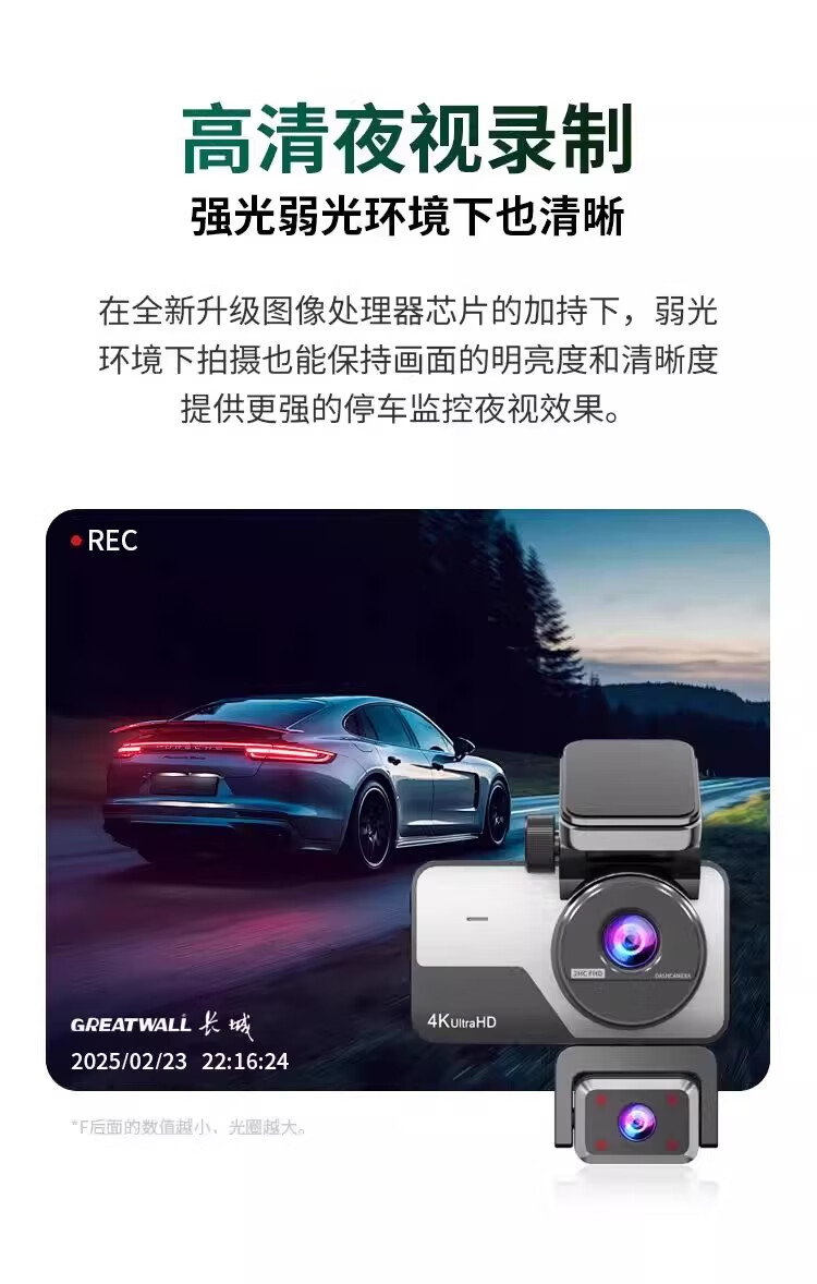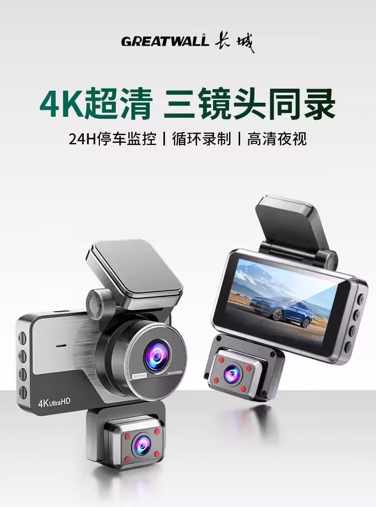 Great Wall 4K three-lens driving recorder 360 mobile phone interconnection ultra-high-definition night vision 24-hour parking monitoring three lenses (front, rear, inside the car) free 64G card