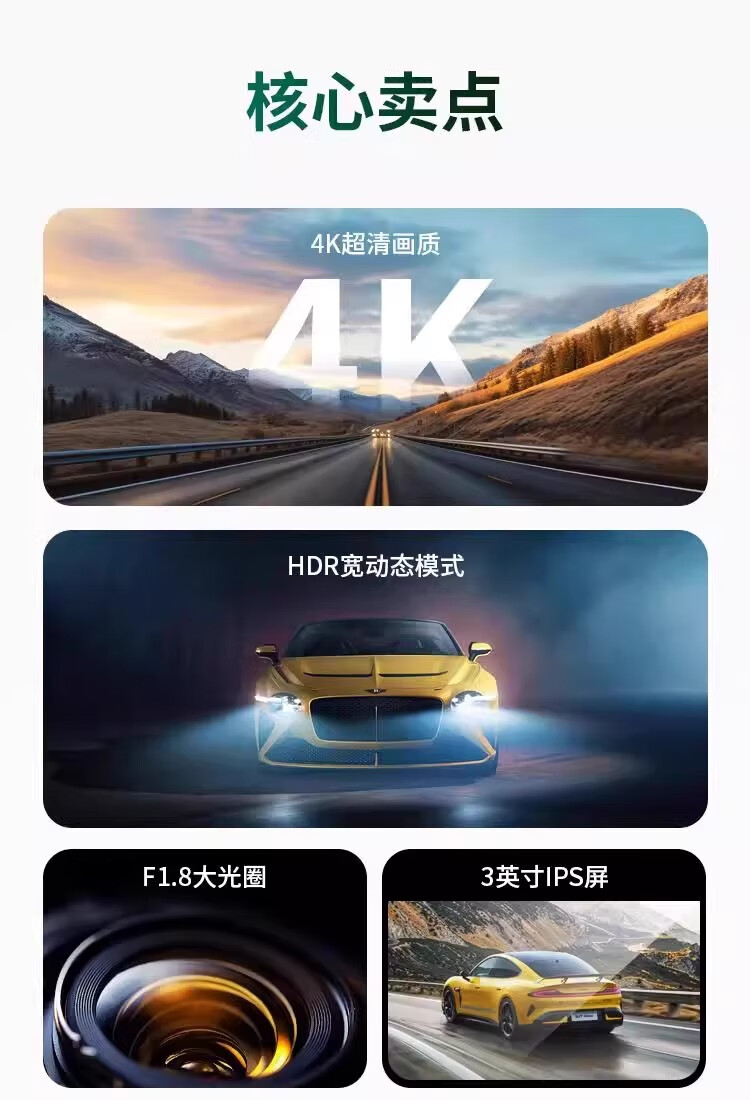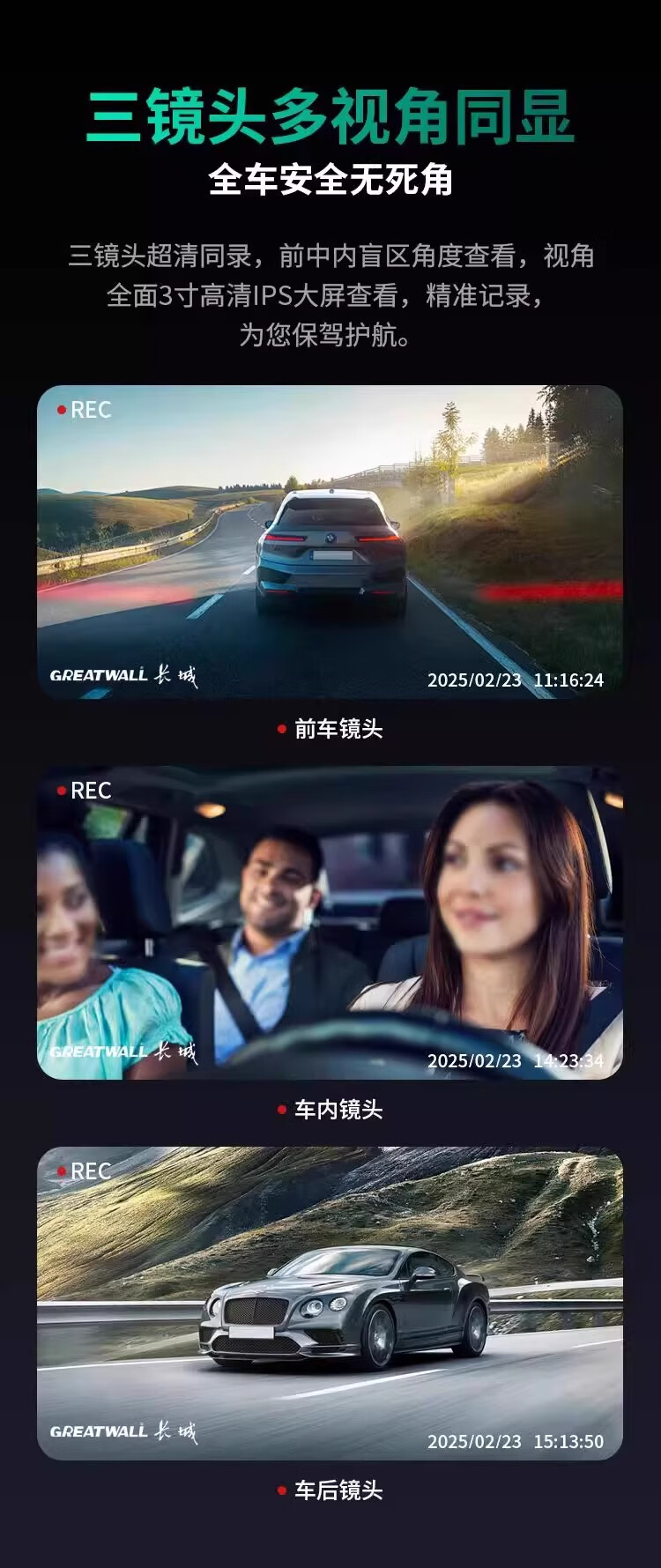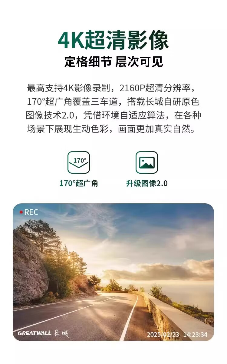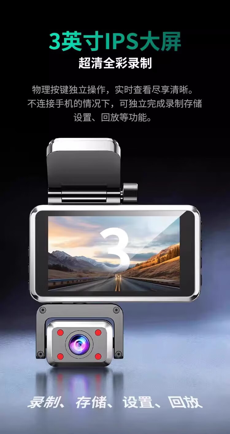 Great Wall 4K three-lens driving recorder 360 mobile phone interconnection ultra-high-definition night vision 24-hour parking monitoring three lenses (front, rear, inside the car) free 64G card