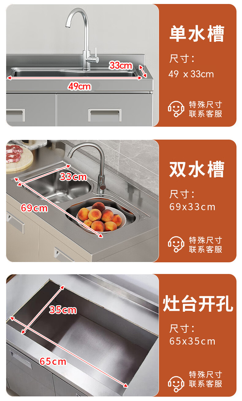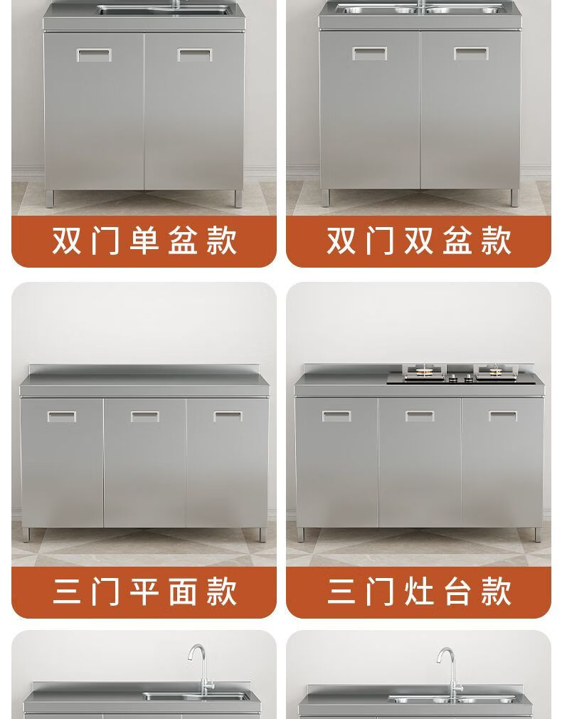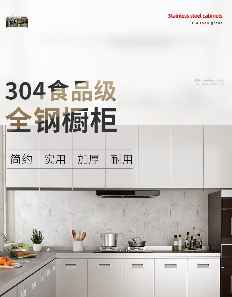 Qinkai 304 stainless steel kitchen cabinets, thickened stove, integrated custom sideboard, small apartment storage combination storage cabinet, main picture model, 40cm flat model, no